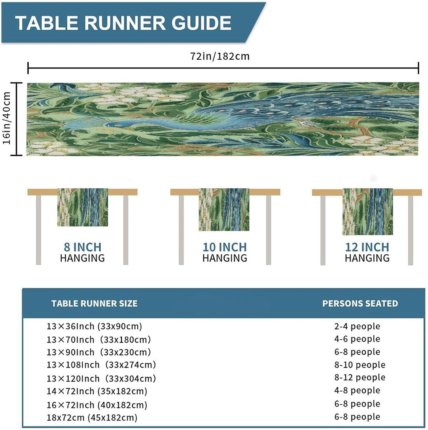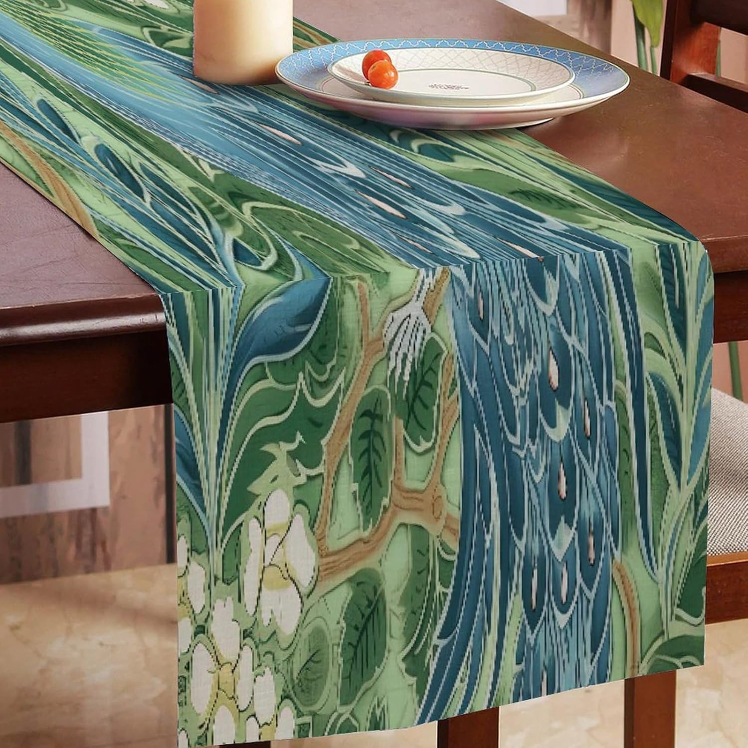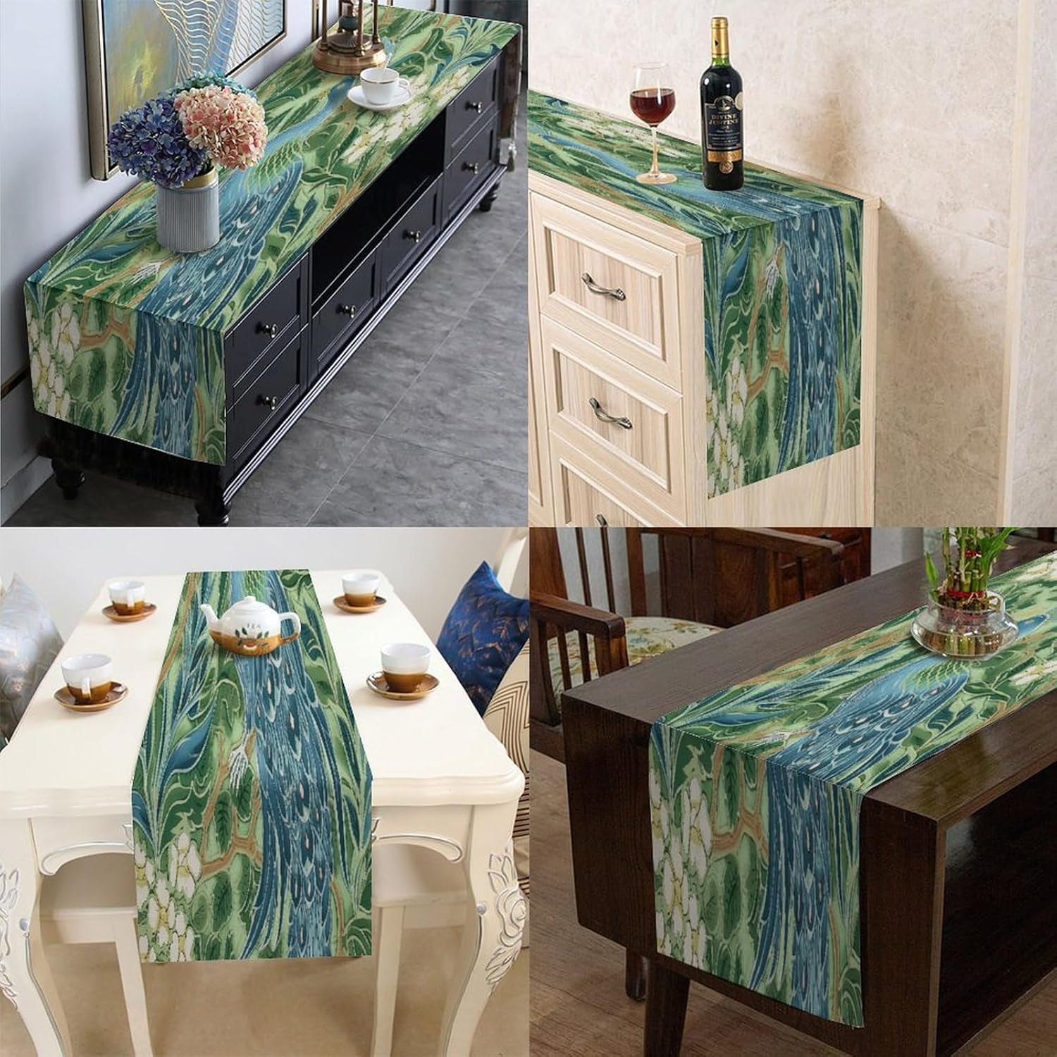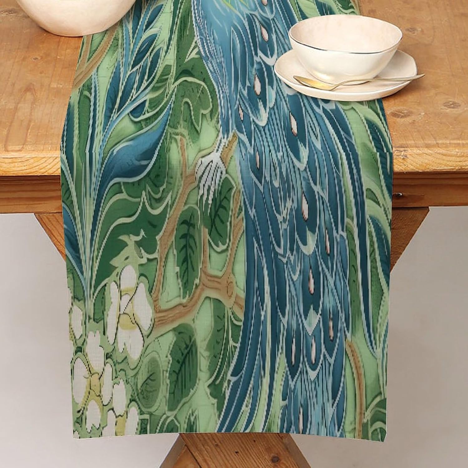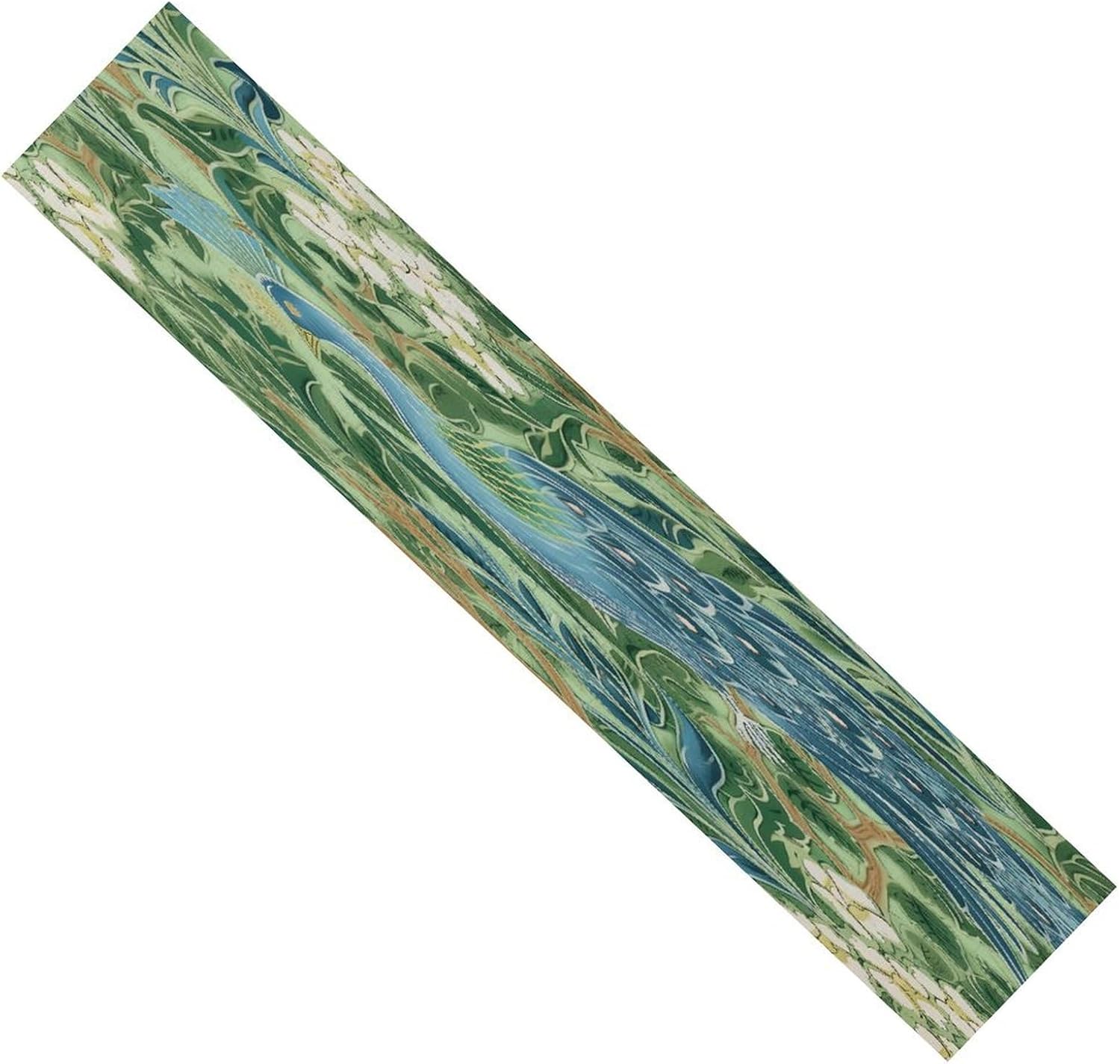 Divertente runner da tavola in cotone e lino con pavone e pavone verde in stile fattoria, decorazione da tavolo per cucina, tavolo da pranzo, eventi speciali, decorazione per feste