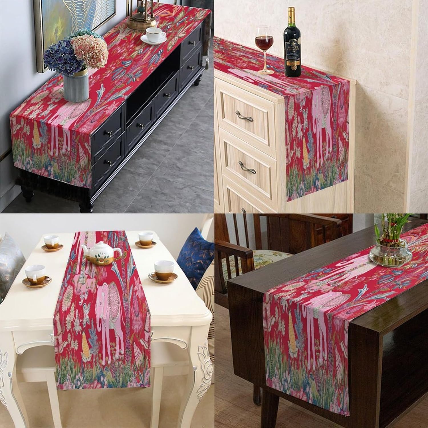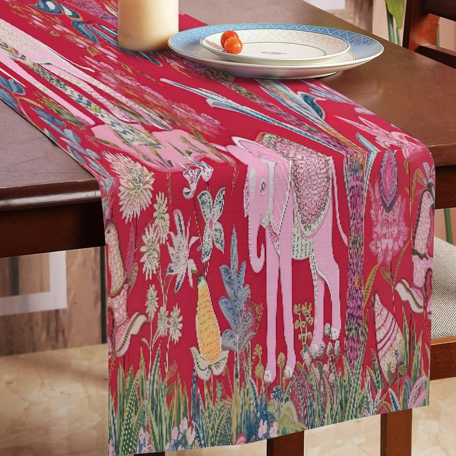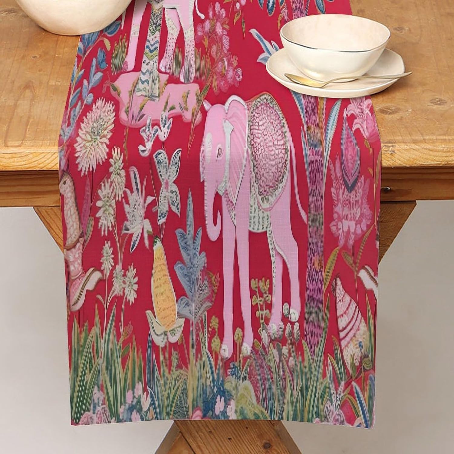 Divertente runner da tavola in cotone e lino, motivo animale, stile rustico, decorazione per cucina, tavolo da pranzo, eventi speciali, decorazione per feste