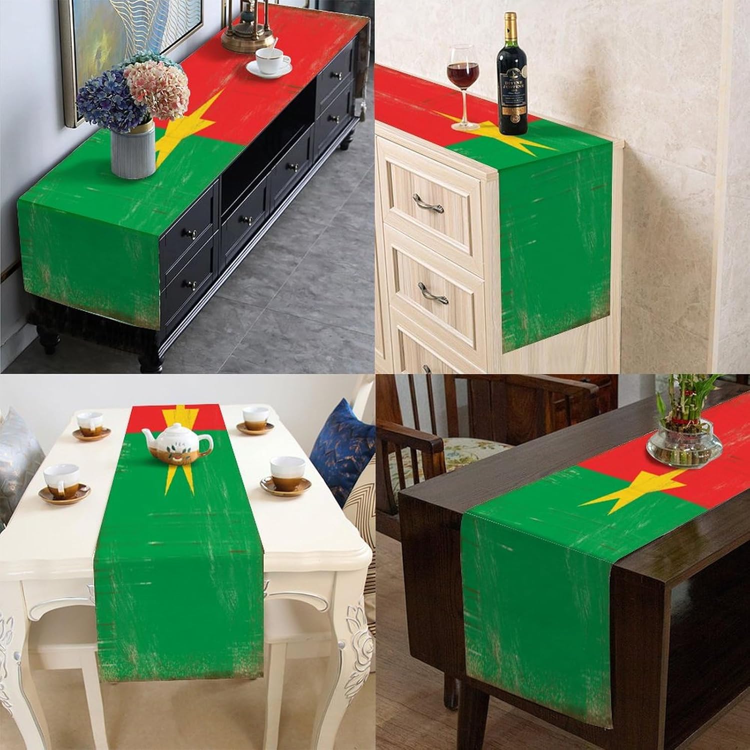 Divertente runner da tavola in stile rustico con bandiera nazionale del Burkina Faso, 33 x 178 cm, runner da tavola in iuta Burkina Faso, moderno comò sciarpe e runner per la casa