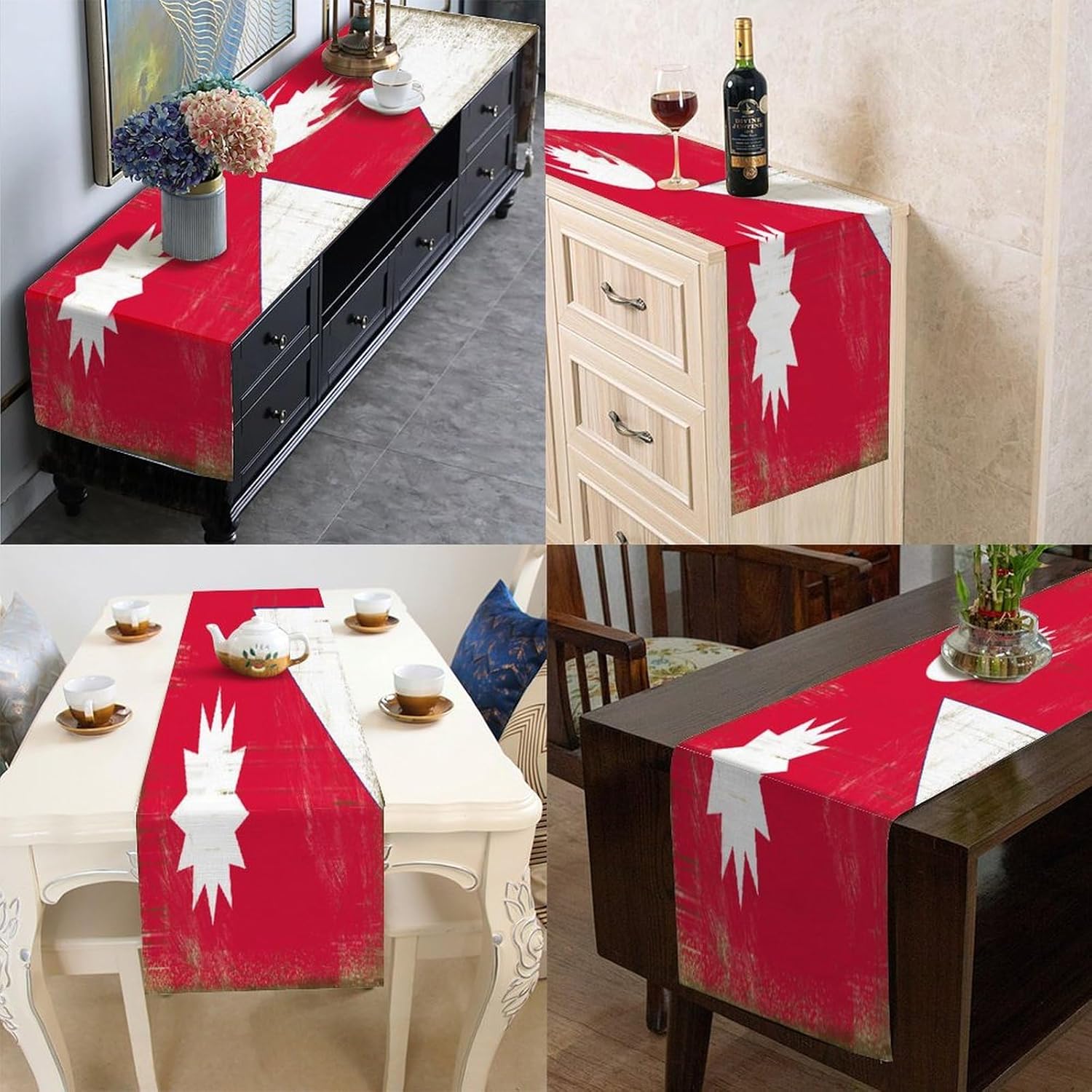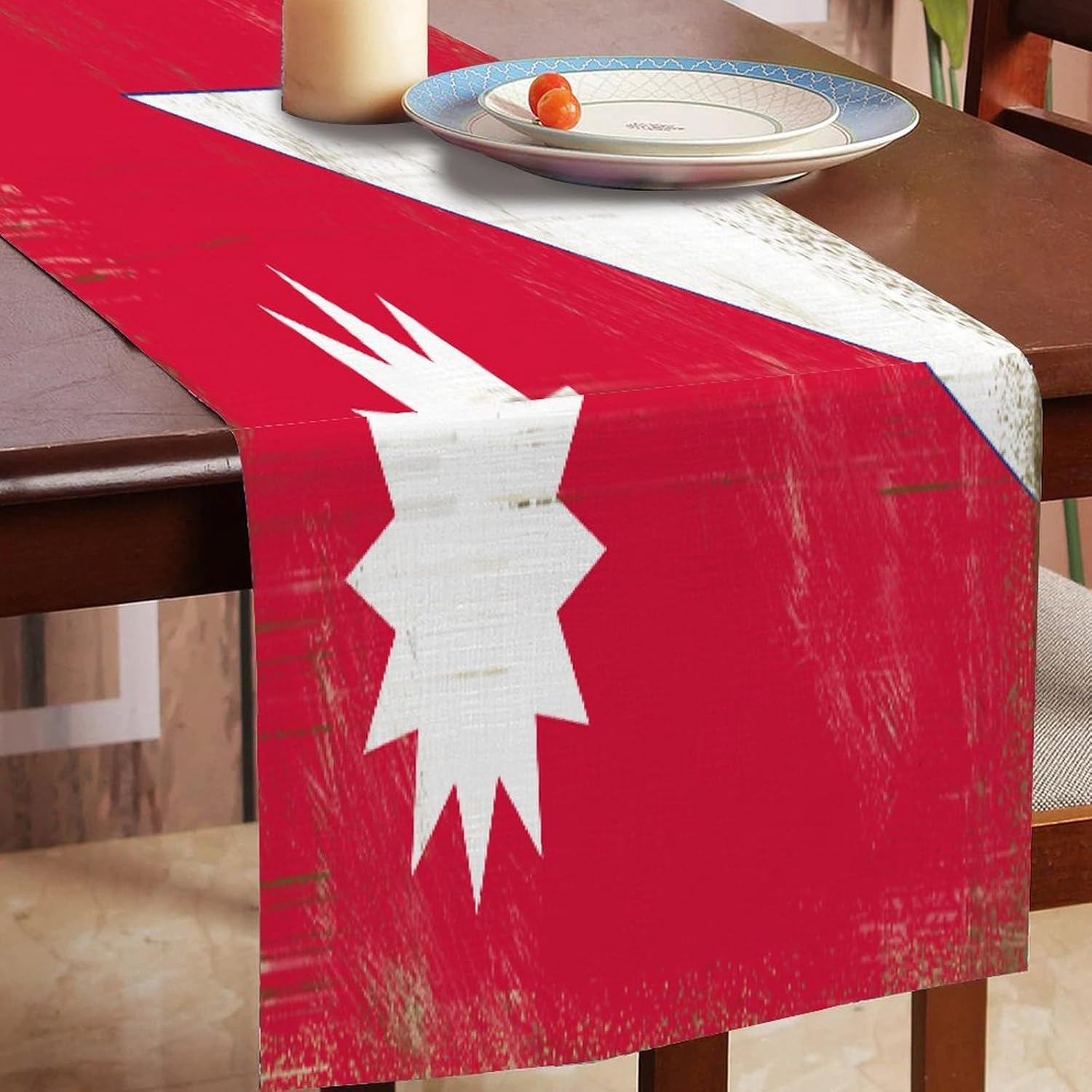 Divertente runner da tavola in stile rustico con bandiera nazionale del Nepal, 33 x 178 cm, runner da tavola in iuta nepalese, moderno per comò e runner per la casa