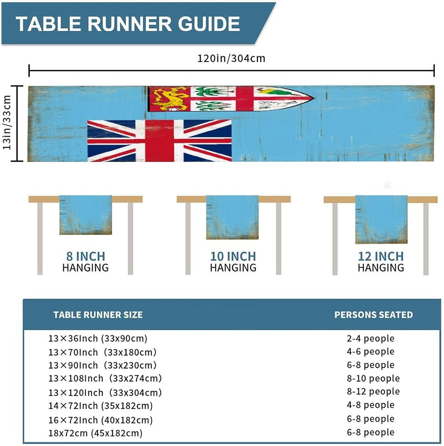 Divertente runner da tavola in stile rustico con bandiera nazionale delle Fiji, stile vintage, 33 x 300 cm, runner da tavola in iuta Fiji, moderno comò sciarpe e runner per la casa