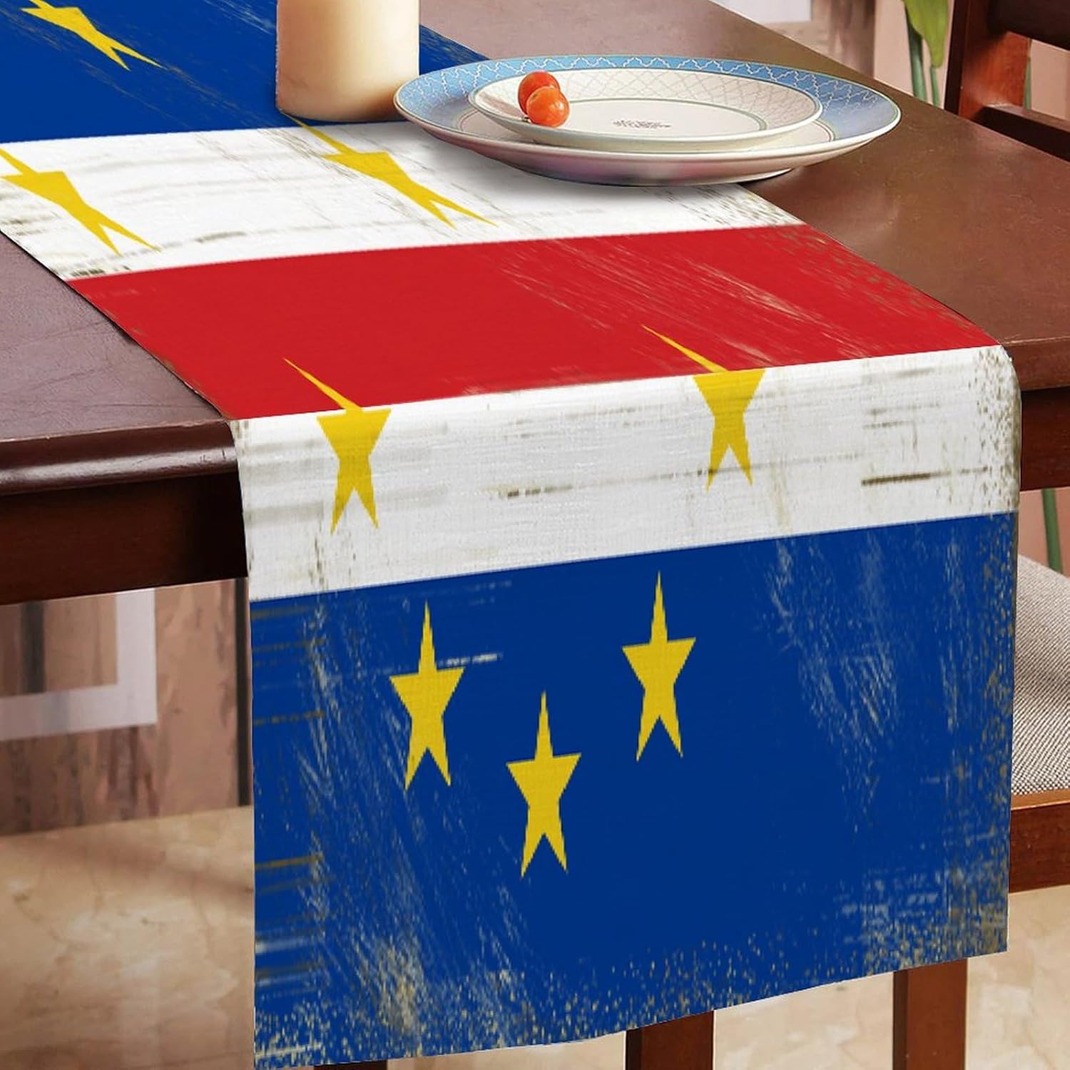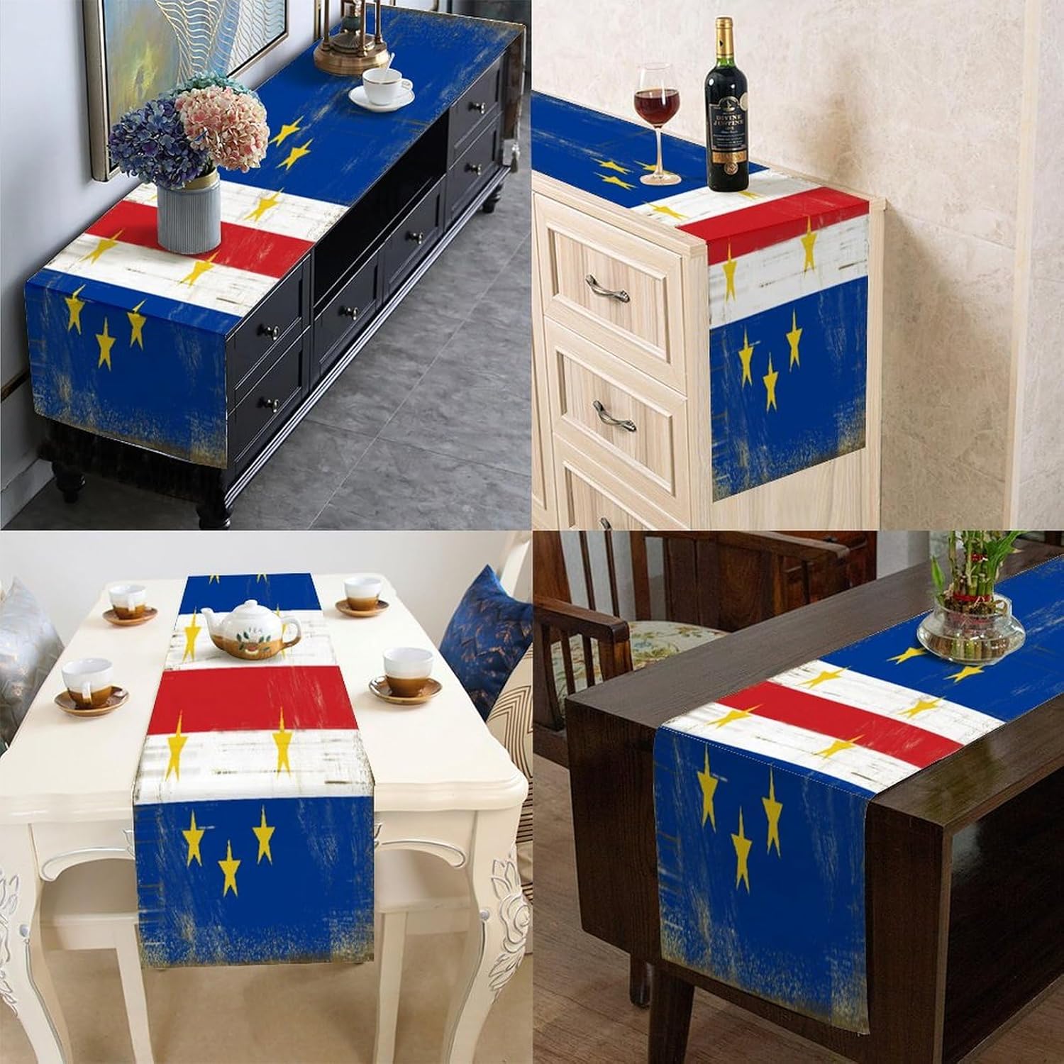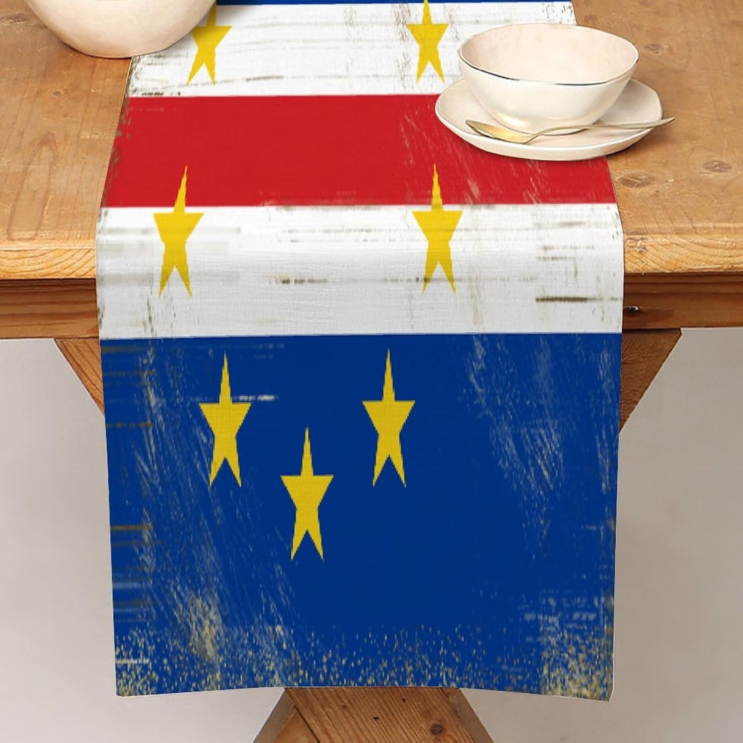 Divertente runner da tavola in stile rustico con bandiera nazionale di Cabo Verde, 45,7 x 198,7 cm, runner da tavola in iuta Cabo Verde, moderno per comò sciarpe e runner per la casa