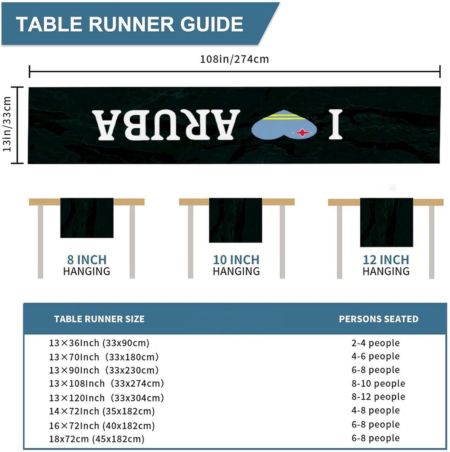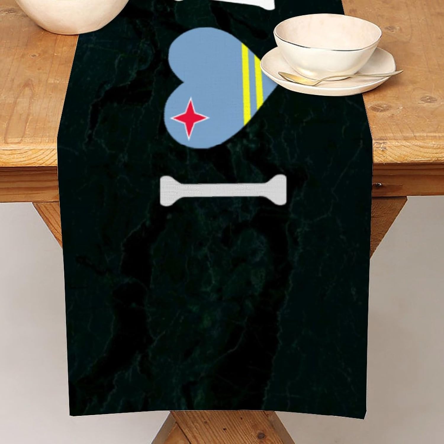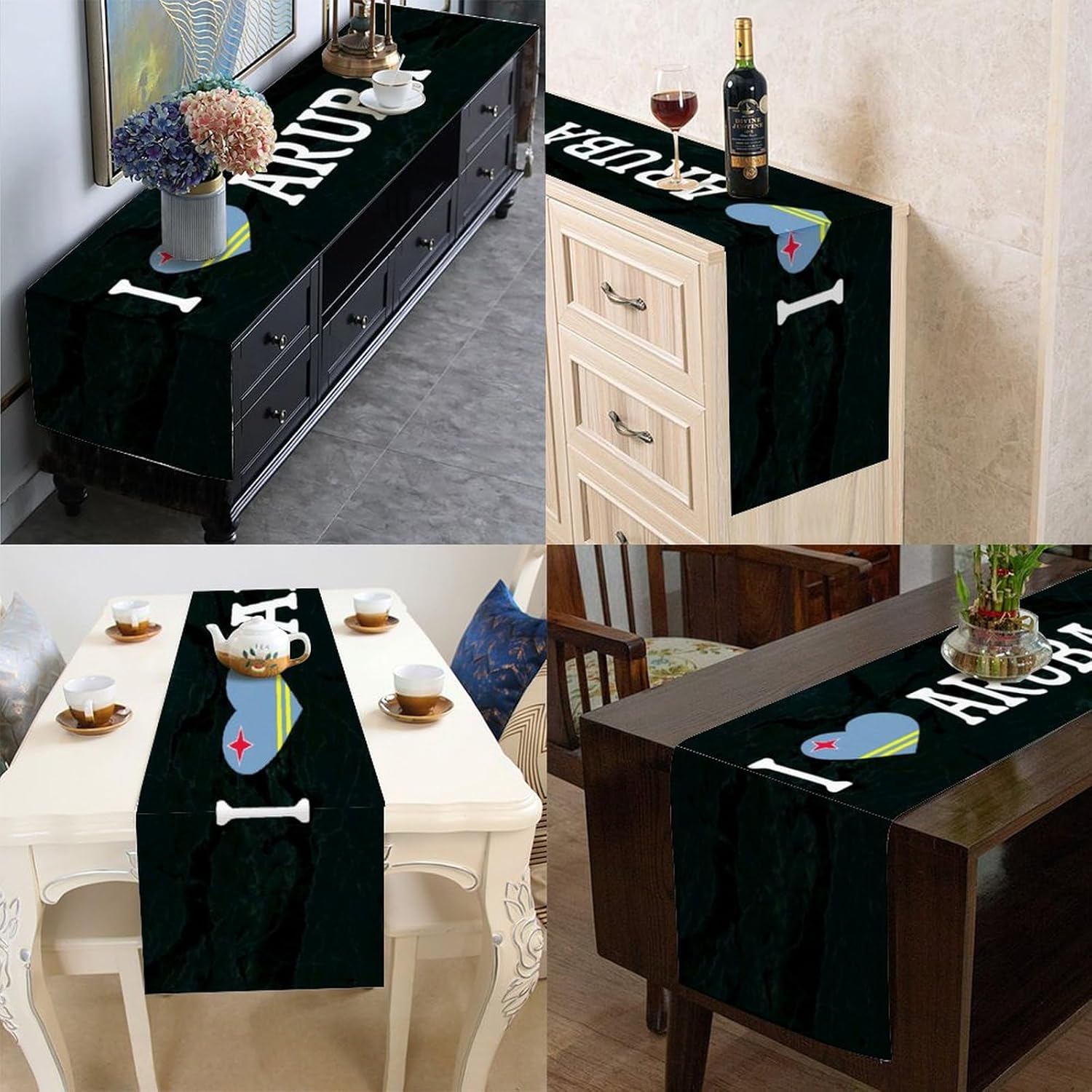 Divertente runner da tavola in stile rustico con scritta "I Love Aruba", 33 x 274 cm, con bandiera nazionale di Aruba, runner da tavolo moderno per cassettiera, sciarpe e runner per la casa