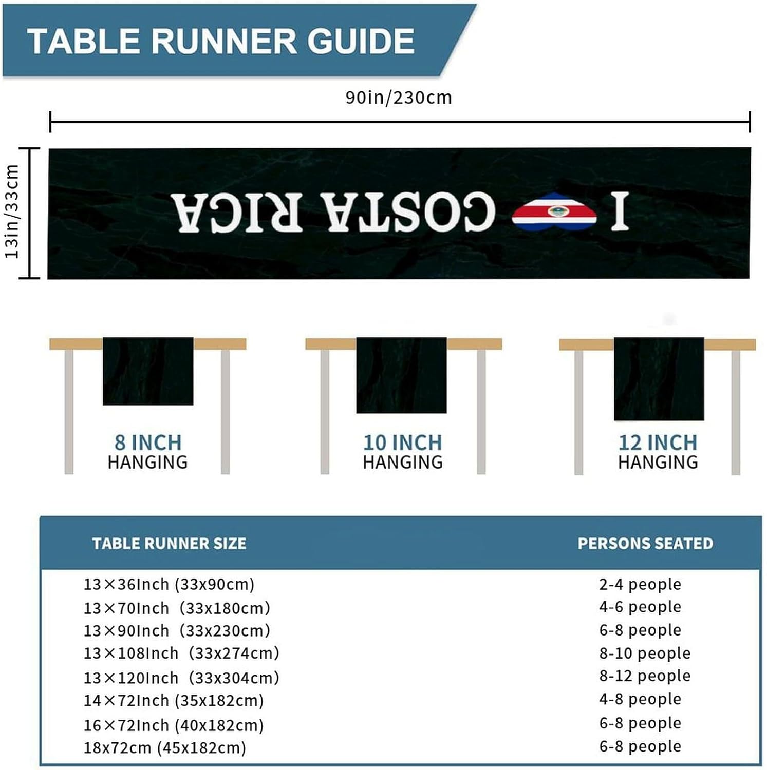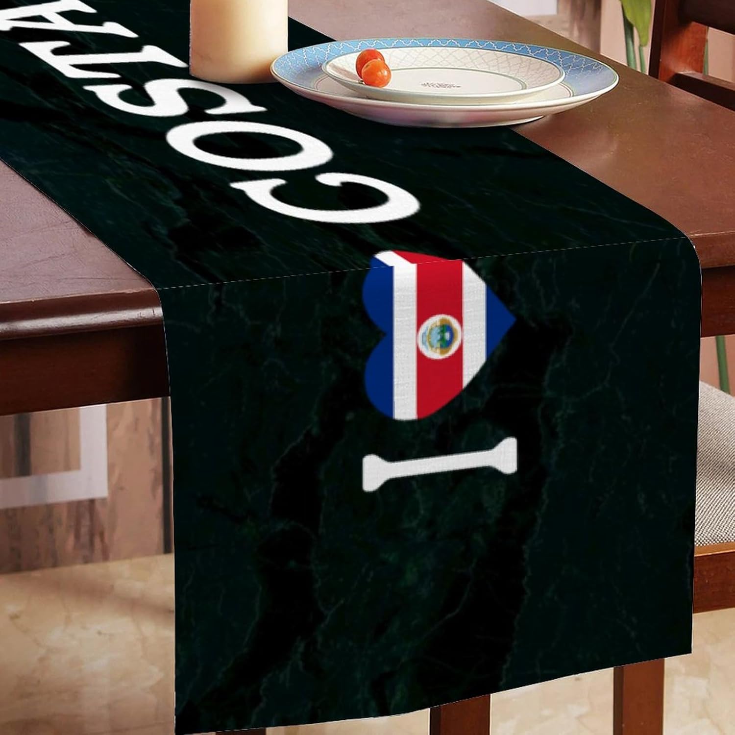 Divertente runner da tavola in stile rustico con scritta "I Love Costa Rica", 33 x 228 cm, con bandiera nazionale del Costa Rica, runner da tavolo moderno per cassettiera, sciarpe e runner per la casa