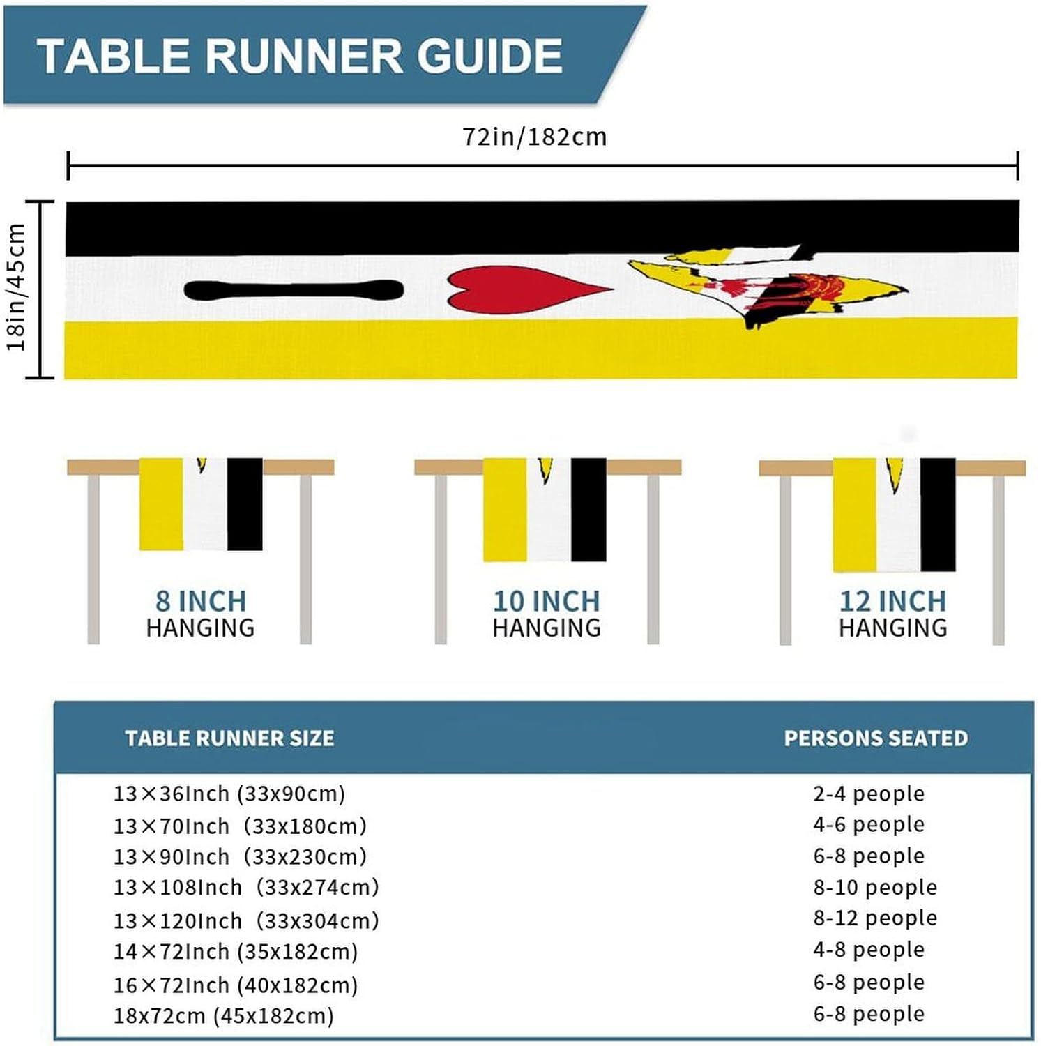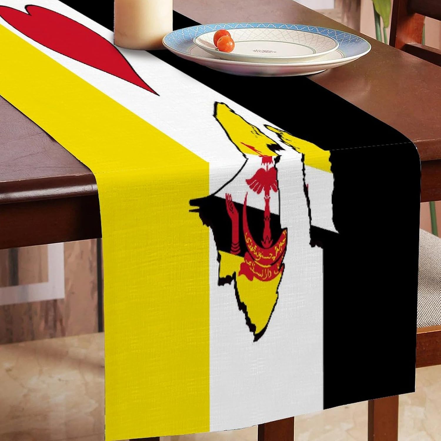 Divertente runner da tavola in stile rustico con scritta "I Love My Country,Brunei, 45,7 x 198,7 cm, bandiera del Brunei, runner da tavola in iuta moderna per comò, sciarpe e runner per la casa