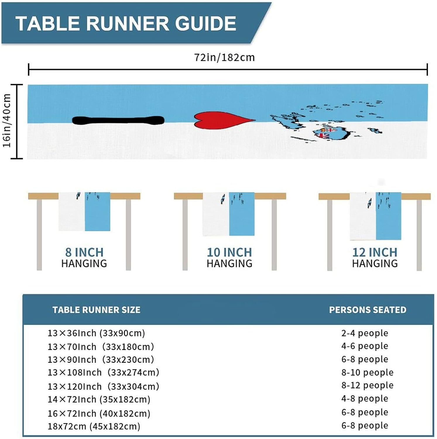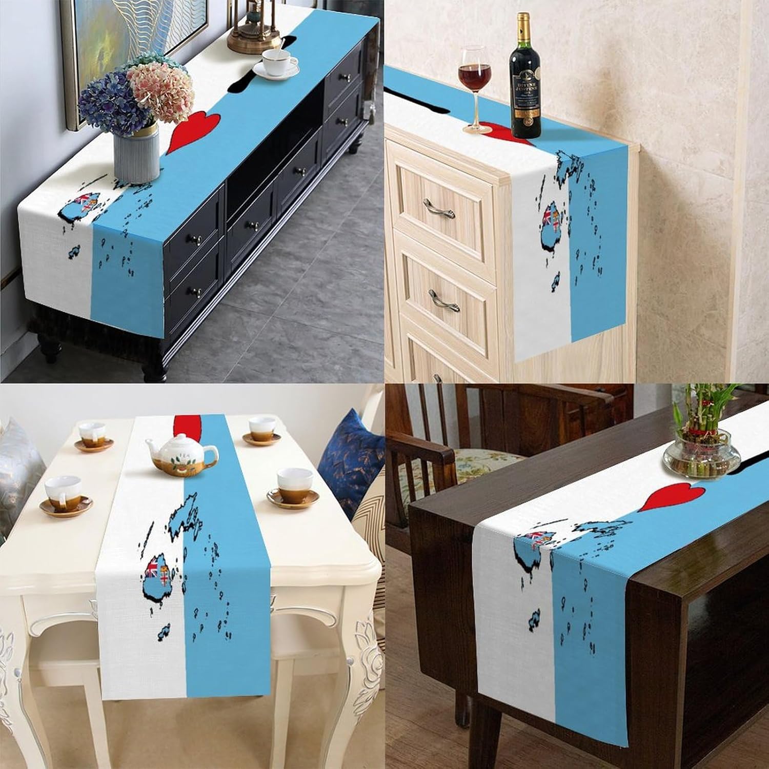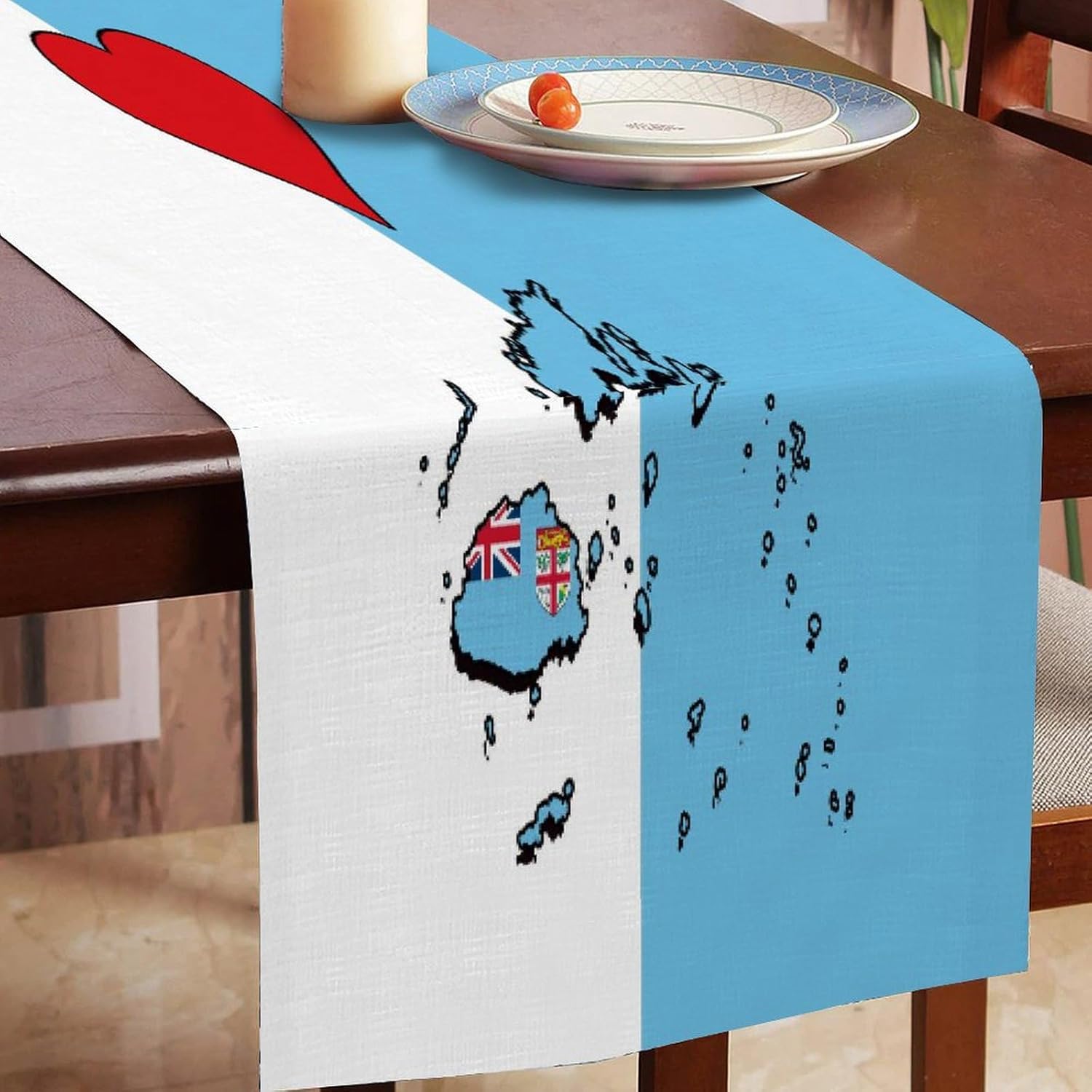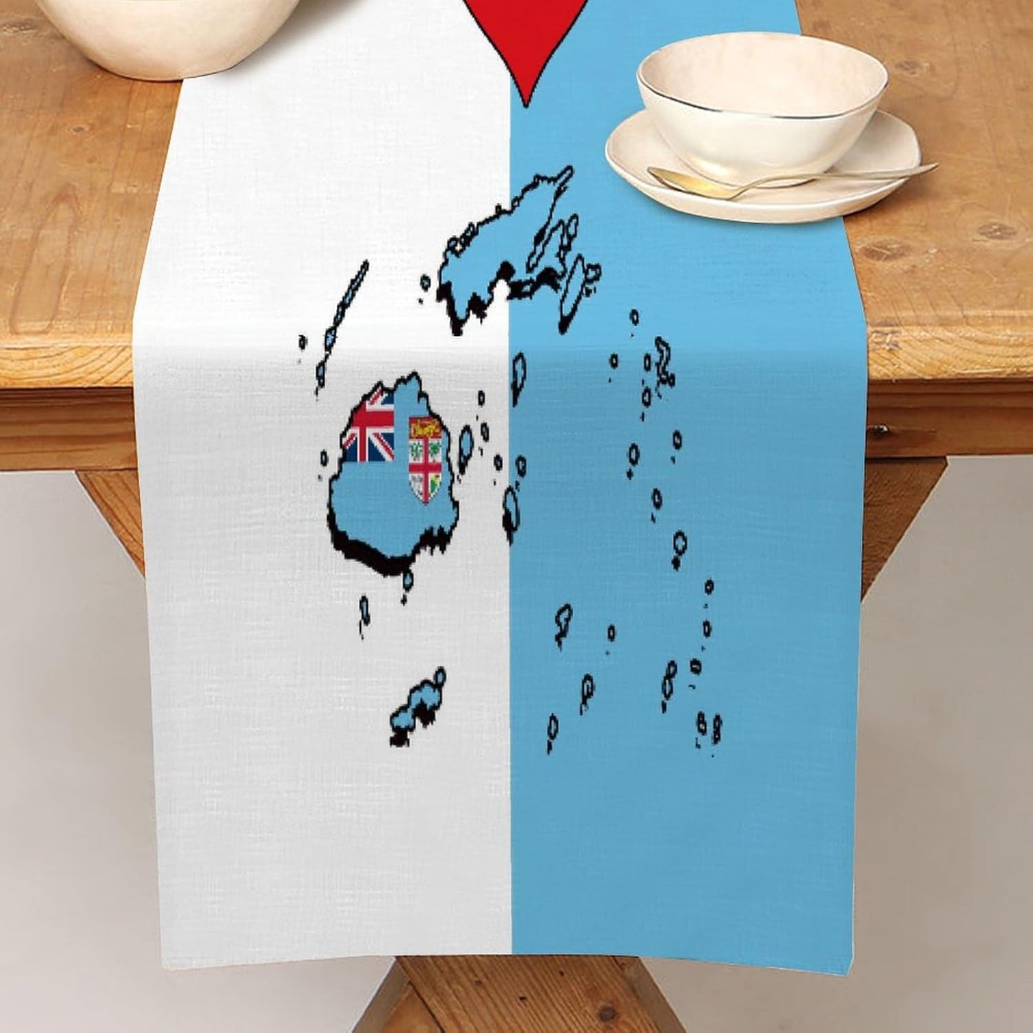 Divertente runner da tavola in stile rustico con scritta "I Love My Country" con bandiera delle Fiji, 40,6 x 182,8 cm, runner da tavolo in iuta con bandiera delle Fiji, moderna per cassettiera