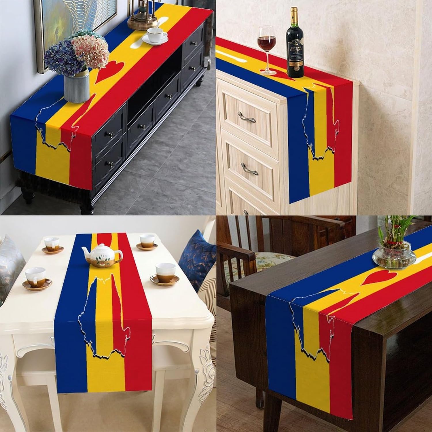 Divertente runner da tavola in stile rustico con scritta "I Love My Country,Romania", 35,6 x 182,8 cm, con bandiera della Romania, runner da tavolo moderno per cassettiera, sciarpe e runner per la