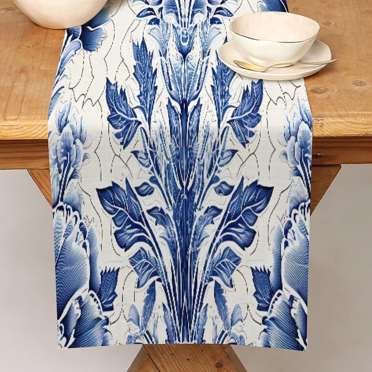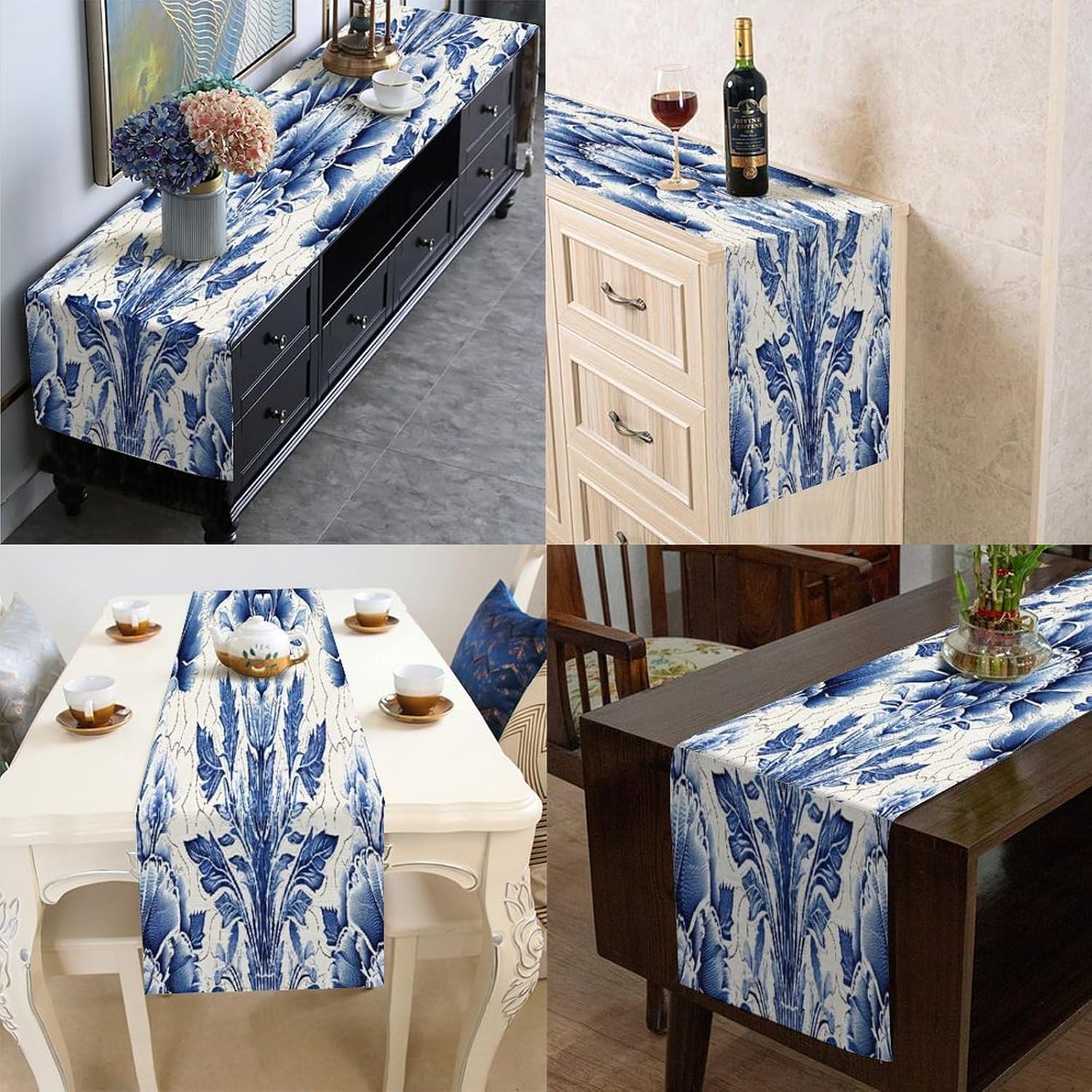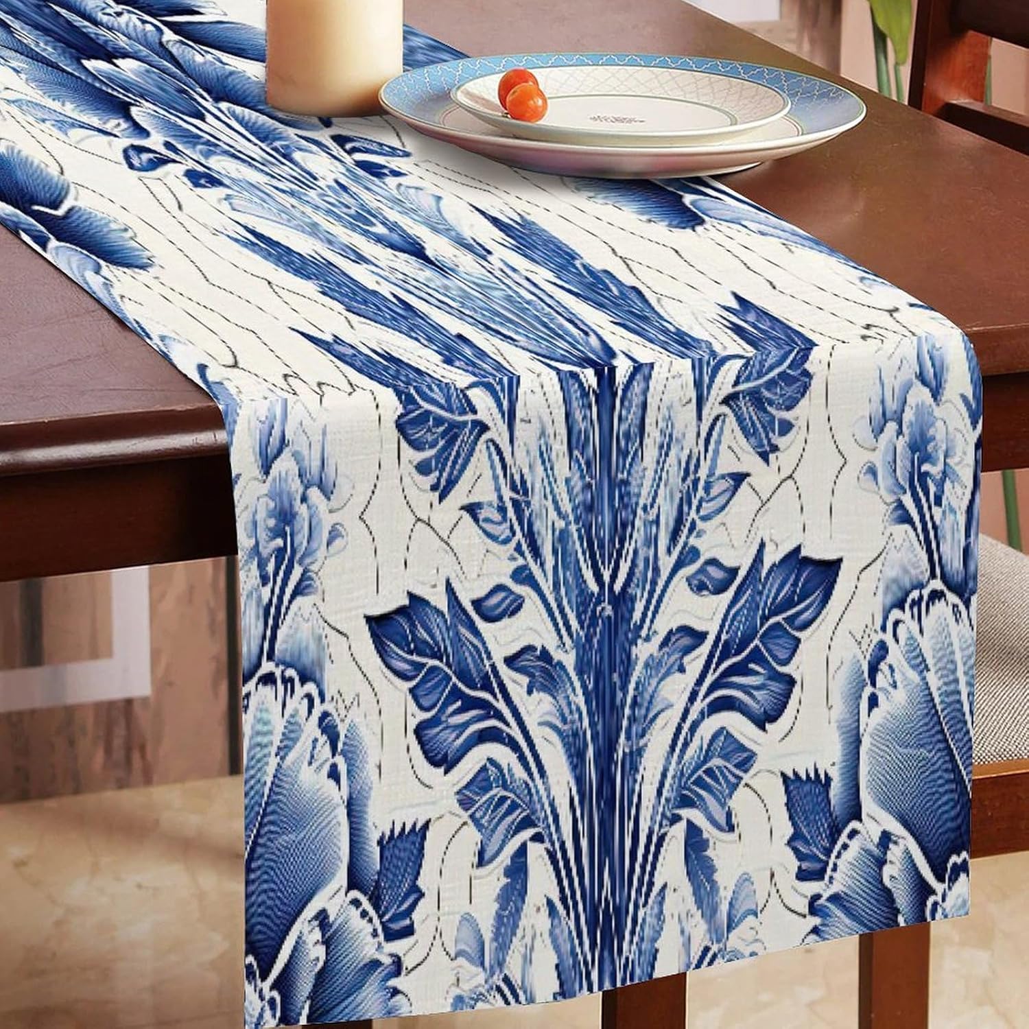 Divertente runner da tavolo da chef in cotone e lino in stile fattoria, runner da tavolo per tavolo da pranzo da cucina, decorazione per feste per occasioni speciali, blu bianco