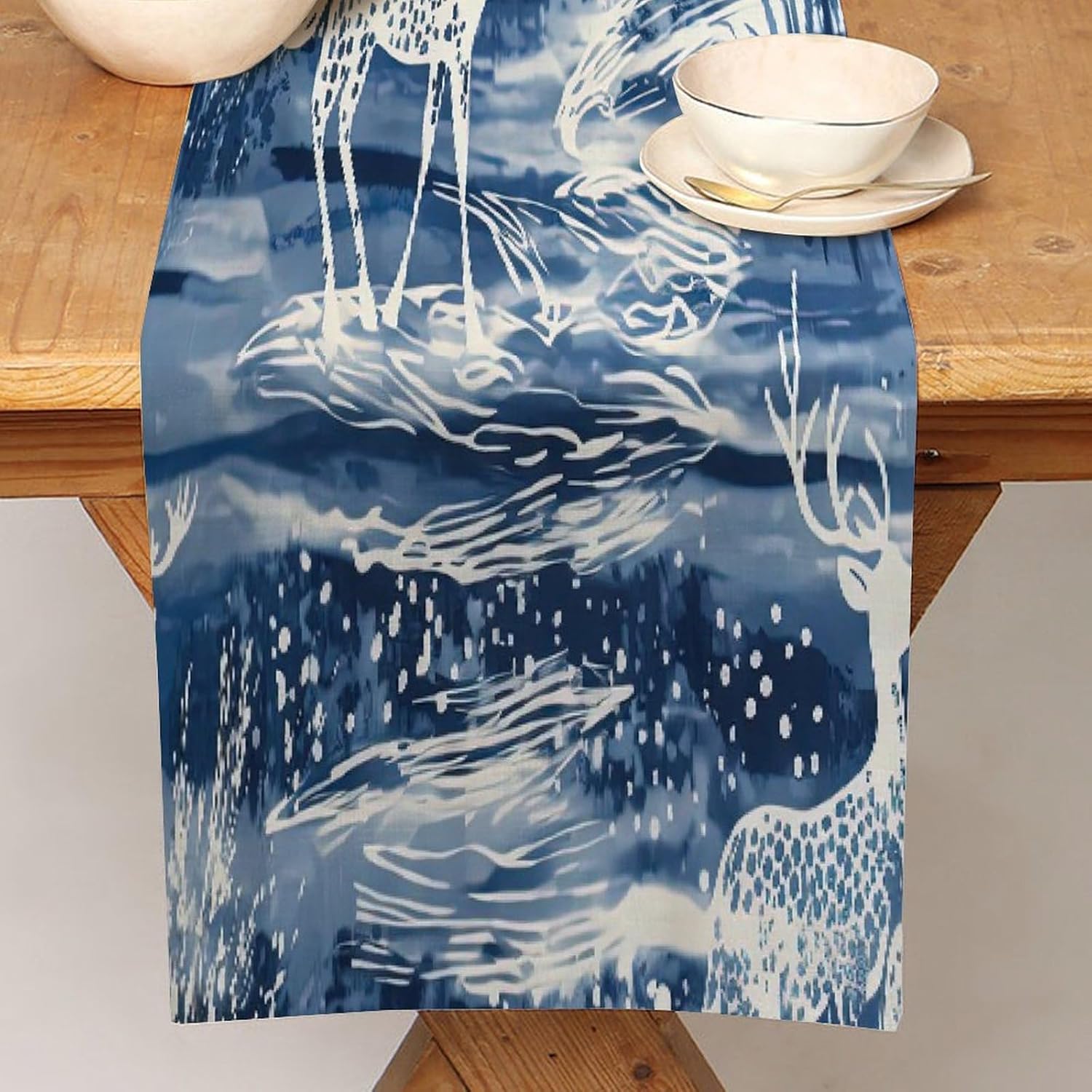 Divertente runner da tavolo da chef in stile chinoiserie con cervo in cotone e lino, stile fattoria, runner da tavolo per tavolo da pranzo da cucina, decorazione per feste per occasioni speciali