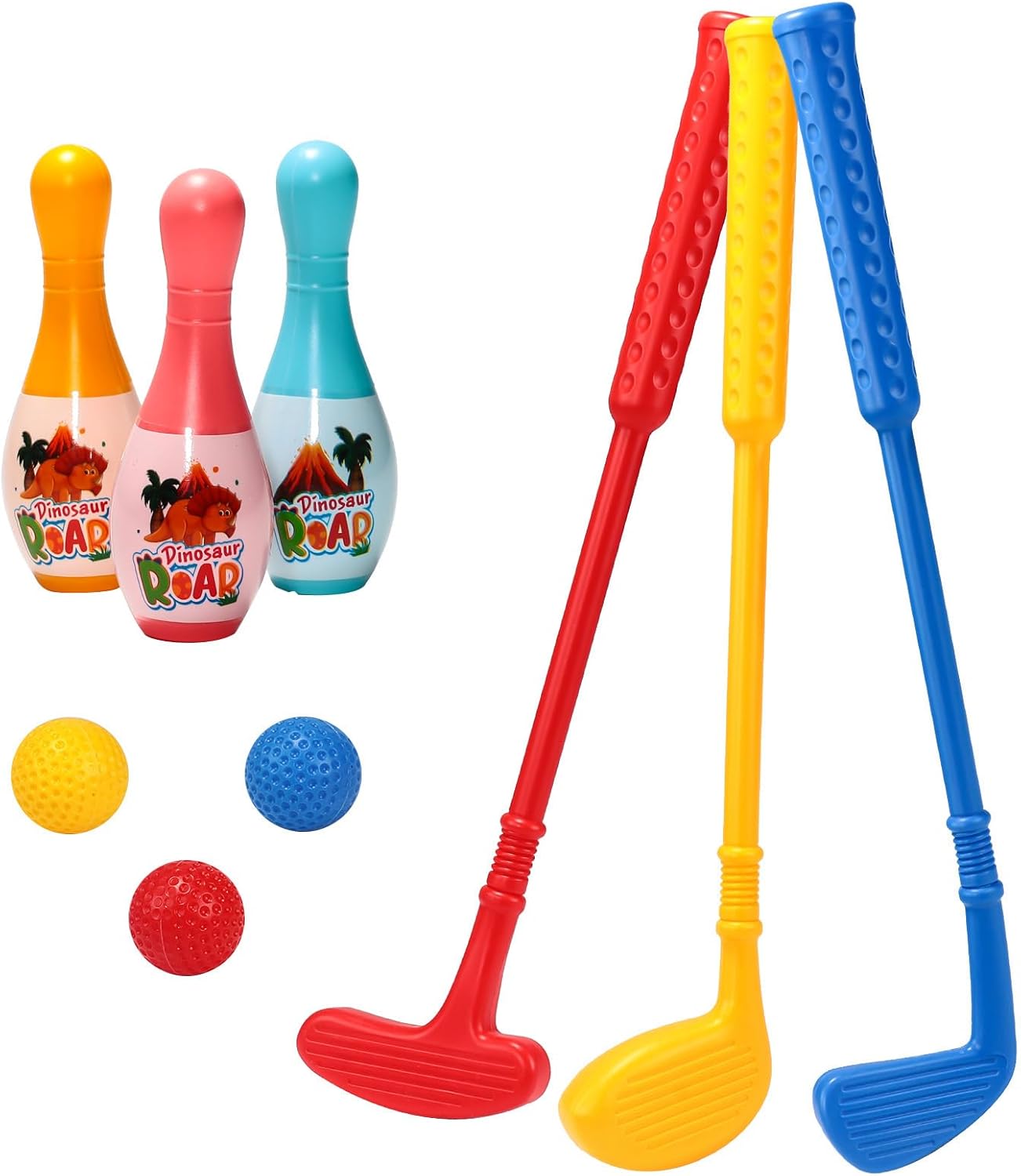 per l'allenamento in cortile, gite al parco o avventure di viaggio, facile da trasportare per divertimento in viaggio in famiglia Il set da bowling da golf per bambini con design garantisce un gioco sicuro, con mazze da golf per un facile swing Il club da golf adatto per bambini in crescita, uso condiviso in famiglie o attività di gruppo, divertimento al chiuso o all'aperto Grea tfor bambini dai 3 anni in su per praticare le abilità di golf in modo sicuro all'interno o all'aperto, supportato da materiali morbidi che riducono gli impatti L'ABS selezionato e la struttura rinforzata resistono al gioco energico, mentre l'impugnatura ergonomica favorisce le corrette tecniche di swing nei bambini golfisti