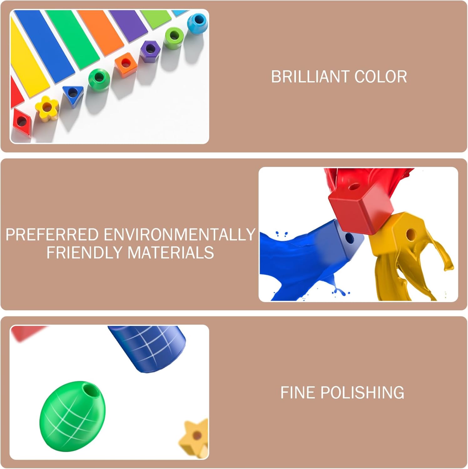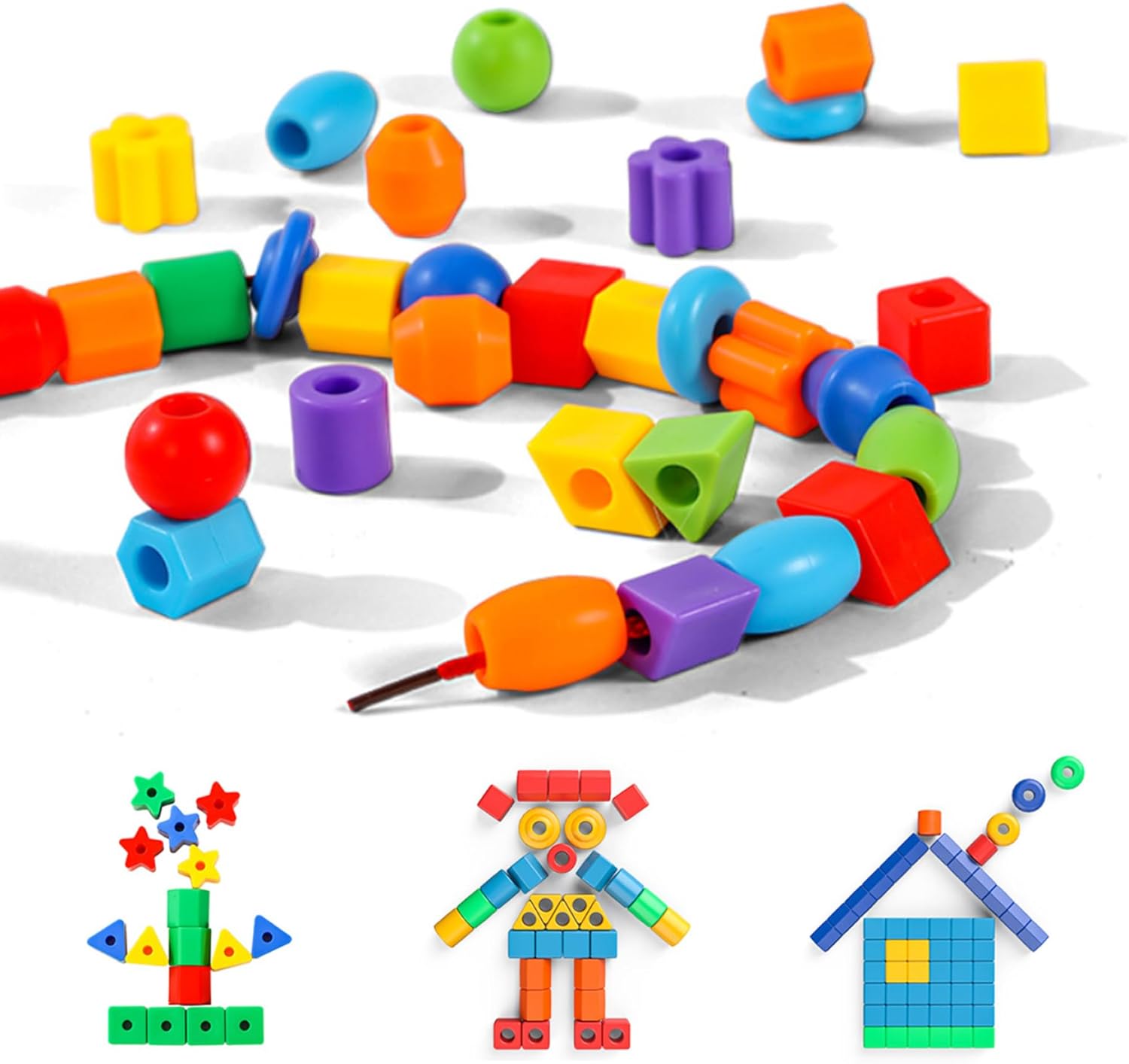 Colorate e coinvolgenti: le nostre perline sono disponibili in un vivace assortimento di colori, catturando l'immaginazione dei bambini e promuovendo la creatività mentre giocano e imparano. Materiali sicuri e stabili: realizzate in plastica atossica e di qualità, queste perline per allacciatura sono sicure per le mani dei più piccoli e costruite per resistere a ore di gioco creativo, garantendo un divertimento duraturo per i bambini. Ideale per attività di gruppo: ideali per appuntamenti di gioco o contesti di apprendimento di gruppo, queste perline promuovono l'interazione sociale, la cooperazione e il lavoro di squadra mentre i bambini condividono idee e creano insieme. Sviluppa abilità motorie: progettate per migliorare le capacità motorie, queste perline richiedono destrezza e precisione, aiutando i bambini in età prescolare a migliorare la coordinazione occhio-mano e le capacità di presa attraverso un gioco divertente e pratico. Strumento educativo per il gioco: perfette per l'educazione della prima infanzia, queste perle aiutano a insegnare ai bambini i colori, i modelli e il conteggio, incoraggiando al tempo stesso il pensiero critico e la risoluzione dei problemi in modo interattivo.