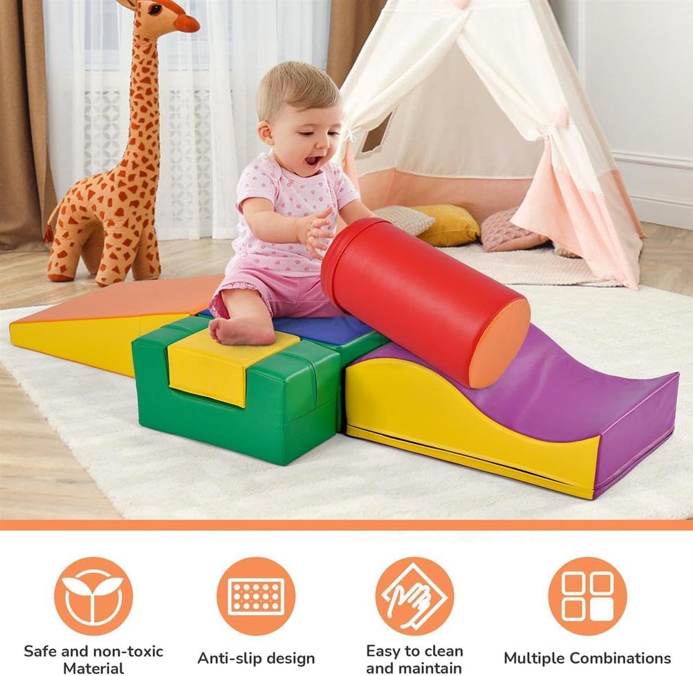 Divertimento senza fine al chiuso per piccoli scalatori: trasforma qualsiasi stanza in un parco giochi al coperto con i giochi da arrampicata per bambini da 1 a 3 anni! Riorganizza facilmente il triangolo, il quadrato, i gradini, i quarti di cerchio e il tunnel per creare nuove configurazioni, mantenendo il gioco quotidiano emozionante. Impara e gioca a ogni arrampicata: guarda il tuo bambino crescere più forte, più intelligente e più sicuro di sé con i giochi da arrampicata per bambini da interno. L'arrampicata sviluppa forza fisica ed equilibrio e migliora le capacità motorie e la vista, il tutto stimolando creatività e immaginazione. Progettato per l'avventura, costruito per la sicurezza: i blocchi da arrampicata in schiuma per bambini sono progettati con una cerniera a prova di bambino per un gioco sicuro mentre il tuo bambino esplora gli accattivanti blocchi da arrampicata per bambini. Monta facilmente la palestra da arrampicata per bambini e modificala per creare nuove configurazioni. Design resistente, comfort avvolgente: il tuo piccolo avventuriero sarà conquistato dal comfort accogliente dei resistenti blocchi in schiuma per bambini da 1 a 3 anni! Rivestiti in morbida pelle PU, creano il parco giochi imbottito per arrampicata, capriole e risate infinite. Una trasformazione del gioco in corso: i blocchi da arrampicata per bambini piccoli arrivano confezionati sottovuoto e impiegano circa 72 ore per espandersi completamente. Hai bisogno di un piccolo aiuto? Usa un asciugacapelli in modalità aria fredda per facilitare il processo. Inizia il conto alla rovescia per sorrisi inarrestabili!