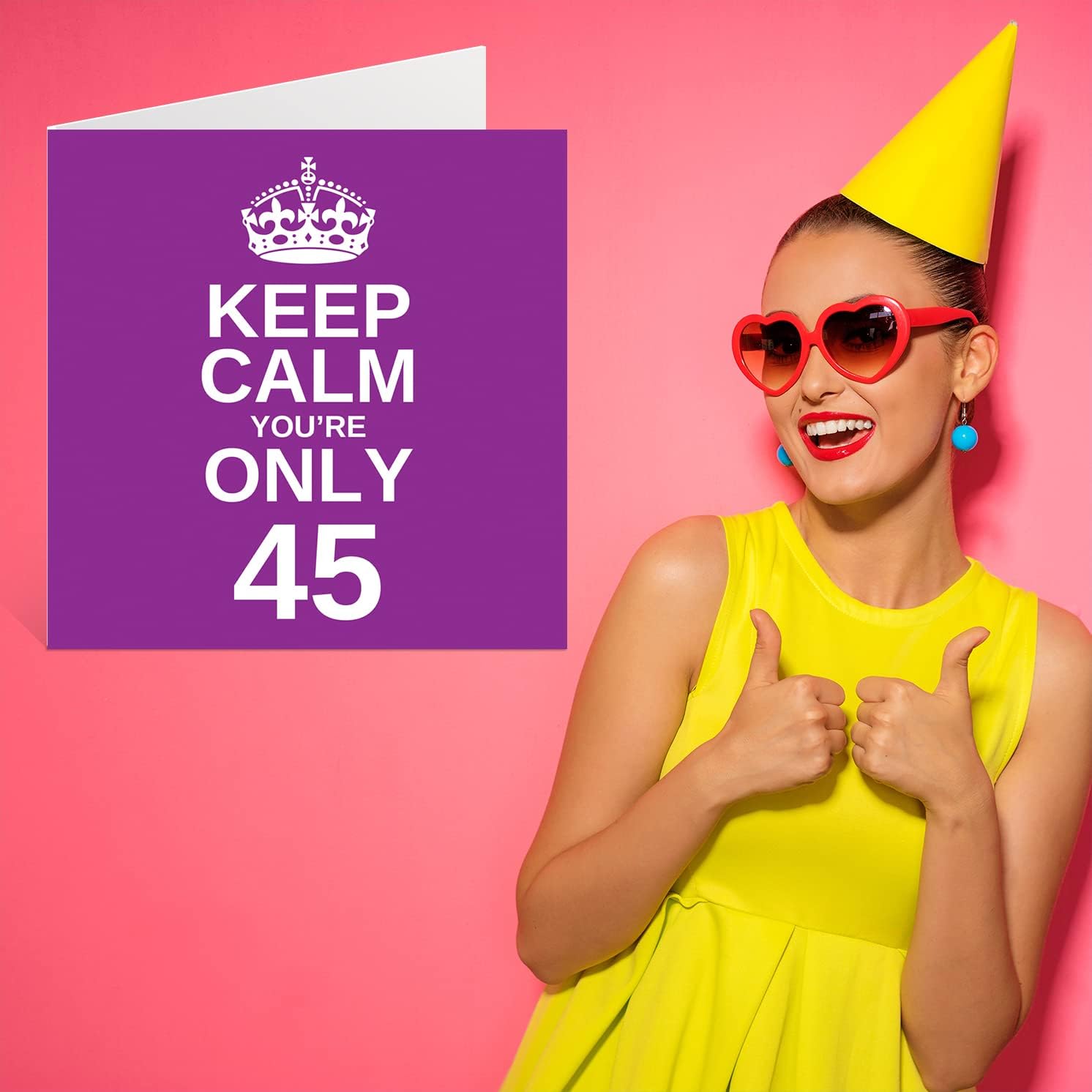 Falli sorridere con questo divertente biglietto di auguri di compleanno: questo biglietto di auguri di eccezionale qualità per lei o per lui mostra il design "Keep Calm You're Only 45". Se stai cercando biglietti d'auguri divertenti per donne, allora questo biglietto d'auguri le farà ridere. Contenuto della confezione: il biglietto è stampato su un lato e rigato all'interno per permetterti di scrivere il tuo messaggio. Il design unico e divertente è stampato su cartone ecologico appositamente acquistato. Con uno spessore di 360 micron e una grammatura di 300 g/m², la lavagna bianca lucida ha un aspetto e una sensazione di qualità. Viene fornito con una busta gommata colorata per completare il design e pronta per essere sigillata e spedita. Nessuna macchia di inchiostro: non c'è niente di peggio che descrivere l'interno di una carta solo per scoprire che la superficie lucida fa sanguinare l'inchiostro. Ecco perché utilizziamo un pannello rivestito di alta qualità su un lato. Il lato non rivestito assorbirà più inchiostro dalla penna, rendendo le sbavature un ricordo del passato. Biglietti d'auguri per papà, biglietti d'auguri per il migliore amico, biglietti d'auguri divertenti, biglietti d'auguri maleducati per moglie. Dimensioni: biglietto d'auguri = 145 mm x 145 mm, busta = 155 mm x 155 mm, peso del biglietto 300 g/m², spessore del biglietto = 360 micron. Biglietti d'auguri per un amico, un biglietto d'auguri per un uomo, un biglietto per il 45esimo compleanno, un biglietto d'auguri per un suocero. Prodotto e qualità controllata nel Regno Unito: stampiamo e produciamo tutti i nostri prodotti direttamente nel Regno Unito, così puoi essere sicuro di una consegna rapida e di un prodotto fabbricato con cura. Utilizzando il miglior cartoncino certificato Forest Stewardship Council, la nostra carta è consapevole della gestione responsabile delle foreste del mondo: biglietti d'auguri per uomini, biglietti d'auguri per uomini, biglietti vintage.