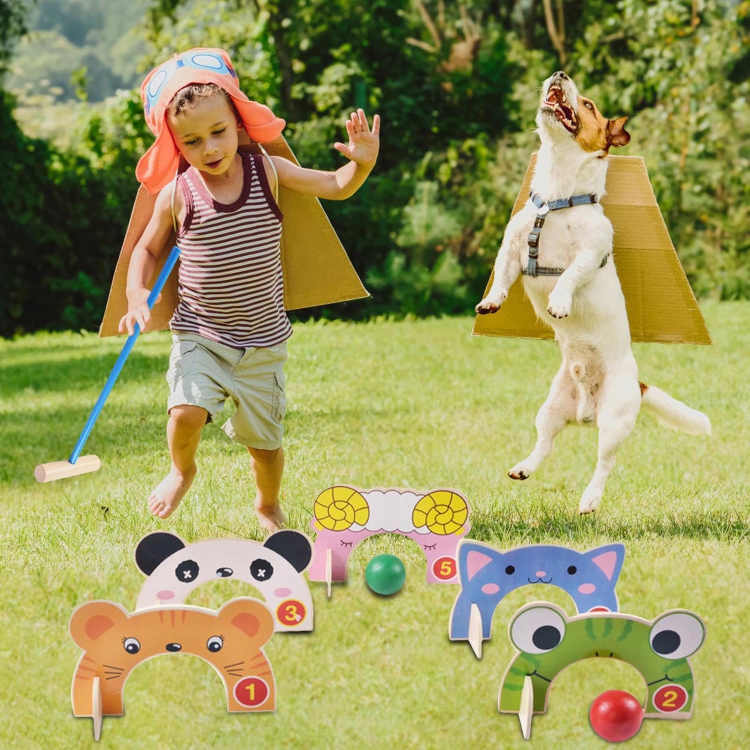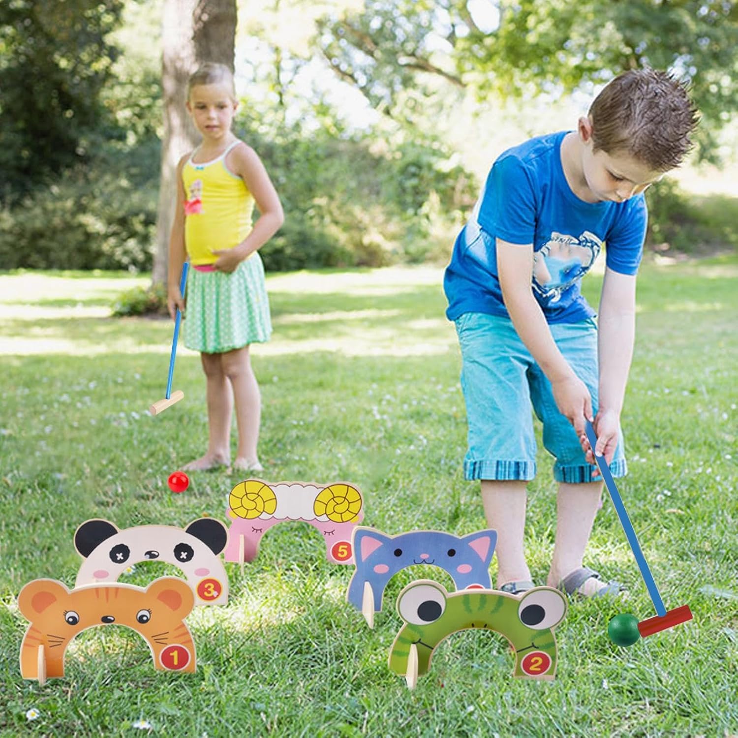 ➣Esperienza di gioco migliorata: questo set da croquet per bambini è realizzato con materiali in legno finemente dipinti e offre una presa comoda con un equilibrio ottimale. Il suo design leggero garantisce una maneggevolezza confortevole, mentre la sua robustezza consente un uso frequente. Offri ai tuoi bambini l'esperienza di gioco ideale con questo set di alta qualità. ➣Divertimento avvincente: presentiamo il nostro set da croquet per bambini, progettato con colori vivaci e adorabili animali dei cartoni animati per affascinare i bambini. Questo set aiuta a migliorare la percezione sensoriale e le capacità cognitive, promuove l'apprendimento per identificare gli animali e i loro colori e rende il gioco un'esperienza interattiva per i bambini. ➣Crea ricordi di famiglia: il set da croquet dei nostri bambini è un gioco cooperativo che incoraggia l'interazione familiare e promuove una forte relazione genitore-figlio. Gioca insieme e crea legami divertendoti con questa attività. ➣Ampia gamma di applicazioni: il nostro set da croquet per bambini offre ai bambini maggiori opportunità di divertimento e sviluppo di abilità a casa, all'asilo o in campeggio. ➣Regalo eccellente: goditi pomeriggi ridenti con questo regalo pratico. per bambini e bambine in occasione di compleanni, Natale, anniversari e Pasqua.