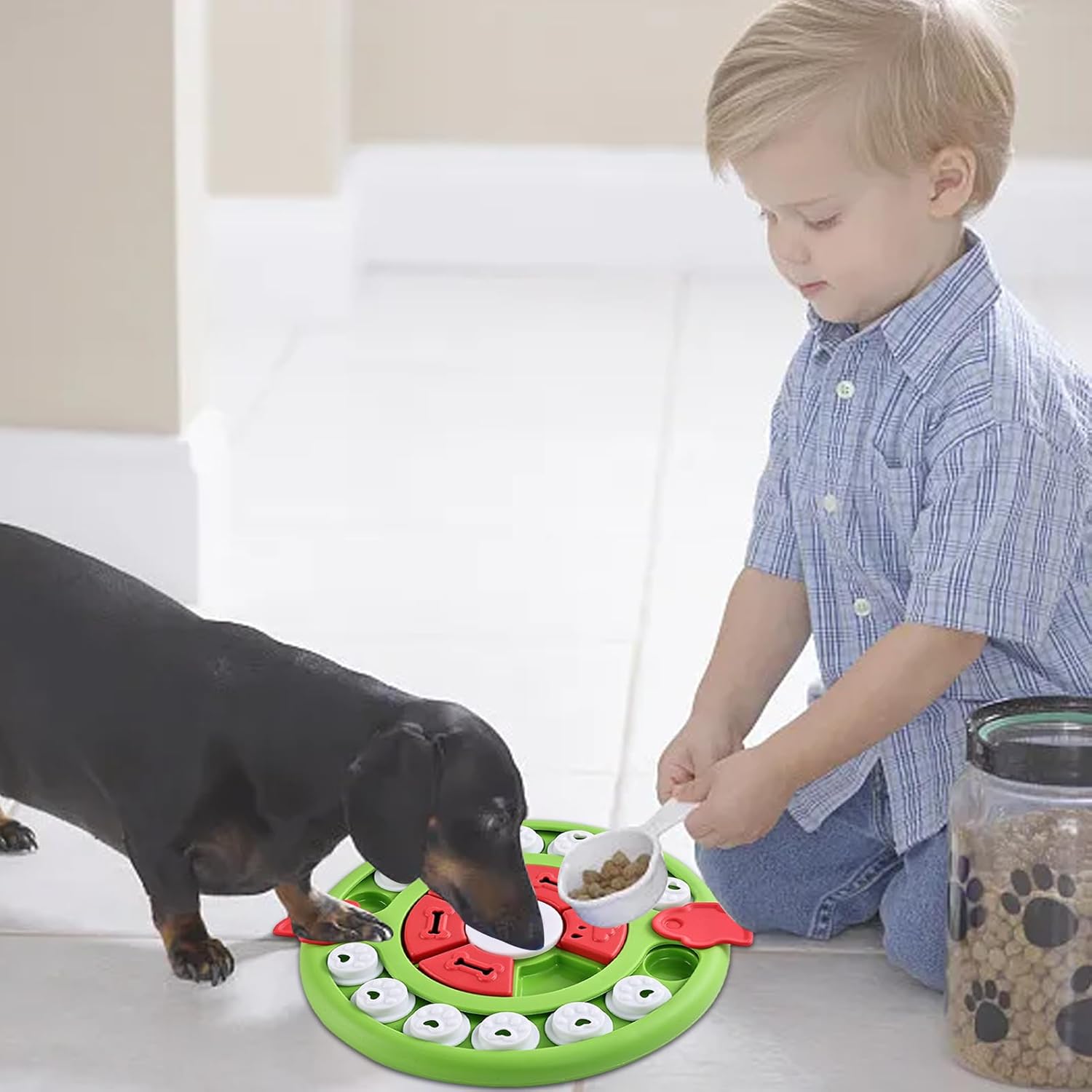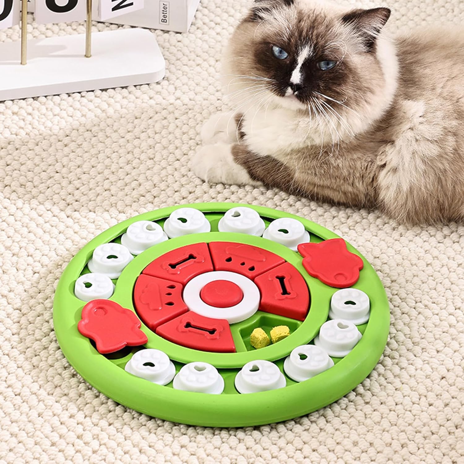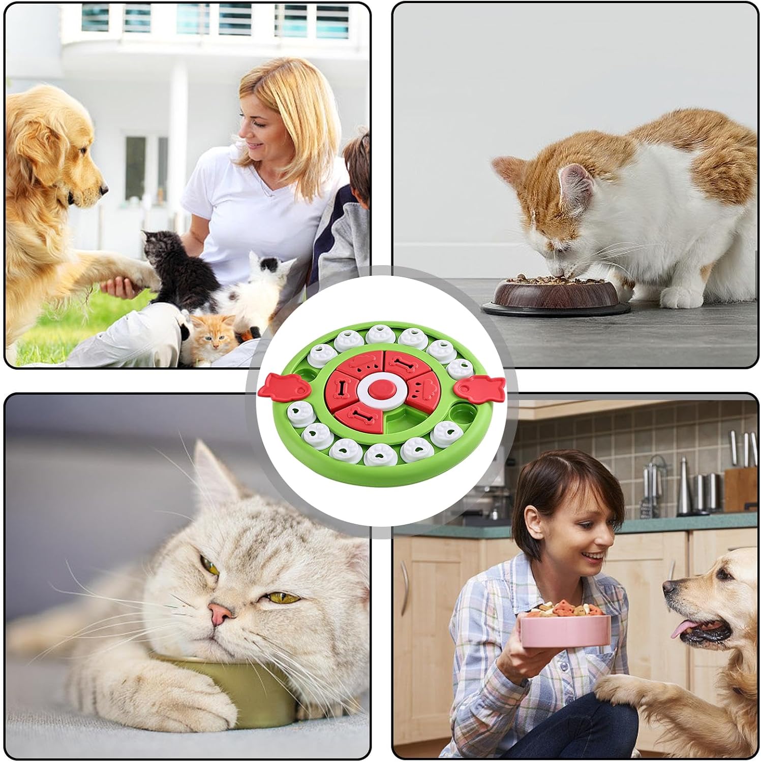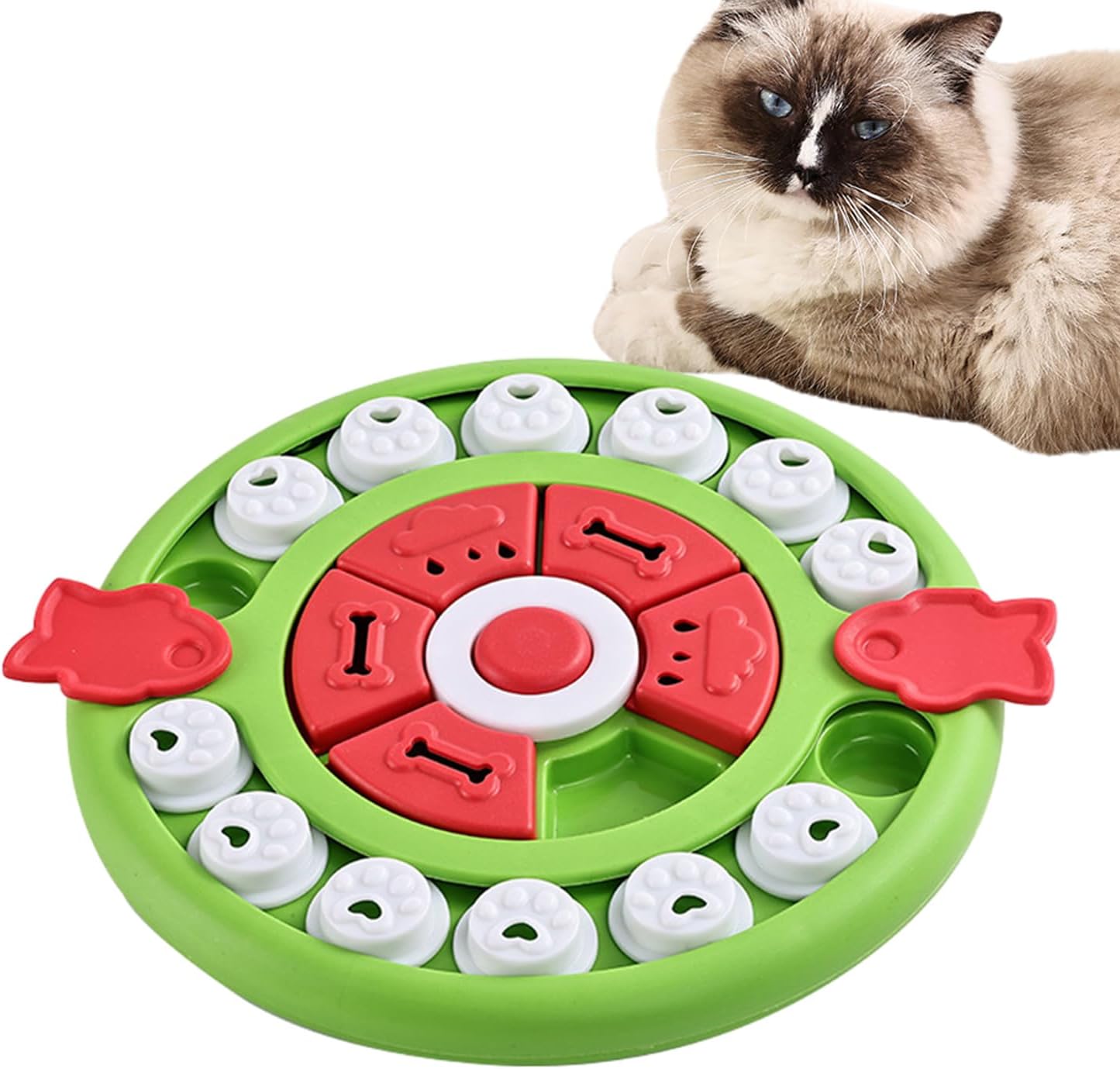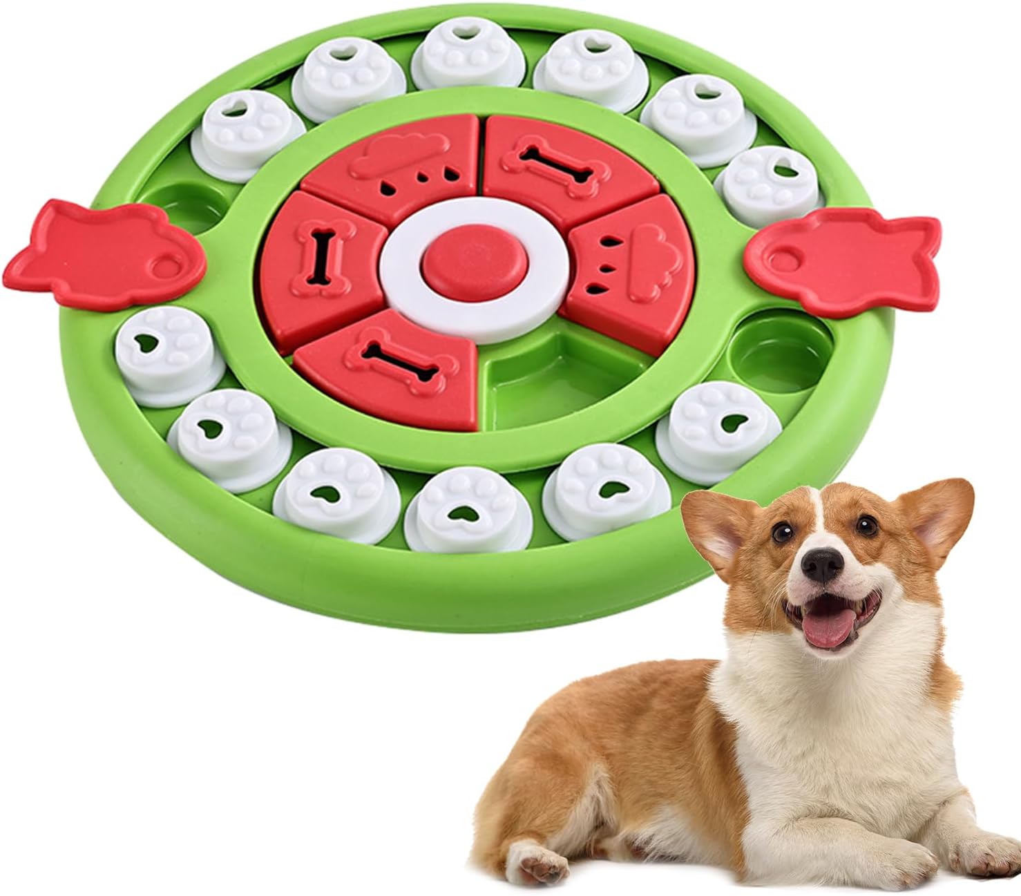Sicurezza garantita: rendi divertente il tuo amico peloso mangiare mentre proteggi la sua bocca. Il nostro puzzle giocattolo non danneggia la lingua o i denti del vostro animale domestico e dispone di superfici lisce e arrotondate per sicurezza. Alimentazione impegnativa: aumenta il tempo di gioco del tuo cucciolo con il nostro giocattolo puzzle di alimentazione per cani. Può esplorare la curiosità e il desiderio del tuo animale domestico, possono bruciare l'energia in eccesso durante il gioco. Progettato con molteplici difficoltà per una sfida mentale e fisica ideale. Esercizio di intelligenza: gli animali domestici usano il naso o per spostare i cursori e accedere con questo giocattolo puzzle per l'alimentazione dei cani. Stimola la loro mente e mantienila intrattenuta nascondendo spuntini extra nello slot, il che lo rende un ottimo modo per esercitare la loro intelligenza. Stabilità non antiscivolo: goditi la tranquillità quando sai che i nostri giocattoli puzzle usciranno i cuscinetti antiscivolo per evitare che gli animali domestici scivolino o si ribaltino mentre giocano. La presa salda migliora la stabilità e consente al tuo amico peloso di concedersi completamente il divertimento. Migliore digestione: riduce il rischio di vomito e disturbi allo stomaco nei cani con questo alimentatore puzzle. Il cibo lento favorisce una migliore digestione e migliora la salute generale del tuo animale domestico.