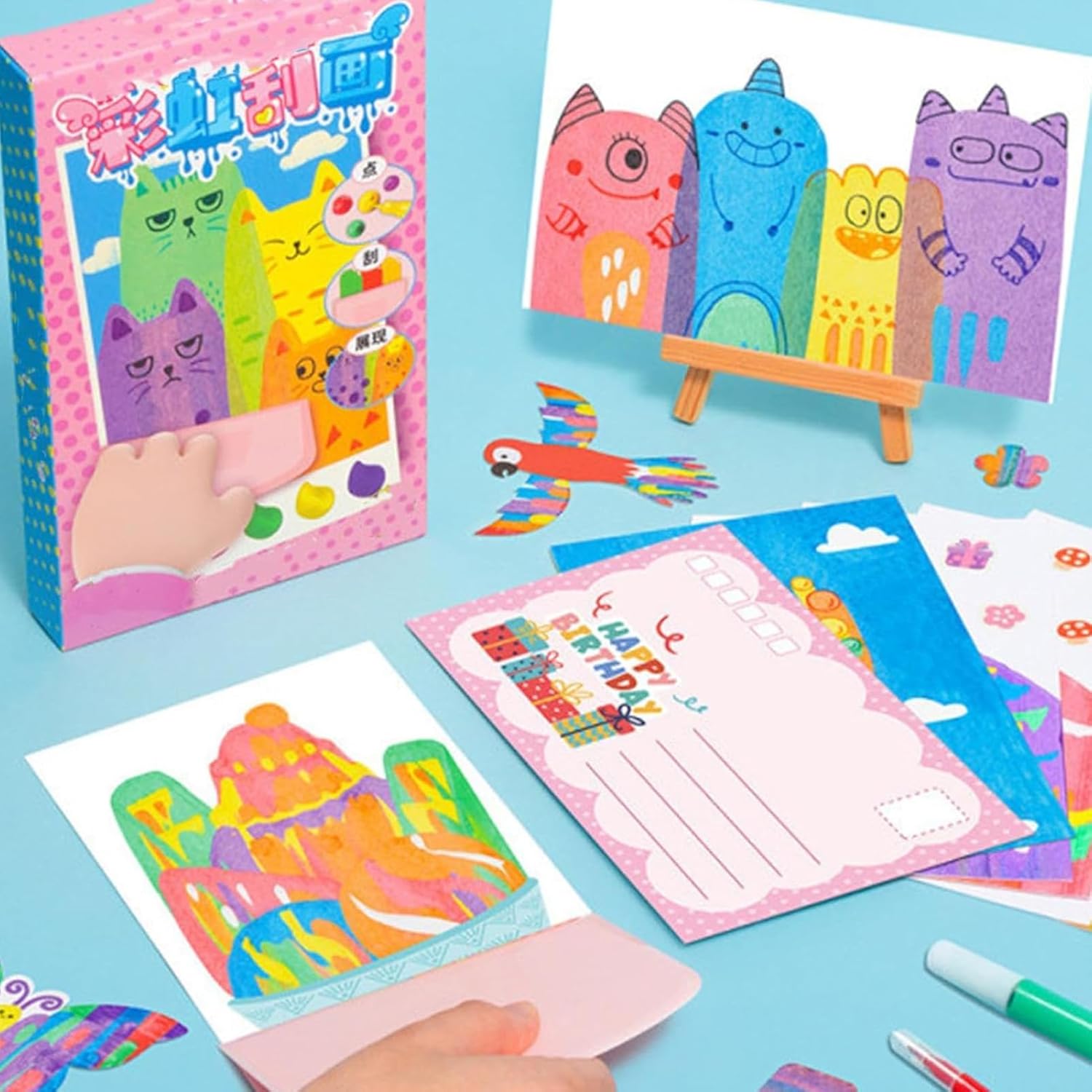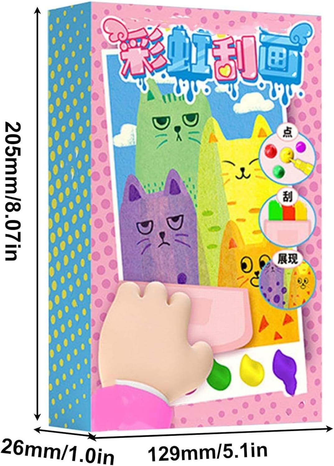 DIY Rainbow Scratch Painting: questo kit di scratch art incoraggia i bambini a scatenare la loro immaginazione e a scoprire la magia dei colori vivaci dell'arcobaleno mentre graffiano per rivelare colorati Set di scratch painting a pois: ogni pezzo di scratch art ha una cartolina sul retro! Una volta che il tuo bambino ha finito di creare la sua arte, può trasformarla in una cartolina personalizzata aggiungendo un messaggio speciale. Ciò aggiunge un ulteriore livello di creatività, rendendolo un regalo o un ricordo ancora più significativo da inviare a familiari e amici Rainbow Scratch Painting: il kit di artigianato offre più di un semplice intrattenimento: aiuta i bambini a sviluppare capacità motorie fini e coordinazione occhio-mano mentre graffiano e creano i loro capolavori. Ogni graffio rivela colori audaci e brillanti, rendendo il processo ancora più emozionante e gratificante Pigmenti colorati a sette colori: i sette pigmenti offrono un'ampia gamma di scelte di colori, consentendo di mescolare le combinazioni di colori più adatte in base al tuo stato d'animo e al tema creativo Il miglior regalo: questo kit di scratch art è la scelta ideale per ragazzi e ragazze, rendendolo un regalo delizioso per compleanni, festività o qualsiasi occasione. È perfetto anche come bomboniera, regalando ai bambini qualcosa di divertente e creativo da portare a casa e di cui godere