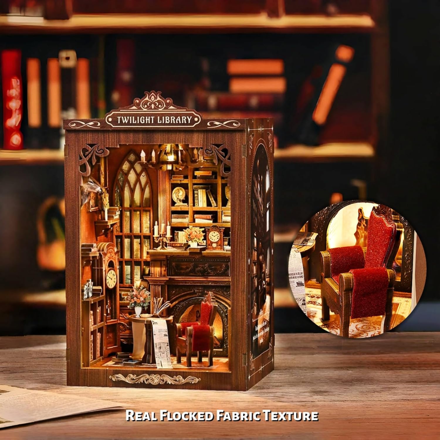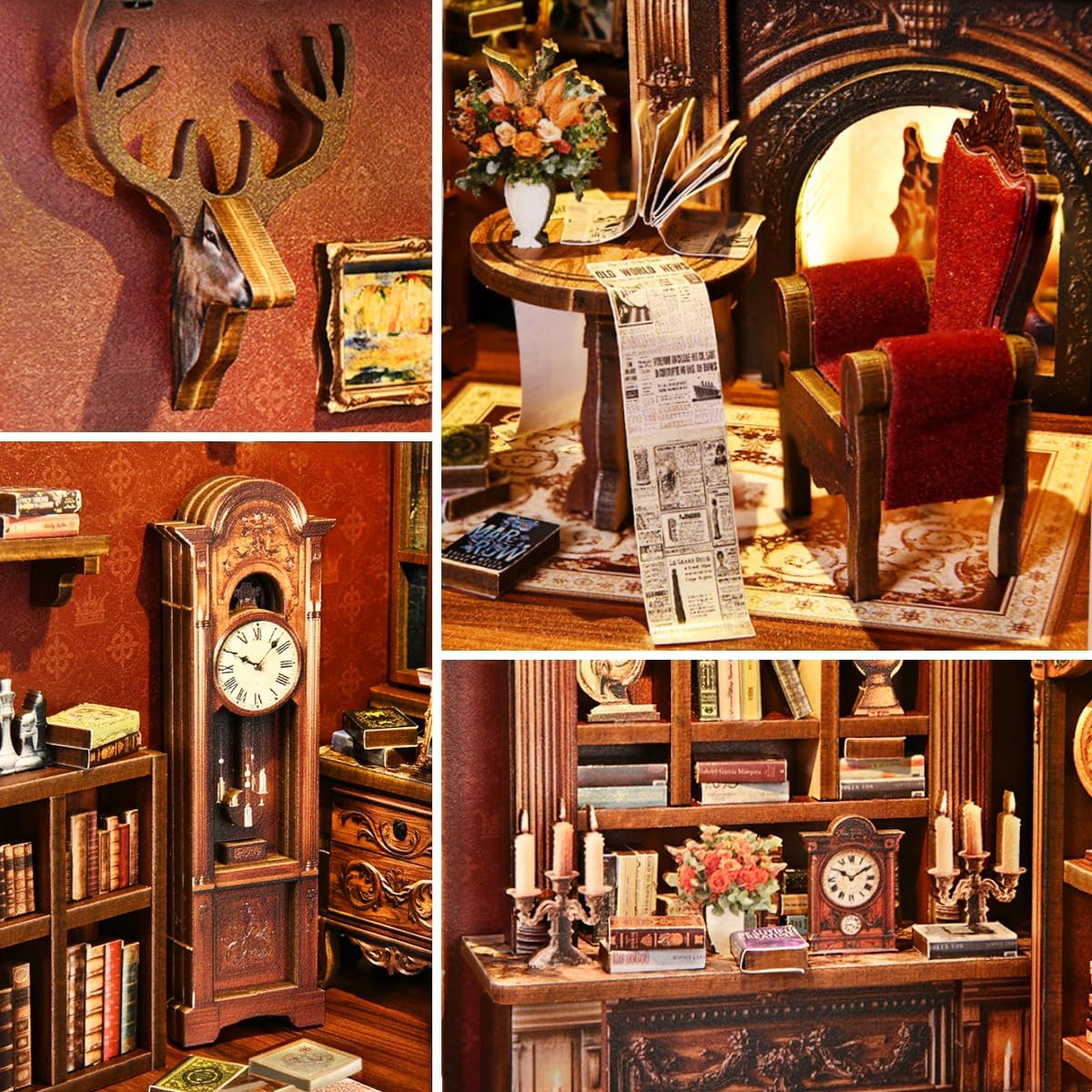 Una biblioteca accogliente e nostalgica: questo mini angolo libro "Twilight Library" crea un angolo tranquillo lontano dal trambusto della città. Qui il tempo rallenta e l'aria si riempie del profumo di vecchi libri, aggiungendo un tocco di calore e nostalgia alla tua libreria. Esperienza immersiva e terapeutica: costruisci il tuo santuario spirituale con questo progetto pratico. Il modello è ricco di dettagli come un camino, un orologio a pendolo e mobili vintage, tutti progettati per offrire un'esperienza rilassante e coinvolgente. Dettagli squisiti con texture reale: il modello presenta dettagli realistici e intricati. Lo speciale tessuto floccato conferisce alla poltrona una consistenza morbida e realistica, migliorando la qualità complessiva e l'estetica. Praticità e decorazione in uno: è sia una bella opera d'arte che un fermalibri funzionale. Posizionarlo sulla libreria aggiunge un tocco artistico unico, mostrando il tuo gusto. Un regalo creativo per adulti: questo modello è un ottimo regalo per gli amanti dell'artigianato, lettori o chiunque ami uno stile nostalgico. È più di un semplice regalo; è un pezzo di tranquillità e bellezza che puoi creare con le tue mani.
