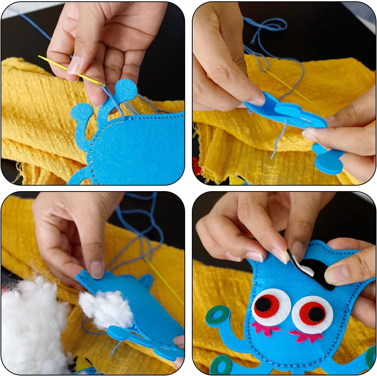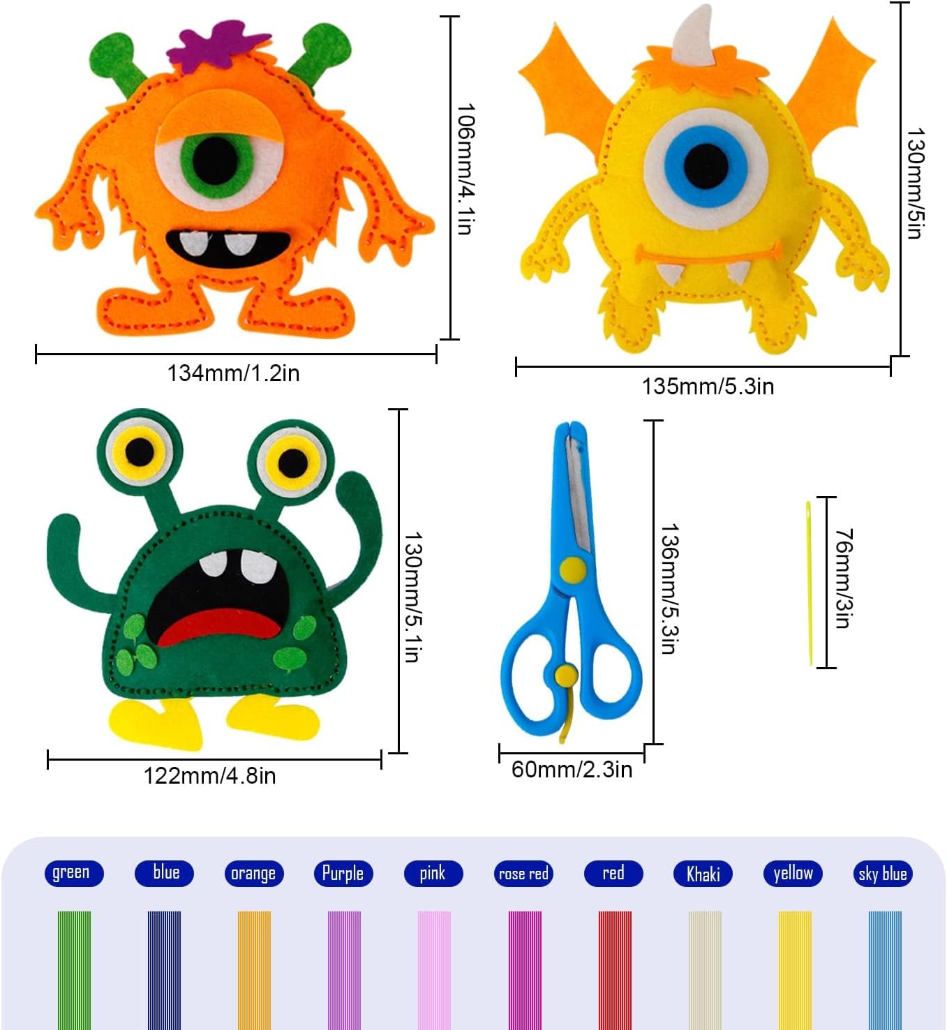 Contenuto della Confezione: La set cucito include 12 pacchetti di mostri in feltro pretagliati, 4 aghi di plastica, 10 matassine di filo da ricamo, 1 lotto di filo di cotone, 1 paio di forbici di sicurezza e 1 manuale di istruzioni. Ogni mostro in feltro finito misura circa 13,5 × 12 cm Materiale del Prodotto: Questo kit feltro fai da te è realizzato in feltro ecologico di alta qualità, sicuro, non tossico, morbido e resistente. Include tutto il necessario per creare simpatici mostri colorati, ideale per attività manuali sicure per i bambini Facile da Usare: I pezzi di feltro del kit da cucito in feltro animali sono pretagliati e forati. I principianti e i giovani artigiani devono solo seguire le istruzioni per creare facilmente mostri decorativi carini Creatività e Sviluppo: Questo divertente kit di cucito fai-da-te aiuta i bambini a stare lontani dagli schermi, sviluppando creatività, immaginazione, pazienza e concentrazione, divertendosi a risolvere problemi con le mani. Adatto ai principianti dai 5 anni in su Versatilità e Regalo: Il cucire set kit feltro fai da te Idealmente come regalo handmade per compleanni, Festa dei Bambini, Capodanno e Natale per amici, famigliari, bambini e studenti. È anche utile come strumento educativo per progetti scolastici, attività didattiche a casa e vacanze estive