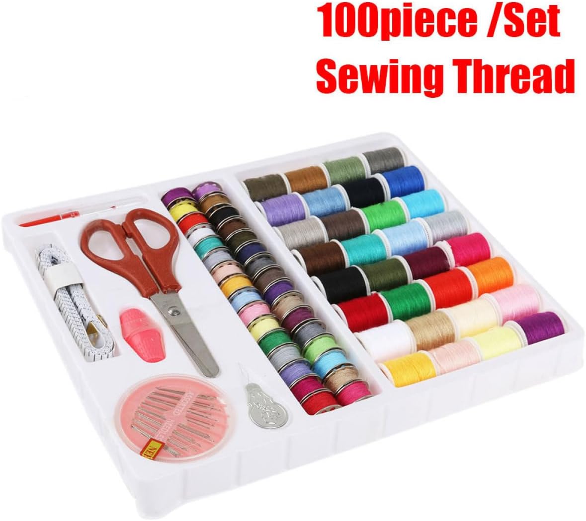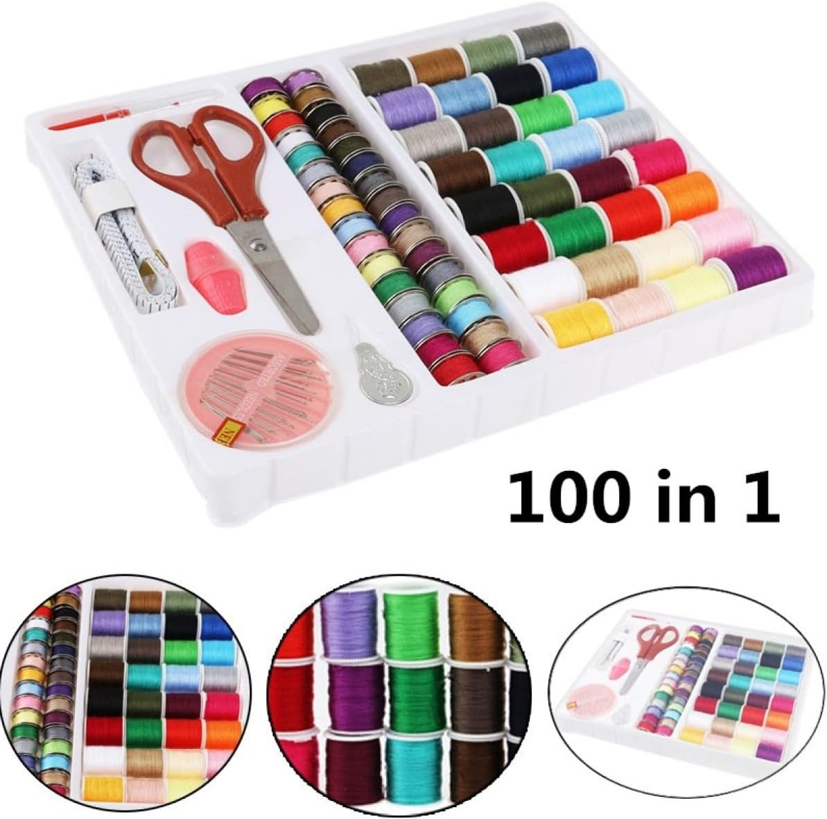 Casuale, materiale plastica, metallo e filo di cotone, kit da cucito per macchina da cucire, kit di strumenti per cucire Incluso: 32 bobine di filo assortite, 32 bobine di metallo abbinate, 30 aghi in una scatola, un metro a nastro, una forbice, 2 ditali, un infila e un taglia asole, kit di strumenti per cucire, kit da cucito per macchina da cucire Il kit da cucito 100 in 1 include tutti i tipi di accessori necessari per i tuoi progetti di cucito e artigianato Ideale per l'uso domestico e in viaggio, o per adolescenti e principianti che hanno bisogno di alcuni beni di prima necessità per cucire