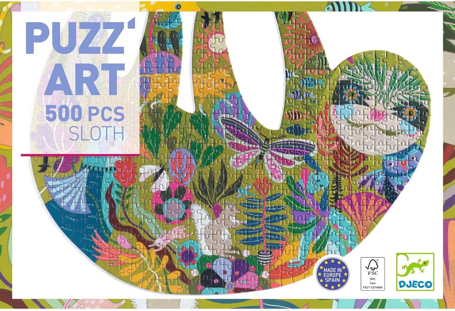 Puzz'art Bradipo 500 Pezzi Puzzle senza angoli o bordi... Età consigliata: dai 7 anni in su Dimensioni: 46 x 60 cm Design di Lisa Vanin per Djeco