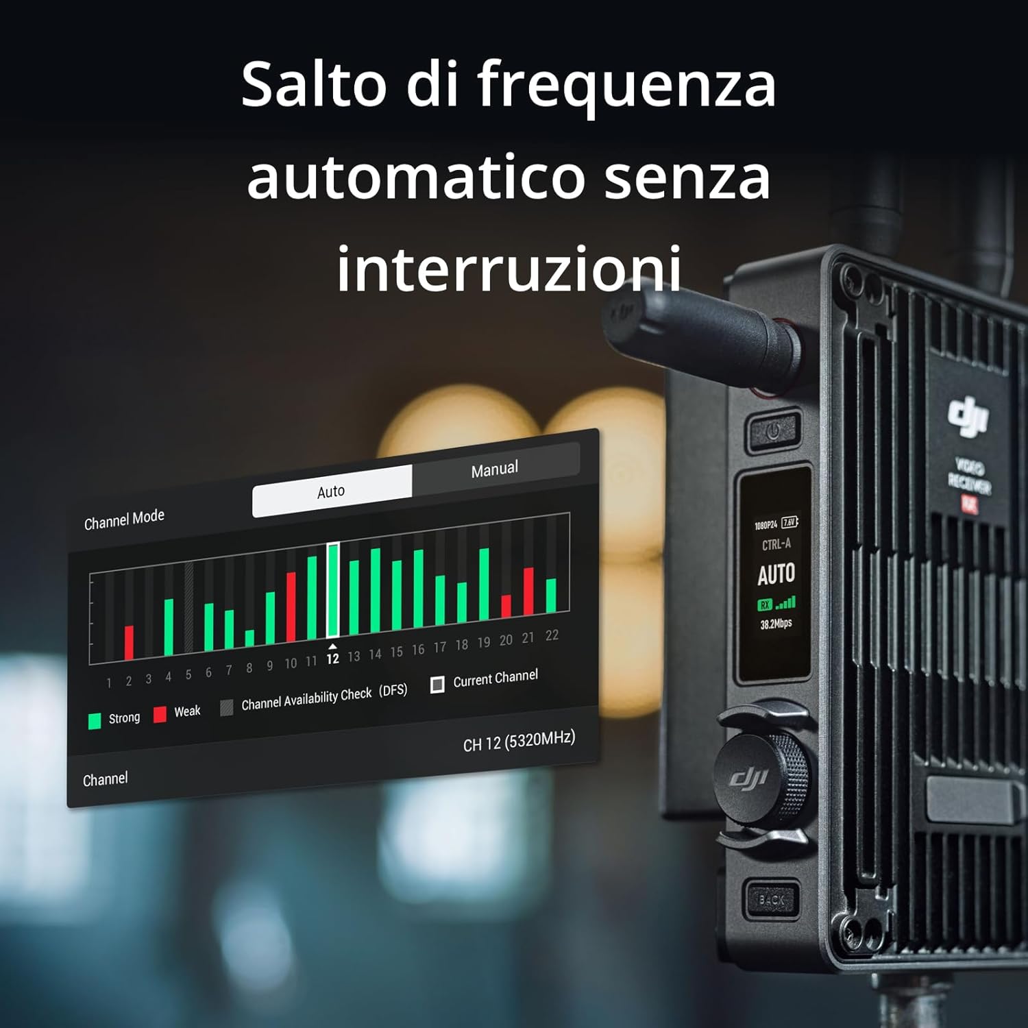 Trasmissione 1080p/60fps fino a 6 km - Il ricevitore video DJI adotta la tecnologia di trasmissione delle immagini O3 Pro, fornendo una distanza max di 6 km, un bitrate di 50 Mb/s e un monitoraggio audio in tempo reale a 16 bit e 48 kHz. Numero illimitato di ricevitori - Quando si utilizza la modalità Broadcast, il ricevitore video DJI può supportare l'utilizzo di un numero illimitato di dispositivi di monitoraggio. Salto di frequenza automatico senza interruzioni - La tecnologia di trasmissione video O3 Pro offre 2.4 GHz e 5.8 GHz insieme a bande di frequenza DFS, per soddisfare le esigenze dei professionisti. Latenza ultra-bassa End-to-End - Il trasmettitore e il ricevitore video utilizzano lo stesso chip di DJI Ronin 4D. Ogni collegamento del processo di trasmissione è stato ottimizzato per un'esperienza a bassa latenza. Trasmissione di metadati tramite SDI - Il ricevitore video DJI supporta la trasmissione di metadati tramite SDI, rendendolo particolarmente adatto all'utilizzo con monitor di grandi dimensioni. Uscita simultanea Dual-Link SDI + HDMI: l'uscita SDI e HDMI è supportata per ulteriori opzioni di monitoraggio e controllo, nonché per la trasmissione di informazioni sui metadati. Include il Ricevitore video DJI e molto altro ancora.