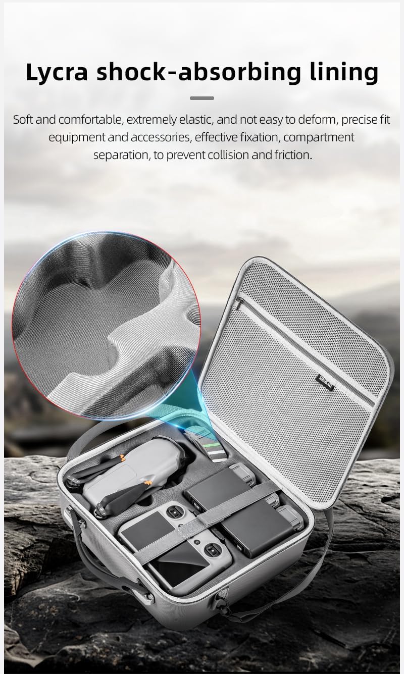 DJI Set di accessori 5 in 1 compatibile con DJI Air 3S RC-N3, con custodia, eliporto, supporto per elica, tracolla, custodia protettiva in silicone Borsa per il trasporto: questa borsa a tracolla da viaggio è appositamente progettata per il drone DJI Air 3S RC-N3 e può essere facilmente riposta in uno zaino o in una borsa da viaggio. Dispone di una maniglia antiscivolo e di una tracolla per un carico e uno scarico rapido. Luogo di atterraggio: protegge il drone da polvere, sporco e detriti durante il decollo e l'atterraggio, prolungandone la durata. Compatibile con diversi modelli di droni DJI. Supporto per elica: appositamente progettato per la DJI Air 3S RC-N3, si adatta perfettamente alla superficie curva del corpo del drone. Custodia per telecomando: antigraffio, a prova di caduta e antipolvere, protegge il telecomando da danni esterni.