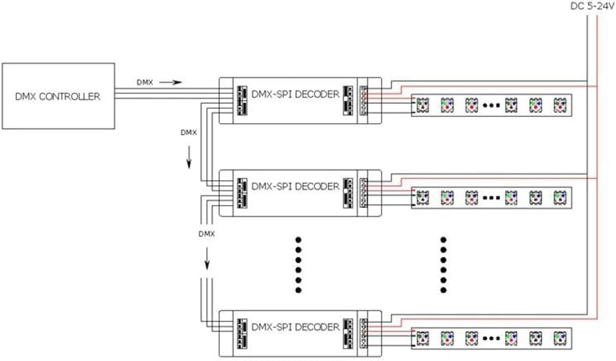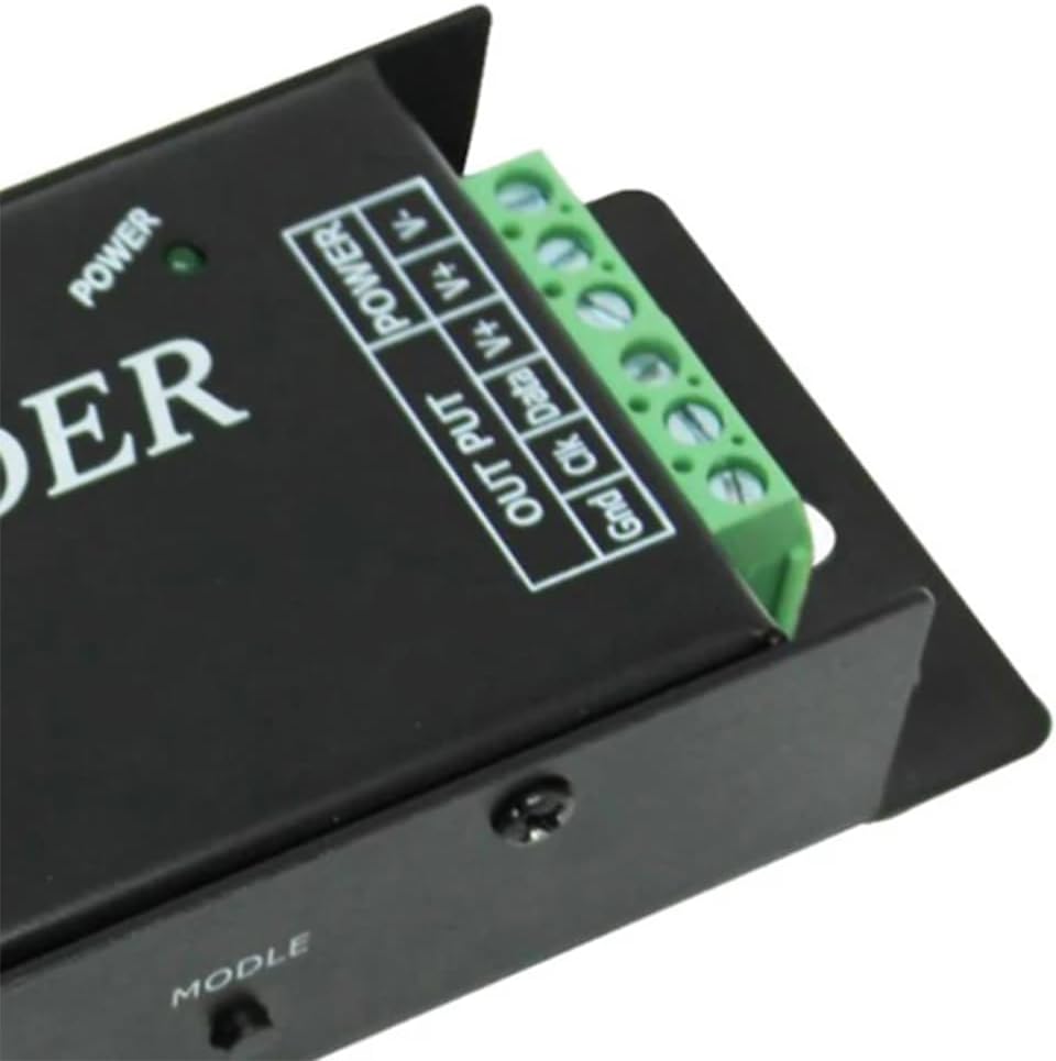 Il decoder -SPI adotta la mini unità di controllo avanzata, riceve il segnale di controllo digitale standard -512 ampiamente utilizzato a livello internazionale e lo trasforma in segnale SPI per pilotare i LED, supporta 10 tipi di modelli diversi di luci, allo stesso tempo la porta del segnale ha misure di protezione contro i fulmini; potresti collegare il decoder con la console digitale per ottenere la regolazione o vari cambiamenti nelle procedure. Non connesso alla console , puoi scegliere di selezionare i 35 tipi di modelli predefiniti integrati tramite il pulsante del modello, i punti predefiniti sono 1024.