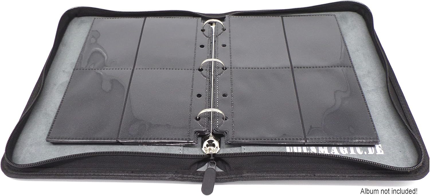 Dimensioni: ca. 196 x 157 mm Le tasche da 67 x 93 mm possono contenere carte fino a dimensioni standard (63,5 x 88 mm) in maniche (larghezza massima 65 mm), come Pokemon, Magic: The Gathering, Yu-Gi-Oh! e molti altri sport e carte collezionabili, quattro tasche sul davanti e sul retro ciascuna; Qualità premium: spessore 100 micron con 5 fori adatti ai mini album Docsmagic.de e ad alcuni di altri marchi 100 pagine nere in polipropilene (PP) privo di acidi