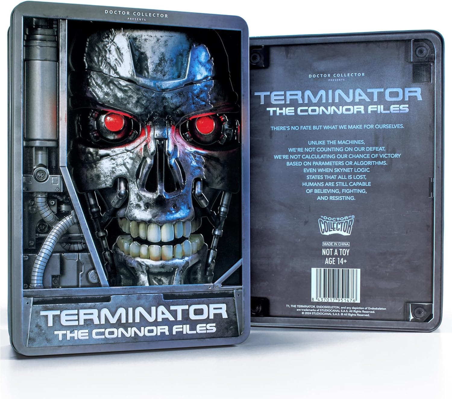 Il 29 agosto 1997, Skynet divenne autocosciente e il resto è storia. Ora, Doctor Collector ti porta quel pezzo di storia con il nuovo cofanetto da collezione: Terminator The Connor Files. Immergiti nell'apocalisse con questo set esclusivo ispirato ai due film che hanno dato inizio a tutto: "Terminator" e "Terminator 2, il Giorno del Giudizio". Questo cofanetto da collezione ti catapulta direttamente nella battaglia tra uomo e macchina, dove la lotta è appena iniziata. Include: Manuale della Resistenza Tech-Comm, CPU della rete neurale T-800, Badge d’accesso personale della Cyberdyne Systems , Busta LAPD, Biglietto per il Tech Noir , Distintivo di Sarah Connor di Big Jeff’s Tesserino LAPD del Dr. Peter Silberman, Foto di Sarah Connor, Foto di John Connor “Conosci questo tipo?”, Pagina dell'elenco telefonico, Progetto del laboratorio Cyberdyne Systems, Valutazione psichiatrica di Sarah Connor Rapporto d’arresto di Kyle Reese, Tessera del Tiki Motel, Tesserino universitario di Sarah Connor, Busta Cyberdyne Systems, Tesserino d’identificazione del Dr. Miles Dyson, Rapporto riassuntivo del tribunale minorile di John Connor Progetto T-800 CSM-101, Rapporto psichiatrico preliminare di Kyle Reese, Badge di sicurezza della Cyberdyne Systems, Tesserino studente di "John Connor"