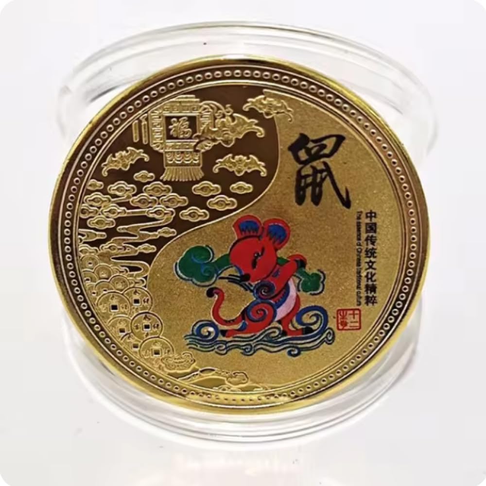 Dodici monete da collezione colorate con animali, souvenir commemorativi della mascotte fortunata per l'ornamento in metallo del desktop, decorazioni per la casa di Capodanno