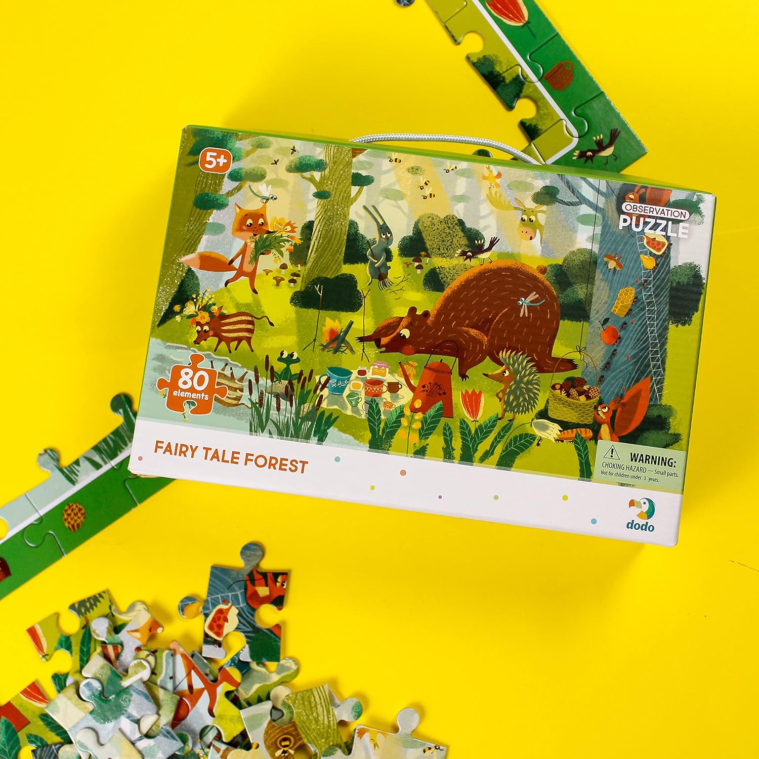 Emozionante puzzle educativo che comprende 80 pezzi ed è il regalo perfetto per i bambini dai 5 anni in su. Il design carino mette in mostra una collezione di vari oggetti da favola. Trova e cerca Valore di gioco aggiunto Una volta costruito il puzzle, rivelerà un divertente bordo "trova e cerca" per un valore di gioco aggiunto, incoraggiando i bambini a identificare dove possono essere trovati animali della foresta e cibo. Gioca divertendoti: tutti i prodotti Dodo combinano design dinamici con vantaggi educativi e di sviluppo, garantendo che i bambini imparino divertendosi. Sicurezza testata per soddisfare i nostri standard elevati, EN-71 e gli standard di sicurezza applicabili. Dimensioni: 31 x 45 cm. Dai 5 anni