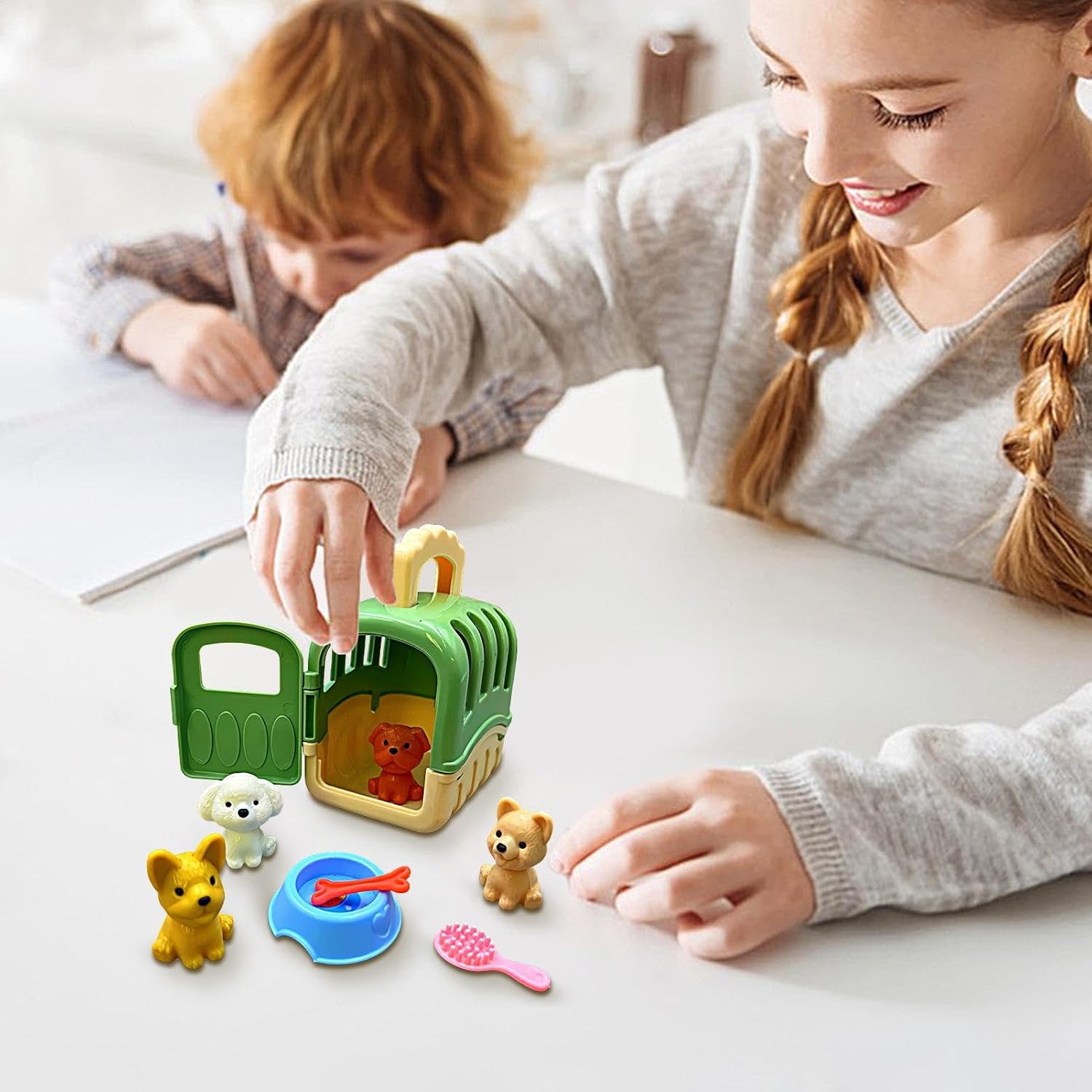 Kit funzionale: questo ricco set di 1 gabbia, 4 giocattoli, 1 ciotola, 1 osso e 1 pennello fornisce tutto ciò che i bambini hanno bisogno per raccogliere e prendersi cura dei loro amici a zampe. Migliora la loro esperienza genitoriale per animali domestici. Responsabile e affidabile: con dimensioni di 10x8.5x6cm, il set di giochi in gabbia per la cura 'animale realizzato in materiale PP è per le mani piccole di tuo figlio. Puoi rilassarti sapendo che questo materiale permanente garantisce il gioco senza la seccatura della rottura. Promuove la crescita creativa: con il nostro set di giochi per per animali domestici, i giovani possono godere di ore di intrattenimento durante l'apprendimento. Questo è strumento eccellente per migliorare il gioco e promuovere lo sviluppo cognitivo. Must-have del compagno di viaggio: ideale per i giovani esploratori, questo set di giochi in gabbia per la cura degli animali domestici garantisce intrattenimento all'aperto, consentendo il di gioco in qualsiasi ambiente. Idea regalo: ideale per nutrire giovani menti, questo set di giochi in gabbia per animali domestici è un regalo meraviglioso per i 3+ ragazzi e ragazze, migliorando il di gioco e scatenando l'immaginazione con la sua versatilità come decorazione a tema per feste o un di gioco caro per compleanni e vacanze.