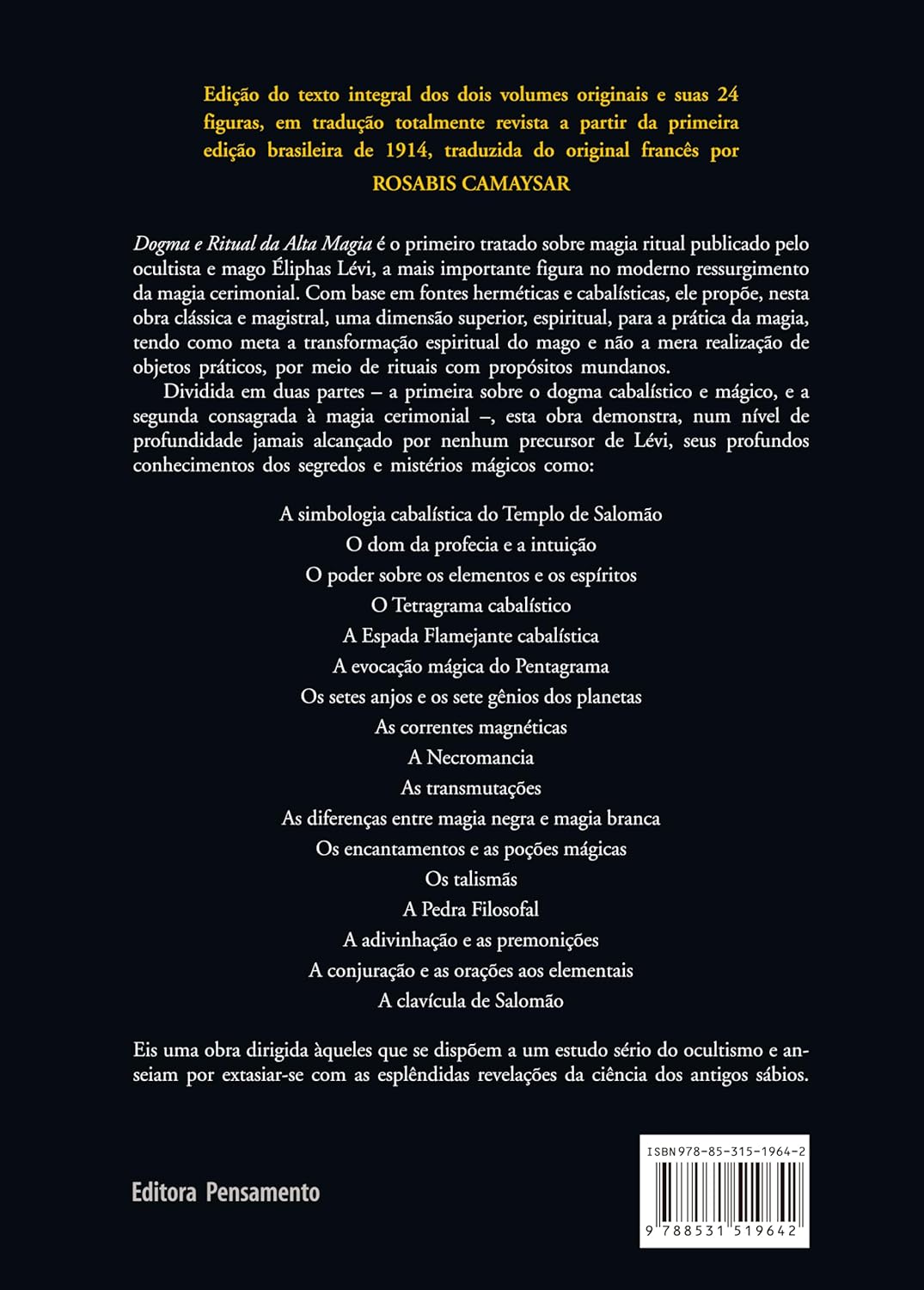 Essas edições da Pensamento do livros do Eliphas são muito boas e bonitas. As fontes são confortáveis e o próprio livro em sí, tem uma alta maleabilidade ( diferente de algumas edições que são feitas para que o livro abra apenas parcialmente ). Essas qualidades permitem uma leitura fluída. Só falta eu comprar História da Magia para fechar a coleção. : )