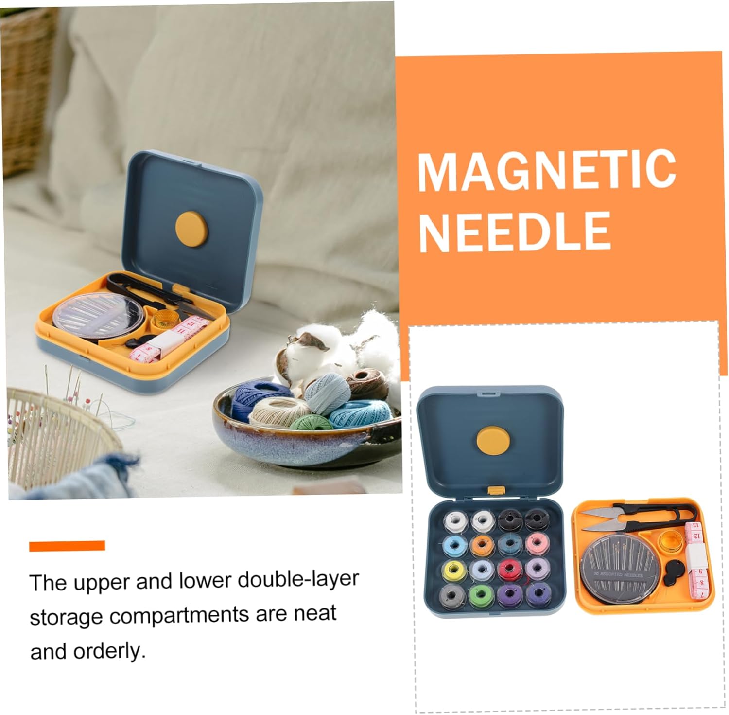 Fili da cucito: compatti e leggeri, non occupano molto spazio, accessori per cucire a mano Kit per ricamo: è molto adatto per professionisti, principianti di cucito, viaggiatori, studenti di dormitorio o appassionati di fai da te, kit di quilting di emergenza Strumenti per cucire domestici: design compatto, occupa spazio, facile da trasportare, kit di strumenti per cucire Valigetta per ricamo: un fantastico set di strumenti per infilare aghi per la casa, pratico ed elegante, kit infila ago a ditale Accessori di cucito di base: può essere aspirato magneticamente e l'ago può essere temporaneamente rimosso e posizionato, e il forte assorbimento magnetico impedirà che l'ago rovini, kit per quilting