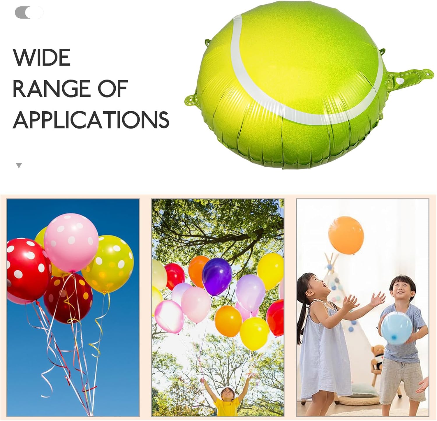 Design sportivo per feste a tema tennis: questi palloncini da tennis presentano un design sportivo unico che aggiunge un tocco giocoso e vivace alle feste a tema, alle riunioni estive o alle feste di compleanno, rendendoli una scelta di decorazione eccezionale per qualsiasi evento Pratica funzione di sospensione: questi palloncini da tennis sono dotati di fori preforati e possono essere facilmente appesi come decorazione. In questo modo è possibile creare facilmente un'atmosfera festosa per la vostra festa o evento. Materiale in lamina di alluminio: questi palloncini sono realizzati in un foglio di alluminio leggero e offrono un'eccellente durata e tenuta all'aria. Ciò garantisce che rimangano gonfiati durante il tuo evento senza il rischio che scoppiano o perdite. Uso versatile per feste: questi palloncini sono perfetti per una varietà di occasioni, tra cui feste estive, feste in spiaggia, feste in piscina ed eventi di tennis. Sono ideali anche come regalo per feste o come complemento per sacchetti regalo per bambini e adulti. Grandi dimensioni per decorazioni accattivanti: con un diametro di circa 1,8 cm, questi palloncini da tennis sono abbastanza grandi da fare una dichiarazione forte e allo stesso tempo completare perfettamente le decorazioni.