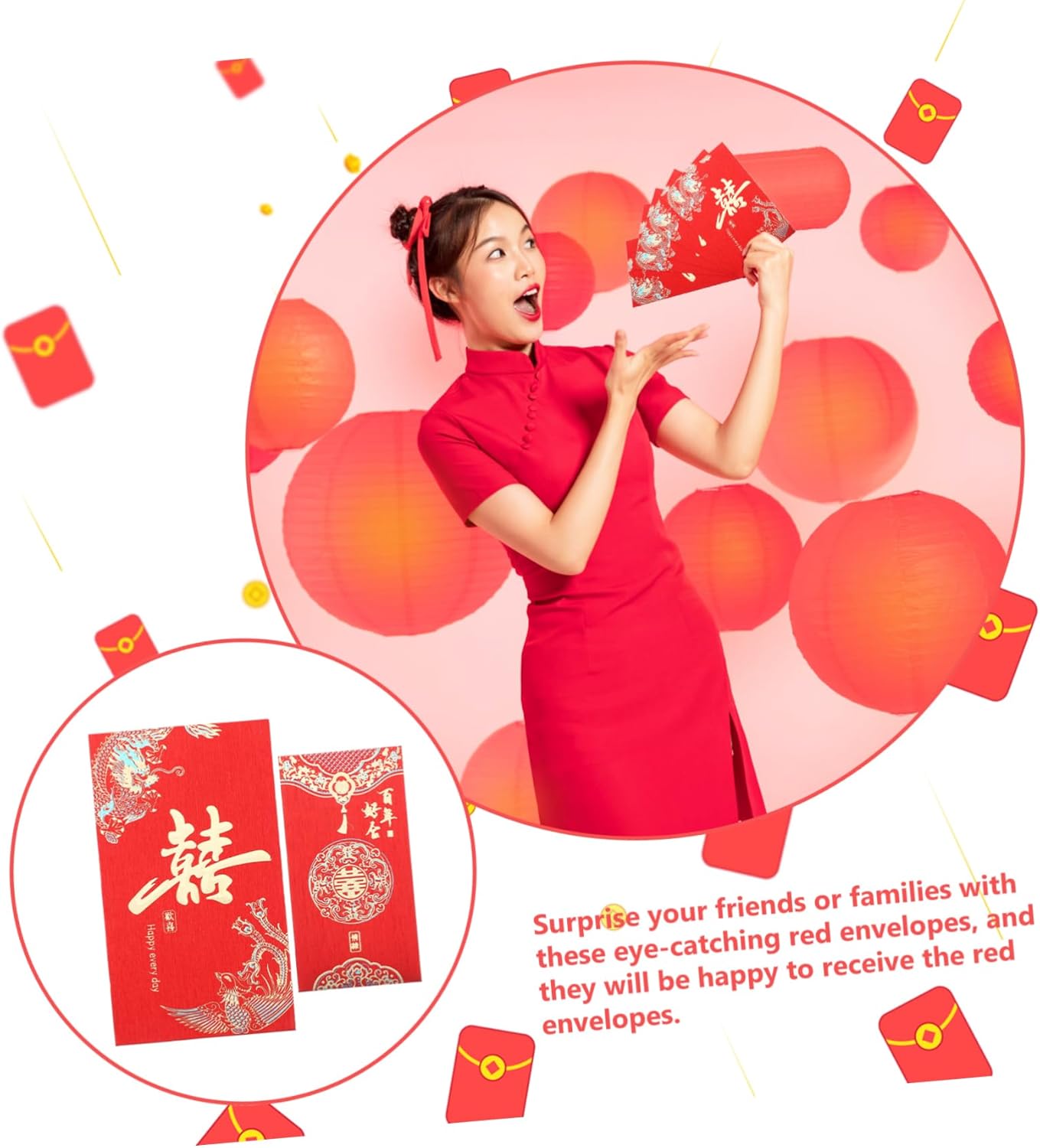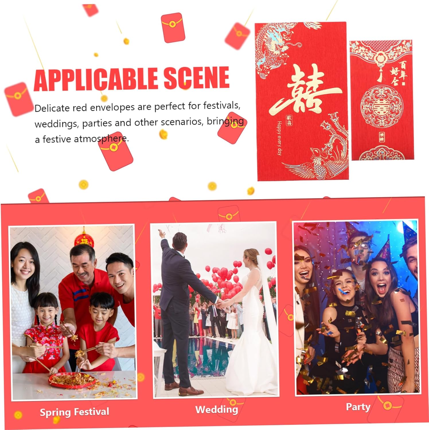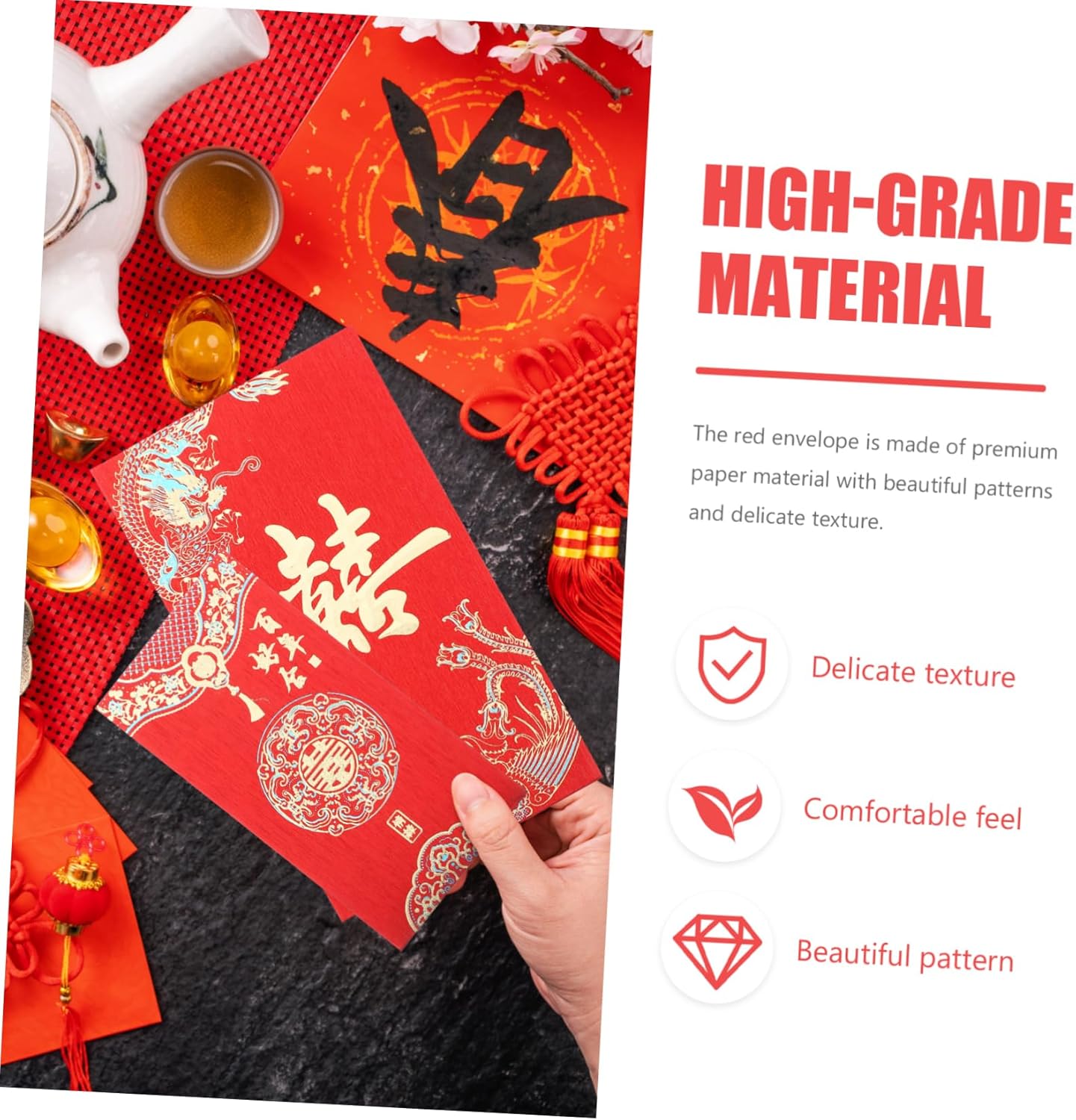 Buste rosse portafortuna: il rosso è un simbolo di fortuna per i cinesi, i pacchetti rossi hanno e il destinatario sentirà la tua gentilezza, sposa Buste cinesi per denaro: ogni busta rossa augura ai destinatari gioia, prosperità, benedizioni, ecc., buste rosse per feste di matrimonio, pacchetto rosso cognome Buste rosse riutilizzabili: la busta rossa cinese è realizzata in materiale cartaceo, l'apertura è aperta per inserire i soldi, può essere inserita sigillata, non è richiesta colla, semplice e comoda, riutilizzabile, facile da usare, buste rosse Tasca porta soldi per feste - con elementi cinesi, creativo e unico, un per matrimonio o capodanno, porta soldi per matrimonio Tasca porta soldi tradizionale: puoi mettere soldi della fortuna, , gioielli, carte o qualche oggetto significativo in queste buste rosse, e possono essere il complemento per le occasioni e i giorni importanti, buste rosse per matrimoni cinesi