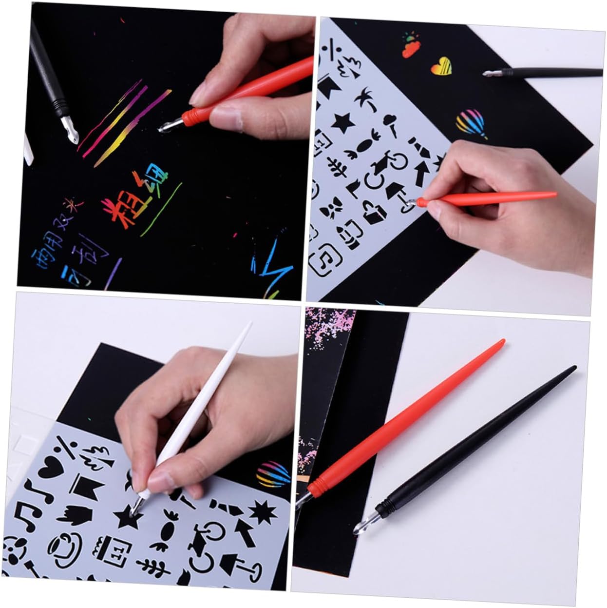 Penne nere: i bordi delle penne antigraffio sono e rotondi, senza sbavature e non danneggiano la pelle, penne di carta Strumento per disegnare con i graffi: superficie liscia senza sbavature, queste penne per graffi non ti faranno male o graffieranno le mani, penne per per artisti Da disegno: la lavorazione di questo prodotto è perfetta e vivrai una buona esperienza nell'usarlo, forniture per il disegno da graffiare Strumenti da disegno: con quantità sufficienti per gli amici che li usano contemporaneamente, possono raschiare ampie aree, graffiando i per dipingere Penne da schizzo: possono essere utilizzate come gioco per la festa per consentire a tutti di creare a mano, strumenti da schizzo