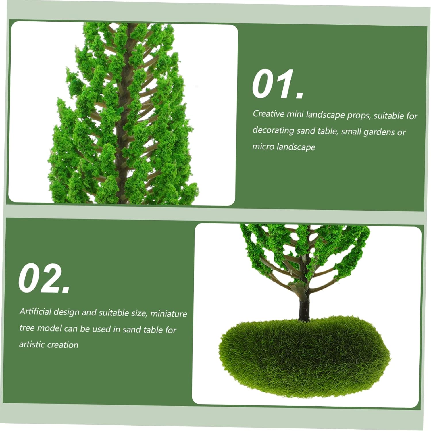 Mini modello di albero paesaggistico: realizzato in plastica che offre stabilità e durata, molto duro e liscio per un uso duraturo, alberi modello paesaggistico alberi in miniatura Albero artificiale verde: questo modello di albero artificiale leggero è facile da riporre e trasportare, ha un aspetto squisito ed è facile da usare Modello di albero in miniatura: puoi goderti facilmente il divertimento del tavolo di sabbia e del paesaggio e goderti al meglio il tempo confortevole, albero in miniatura Mini alberi: design artificiale e dimensioni adatte, il modello di albero in miniatura può essere utilizzato nel tavolo di sabbia per la creazione artistica, alberi da strada in miniatura Alberi in miniatura per la decorazione del tavolo di sabbia: adottando un buon materiale plastico, leggero e resistente per la scena scenica fai da te, materiali per scene in miniatura