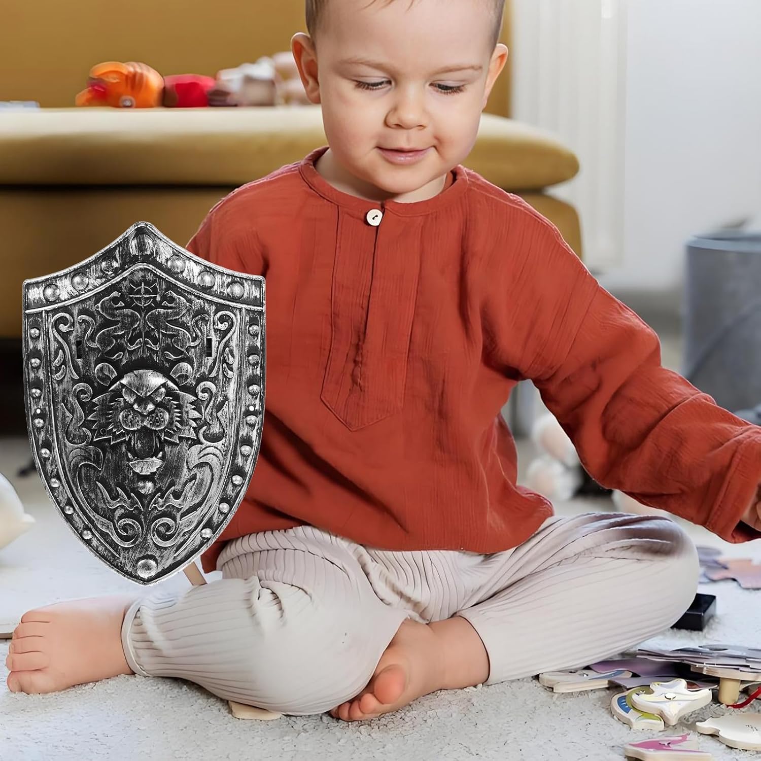 Ideale per giochi di ruolo fantasiosi: progettato per i ragazzi che amano fingere di essere cavalieri o guerrieri, questo giocattolo scudo è un'ottima aggiunta al tempo di gioco o alla collezione di costumi di qualsiasi bambino Leone realistico: la forma di questo scudo giocattolo offre un aspetto da cavaliere medievale altamente realistico, rendendolo un eccellente oggetto di scena per Halloween, cosplay o spettacoli a tema Leggero e adatto ai bambini: realizzato in plastica leggera, questo scudo misura 0,6 x 7,87 x 0, pollici, rendendolo facile da trasportare e manovrare per i bambini durante il gioco Promuove il gioco : l'uso di questo giocattolo con scudo incoraggia i bambini a muovere braccia e spalle, contribuendo a migliorare l'attività fisica e a sviluppare le capacità motorie. Scenari di utilizzo versatili: perfetto per Halloween, feste di cosplay e giochi di quotidiani, questo giocattolo scudo aggiunge entusiasmo a vari eventi e attività per bambini