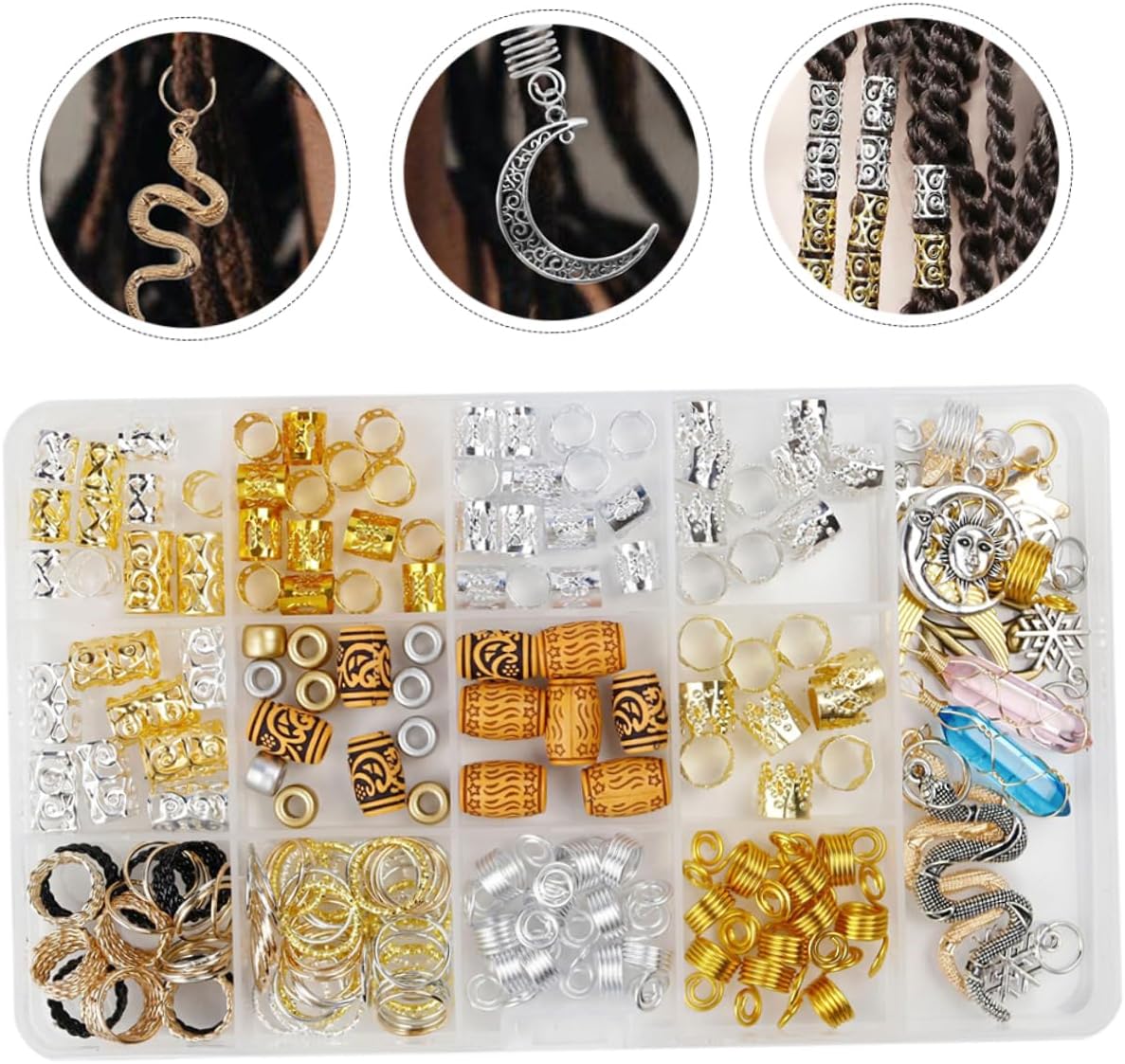 Gioielli con perline per capelli: gioielli per capelli con dreadlocks, anelli per trecce per capelli, fermagli, trecce, pendenti per capelli, perline per tubi per capelli non solo abbelliscono i tuoi capelli, ma assicurano anche un temperamento elegante e affascinante. Accessori Dreads: disponibili in diversi colori e stili, puoi scegliere in base alle tue reali esigenze, sufficienti da utilizzare e sostituire. Accessori per gioielli per capelli: i nostri anelli a treccia sono flessibili e regolabili senza danneggiare i capelli, offrendoti un'esperienza diversa. Perline per trecce per capelli - Adorabili accessori per capelli che ti fanno sembrare più bella e mostrano la tua personalità senza danneggiare i tuoi capelli. Gioielli intrecciati da donna: si abbinano bene ai tuoi outfit quotidiani e aggiungono più fascino e bellezza al tuo aspetto.
