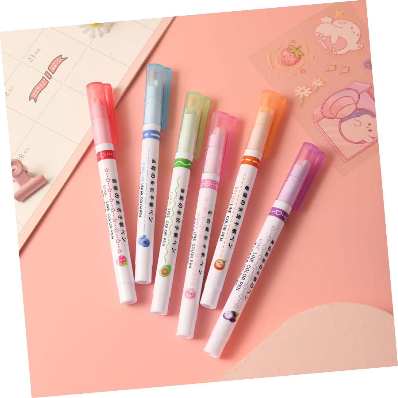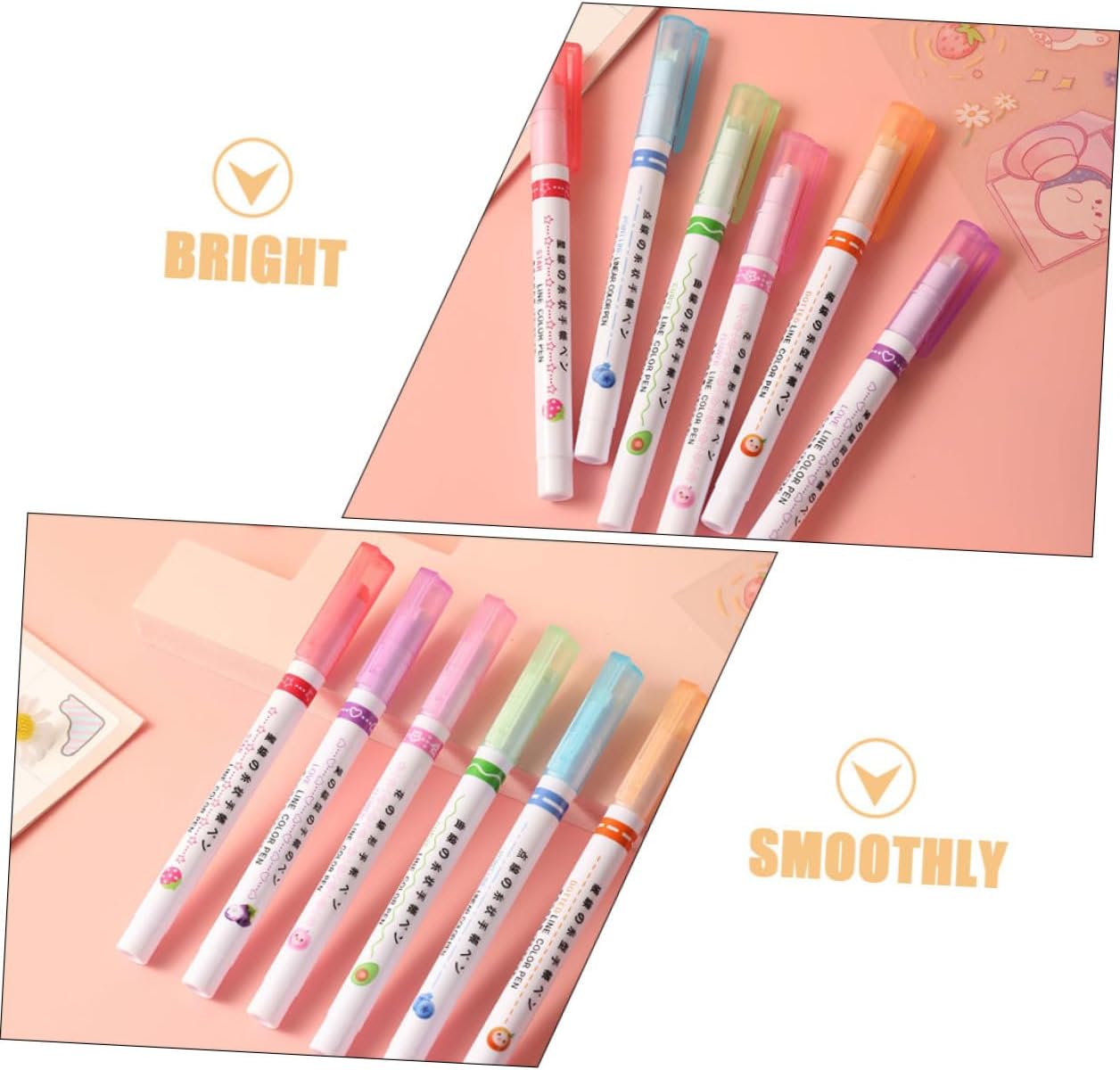 Evidenziatori per diario: i pennarelli sono adatti per l'uso quotidiano in ufficio, a casa o a scuola, ecc., facili da prendere, penna evidenziatore Penna fluorescente: ampiamente utilizzata per graffiti, design artistico, pittura, scrapbooking e journaling, si adatta meglio alle tue esigenze, pennarelli colorati Evidenziatori: puoi inviare questi pennarelli alla tua famiglia o ai tuoi amici come cancelleria estetica, lascia che ti impressionino molto Materiale per lo studio: applicazione per decorare biglietti ed evidenziare calendari, libri da colorare, progetti scolastici, lettere fai da te e altro, evidenziatori per Penna evidenziatore: facile da usare, basta tenere la penna in verticale e farla scorrere delicatamente sulla carta, carina cancelleria kawaii