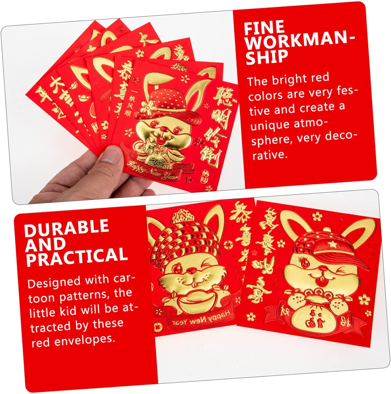 Pacchetti rossi di capodanno con coniglietto: adorabile motivo a cartoni animati, creativo e delicato, pieno di atmosfera di capodanno, busta di carta in stile cinese Per la festa di : ogni busta rossa augura ai destinatari gioia, prosperità, buone benedizioni, ecc., pacchetto rosso zodiacale Forniture per la festa di : sorprendi i tuoi amici o familiari con queste accattivanti buste rosse, creative red packet Busta rossa 2023: significa anche i migliori auguri dagli anziani alle giovani generazioni, busta rossa 2023 Buste rosse in stile cinese: progettate con motivi a cartoni animati, i saranno attratti da queste buste rosse, buste con motivi zodiacali