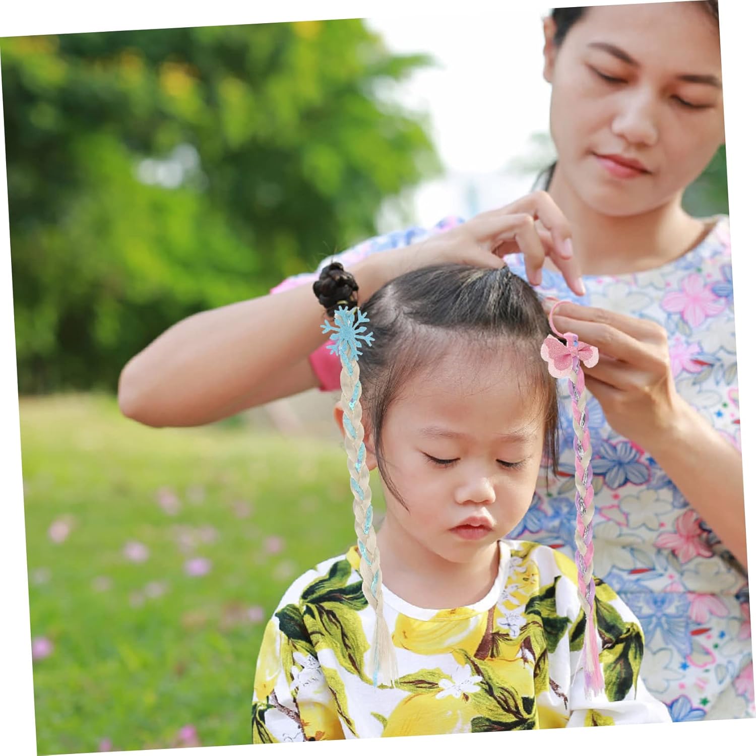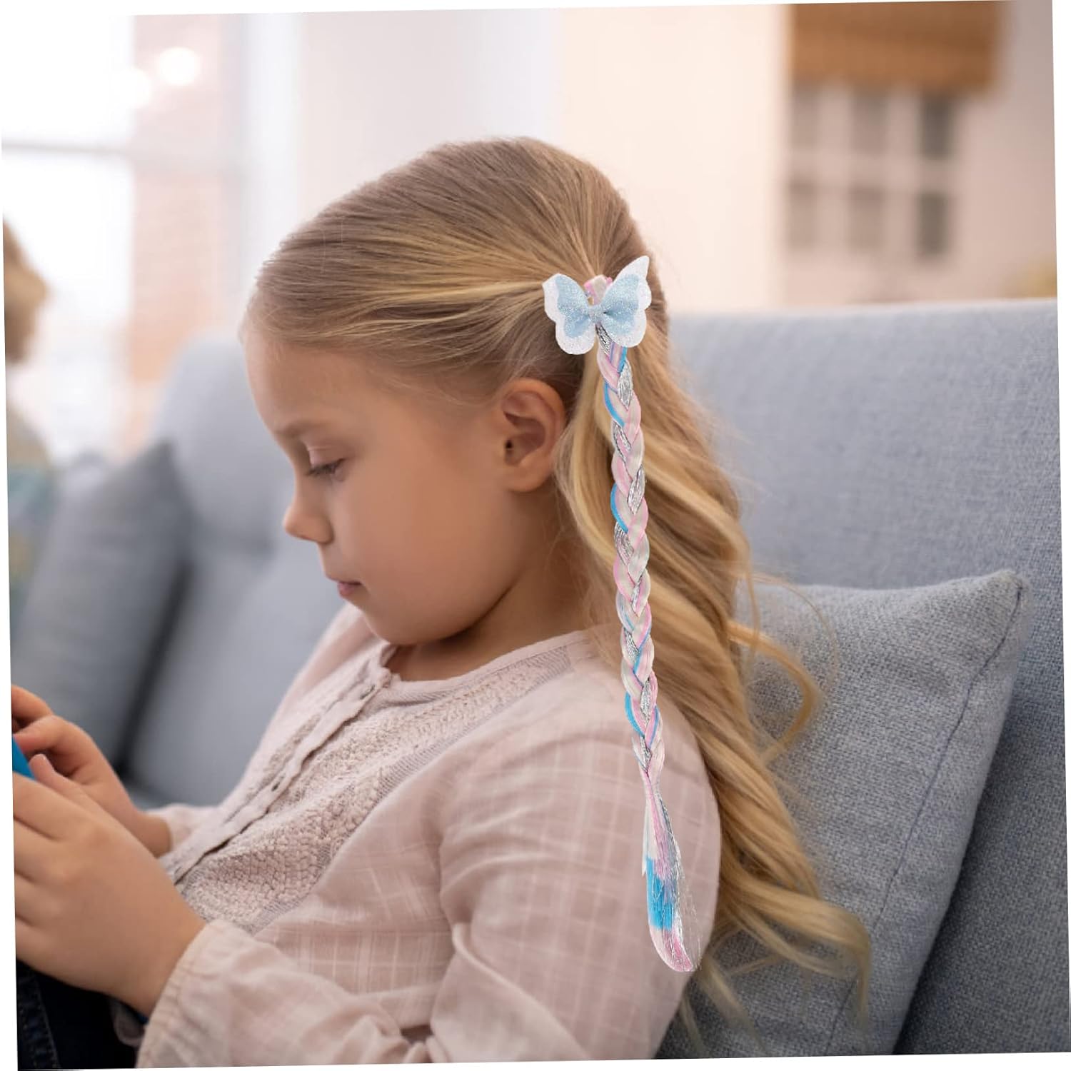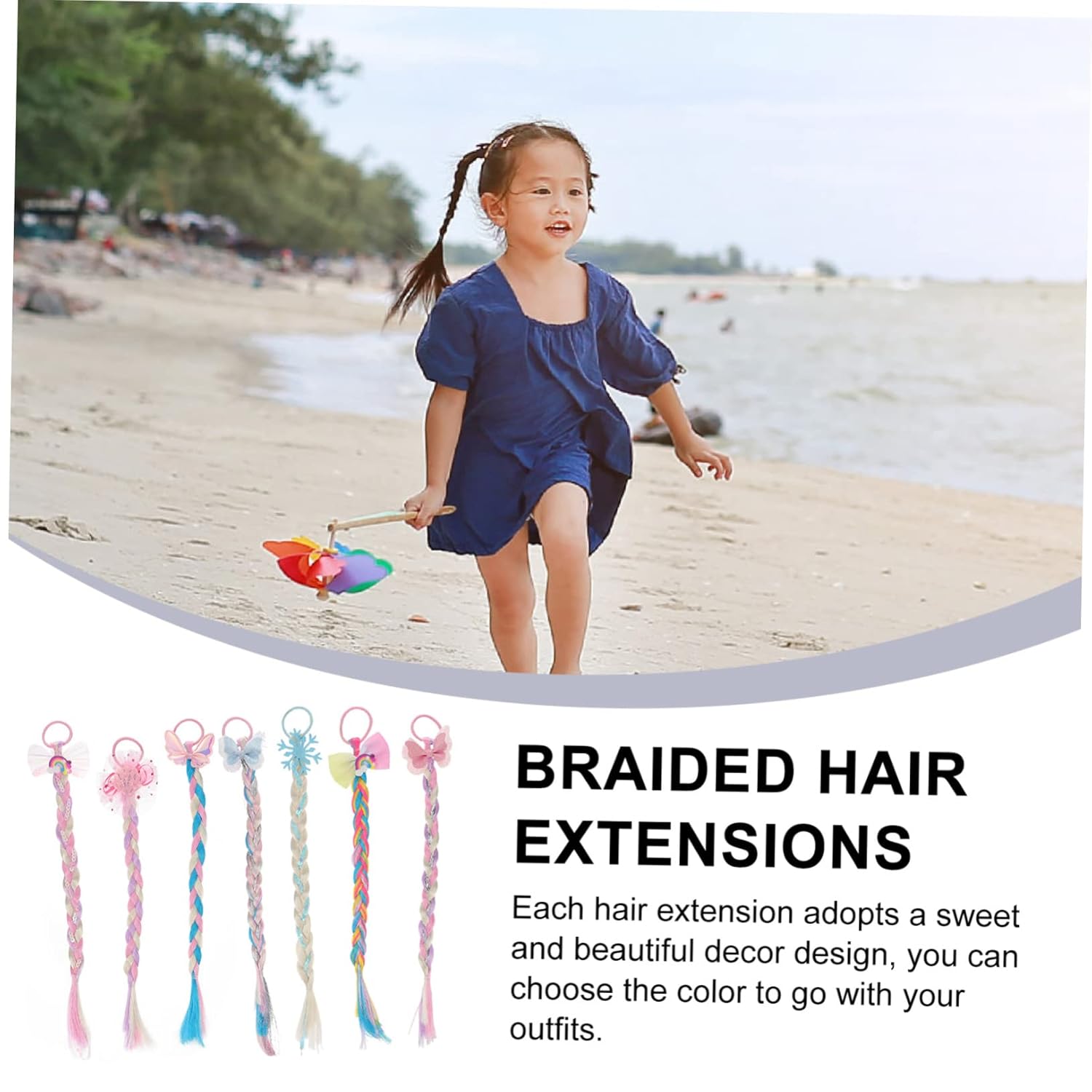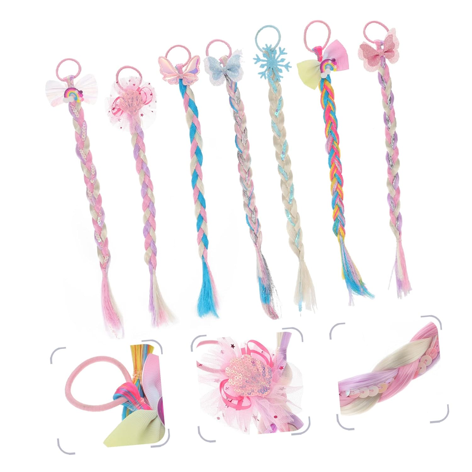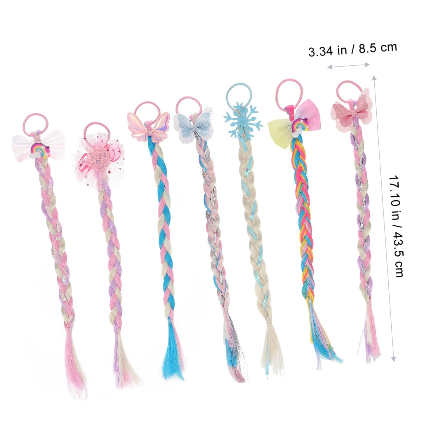 Estensioni dei capelli colorate con elastici 7 pezzi Le estensioni colorate dei capelli intrecciati per ragazze con elastici Il copricapo da festa offre opzioni di styling versatili per look vivaci e garantisce acconciature semplici senza danni ai capelli. Il set diversificato con 7 trecce colorate e fiocchi decorativi si abbina a vari abiti e occasioni, dai compleanni alle feste, e supporta quindi lo styling creativo dei capelli per le ragazze in diverse situazioni. La lavorazione di alta qualità in resistente materiale in fibra chimica con dettagli fini come rete e feltro garantisce un piacevole comfort e un aspetto naturale ad ogni utilizzo Ideale per ragazze durante feste, carnevali o festival musicali che vogliono sottolineare la propria personalità con accessori colorati per capelli e abbellire giocosamente i propri capelli senza influenzare la vita di tutti i giorni Colori vivaci e disegni dolci creano momenti felici in occasioni speciali come Natale, Halloween o feste e ti invitano a scoprire il divertimento dello styling e creare ricordi indimenticabili