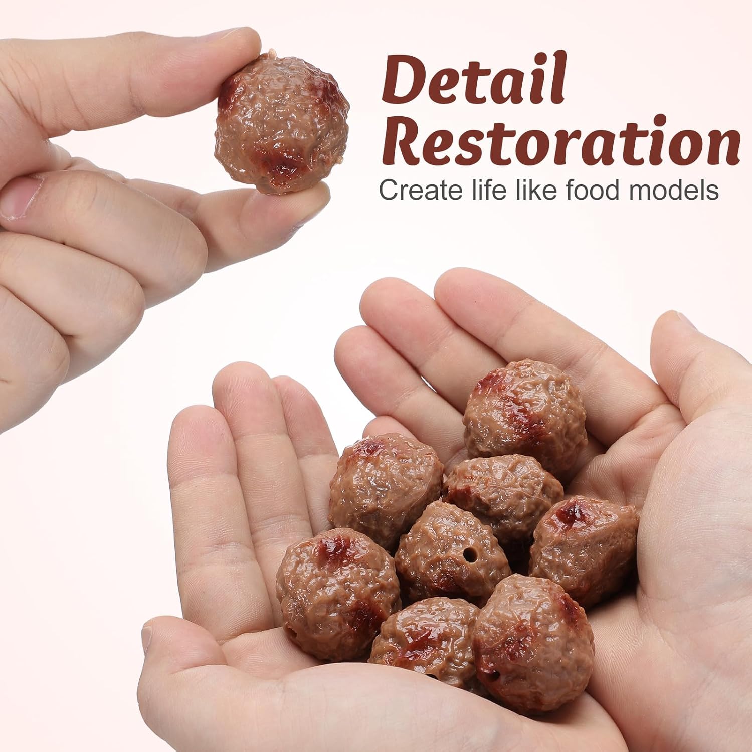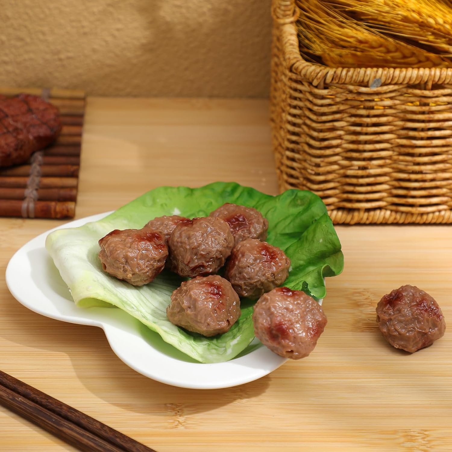 Aspetto realistico: ogni polpetta artificiale è realizzata con dettagli realistici, offrendo un aspetto naturale che valorizza qualsiasi arredamento da cucina o allestimento fotografico con un autentico fascino visivo. Artigianato dettagliato: sapientemente realizzato per replicare la consistenza e il colore delle vere polpette di manzo, aggiungendo un tocco convincente alla tua collezione di modelli di casa o cucina. Compatto e leggero: ogni polpetta misura circa 1,38 pollici di diametro, il che le rende facili da maneggiare, trasportare e disporre ovunque necessario Utilizzo multiuso: perfetti per decorazioni domestiche, strumenti didattici, oggetti di scena per la fotografia e giochi di finzione, rendendo questi modelli di cibo artificiale versatili per molte applicazioni creative Sicuro e non tossico: realizzato in PVC atossico, queste finte polpette di manzo sono sicure da usare per la decorazione, il gioco e l'esposizione senza alcun problema di salute.