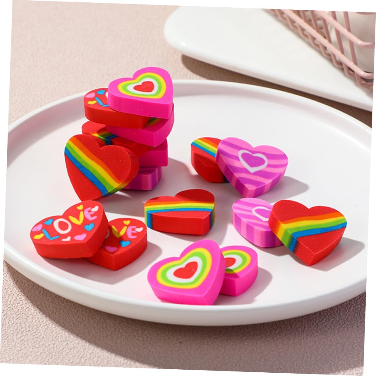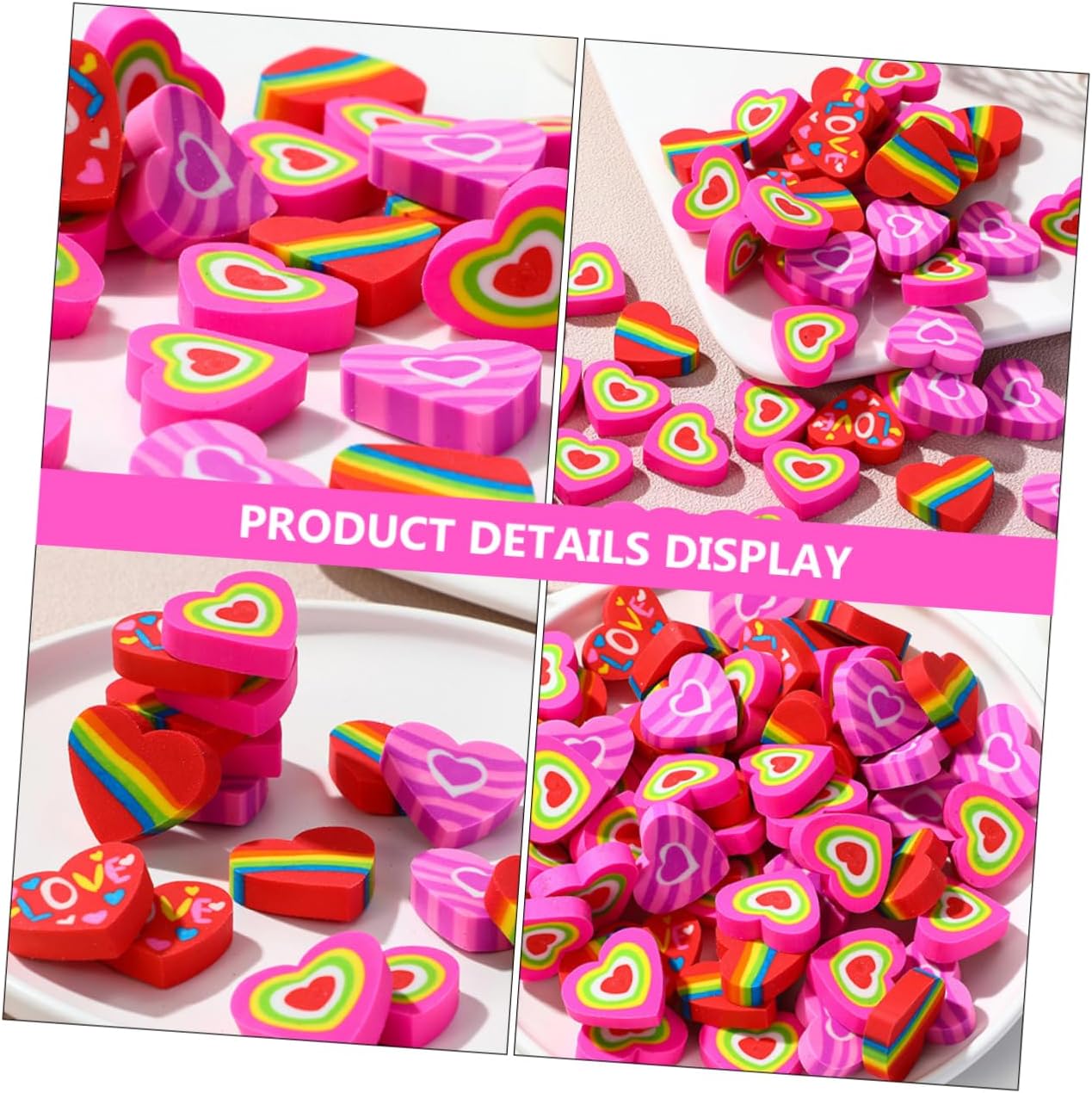 Gomme per : queste gomme a forma di cuore, uniche e interessanti, possono aggiungere un tocco di divertimento alla tua noiosa vita di studio, mini gomme a forma di cuore Mini gomme sfuse: gomme a forma di cuore per promuovere la creatività, creare regali originali davvero divertenti, premi e feste con sacchetti di caramelle, adatte per qualsiasi compleanno a tema per aumentare la gioia, gomme per la scuola Gomme originali: questa gomma a forma di cuore è di piccole dimensioni, leggera, non occupa molto spazio ed è facile da trasportare, mini gomme a forma di cuore per Gomme per matite: il materiale tpr è sicuro e leggero, resistente all'usura e pratico per un uso duraturo, mini gomme di Mini gomme a forma di cuore: vivaci e graziosi disegni a forma di cuore rendono queste gomme pratiche ma adorabili e carine per la scuola
