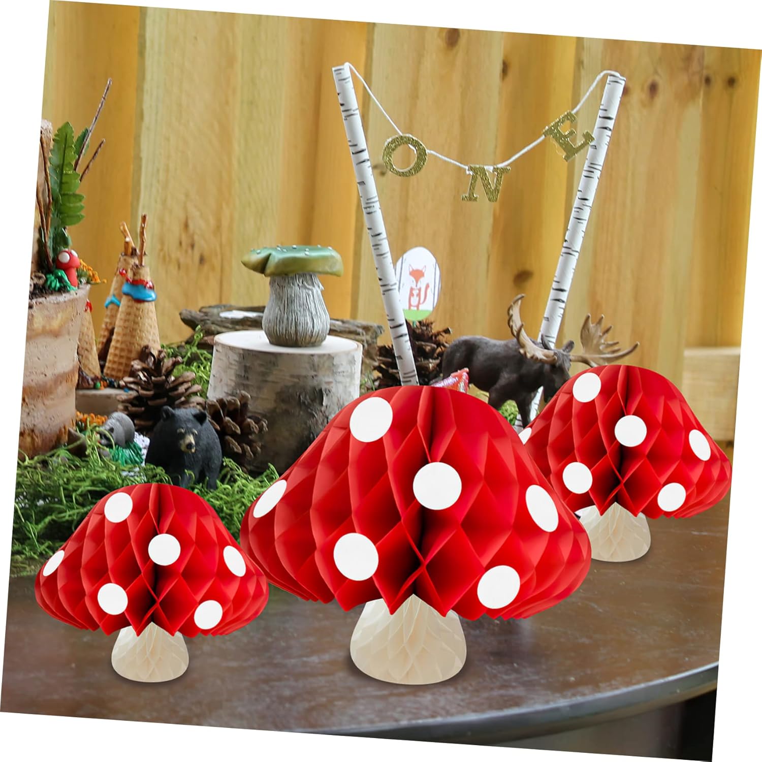 Centrotavola a nido d'ape con animali del bosco: progettati, soddisfano le varie esigenze di decorazione, aumentando le sensazioni luminose nelle vostre case. Decorazione del tavolo della sala da pranzo: crea un'atmosfera da paese delle fate e lascia ricordi indimenticabili per la tua festa di compleanno. Ornamento a forma di fungo per feste: è realizzato in materiale cartaceo, durevole e robusto per un uso duraturo. la pregevole fattura garantisce praticità e durata. Tavolo di compleanno per bambini a nido d'ape: puoi mettere questi funghi nell'angolo della tua stanza, anche una aggiunta a molte feste a tema. Decorazioni a forma di fungo: aumentano l'atmosfera delle riunioni interne ed esterne e attirano anche l'attenzione dei bambini.