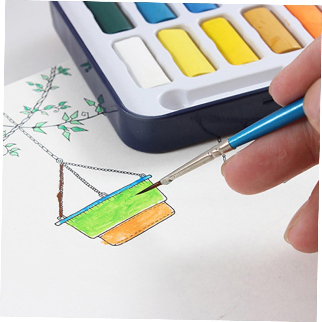 Acquerello per : formula semi-umida come gli acquerelli, si dissolve e si fonde facilmente, acquerello colorato Colori ad acquerello lavabili per : questo set di vaschette per acquerelli è contenuto in una scatola da studio con coperchio facile da aprire/chiudere; il coperchio può fungere da vassoio per mescolare, rendendoli eccellenti per schizzi all'aperto, acquerelli ad acqua Acquerello da viaggio: questo set include 1 pennello per pittura, ottimo per principianti, pittori e artisti, forniture per acquerelli Kit di acquerelli portatile: facile da lavare e pulire, per artisti dell'acquarello Pittura ad acquerello liquida: 18 colori vivaci e accattivanti per acquerelli, ideali per studenti, insegnanti, artisti, , arti, artigianato, ecc, kit di pittura ad acquerello da viaggio