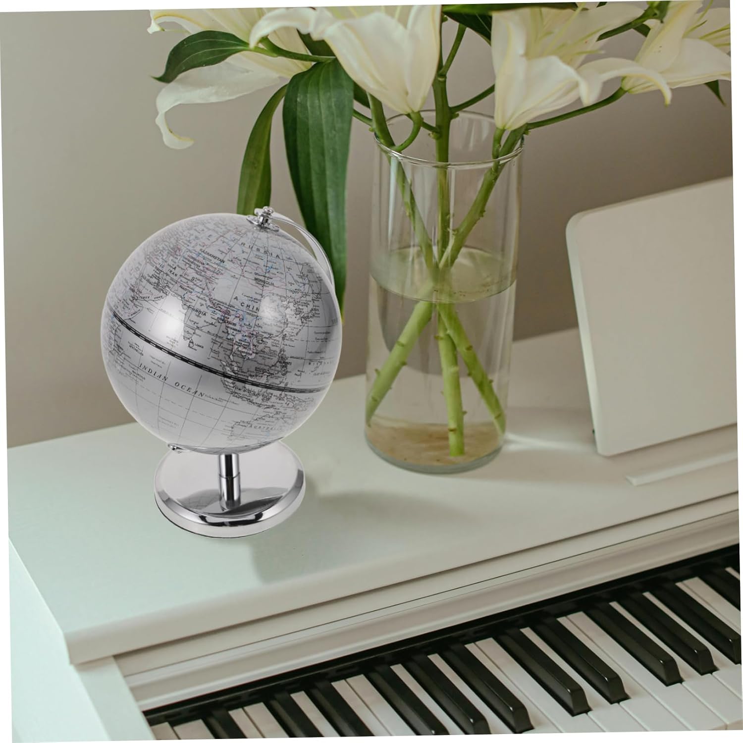 Globo da classe: il suo design compatto lo rende adatto al posizionamento sulle scrivanie, garantendo che si adatti bene senza sopraffare il tuo spazio di lavoro, ornamento rotondo della Design contemporaneo: la finitura argentata di questo globo offre un aspetto contemporaneo che si adatta bene all'arredamento moderno, globo del mondo oceanico, globo del mondo da tavolo Globo scolastico educativo: realizzato con , questo globo è progettato per essere e mantenere il suo aspetto attraente nel tempo, globo da tavolo con base Qualità: costruito con , questo globo è esteticamente gradevole, geografico, globo da tavolo decorativo Globo da tavolo in plastica: la finitura argentata lucida di questo globo aggiunge un tocco di e modernità, rendendolo un'aggiunta all'arredamento di qualsiasi stanza, globo geografico
