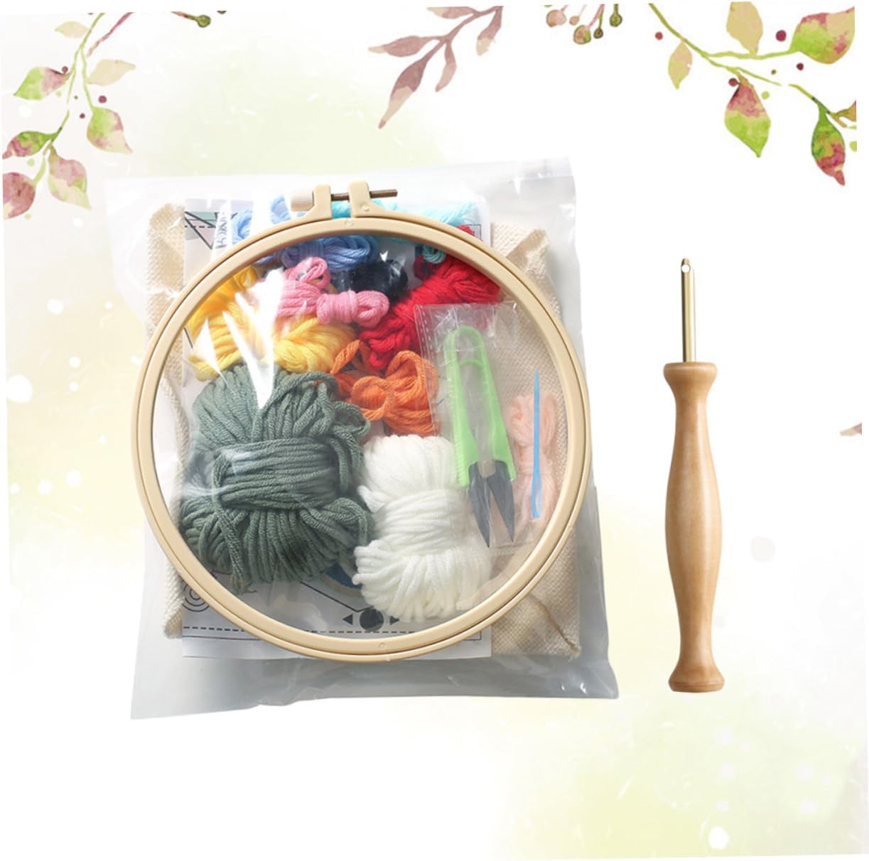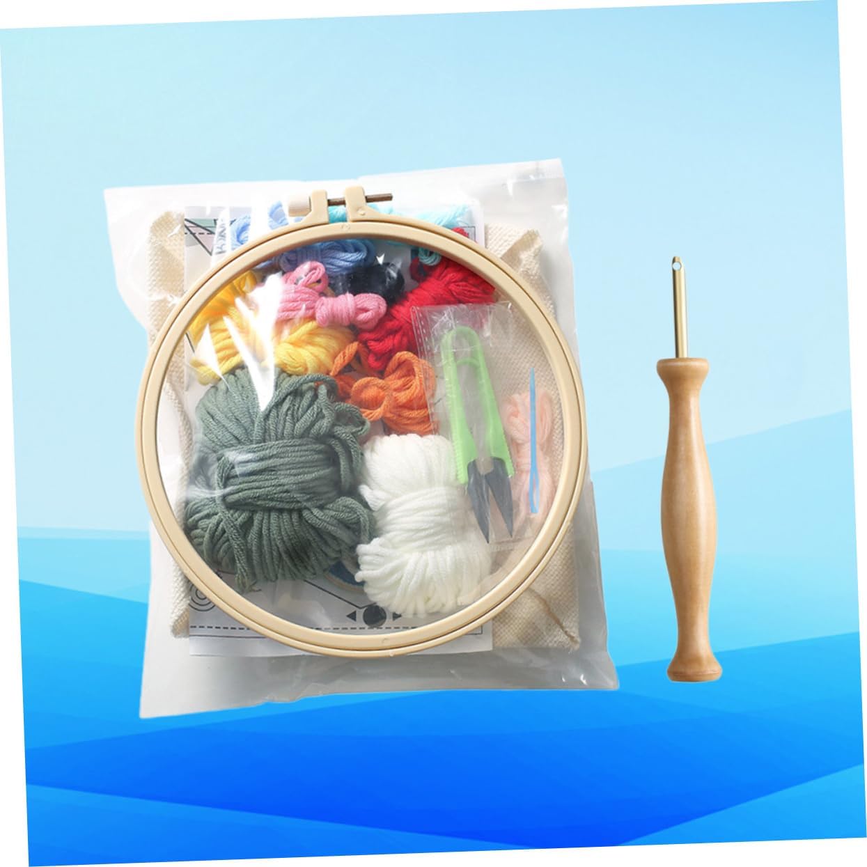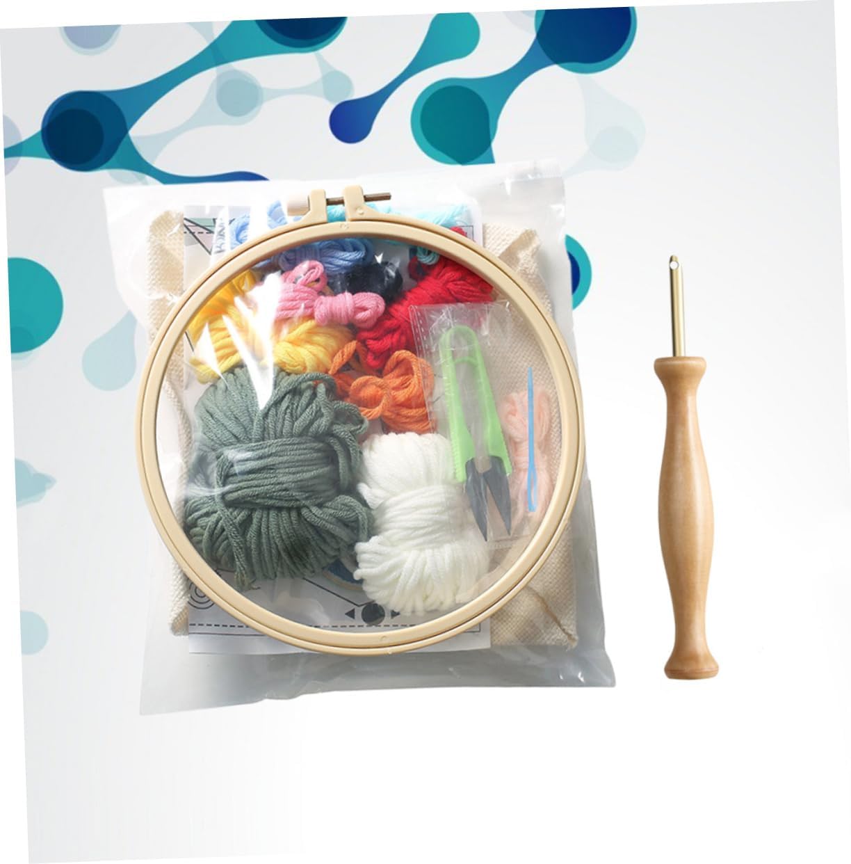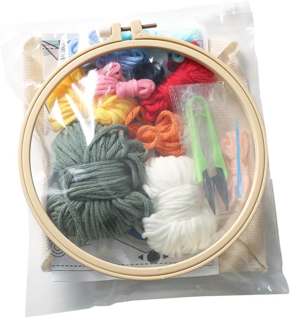 Aghi per stoffa: semplicemente stampo del pezzo stoffa per il ricamo a fai da te, creativo Ricamo artigianale: ago perforato con in legno e design ergonomico per presa migliore, divertimento e apprendimento per i bambini, creative adornment Decorazione : completare il ricamo fai da te con i tuoi tuoi bambini è un momento significativo e speciale, base per ricamo rotonda Accessori fai da te: il set fili lana colorati può soddisfare facilmente tue esigenze ricamo con motivi colorati, creative adorment Borsa con materiale fai da te: l'articolo è un set per ricamo a per fornire gli strumenti necessari per i bambini appassionati fai da te, creative adornment