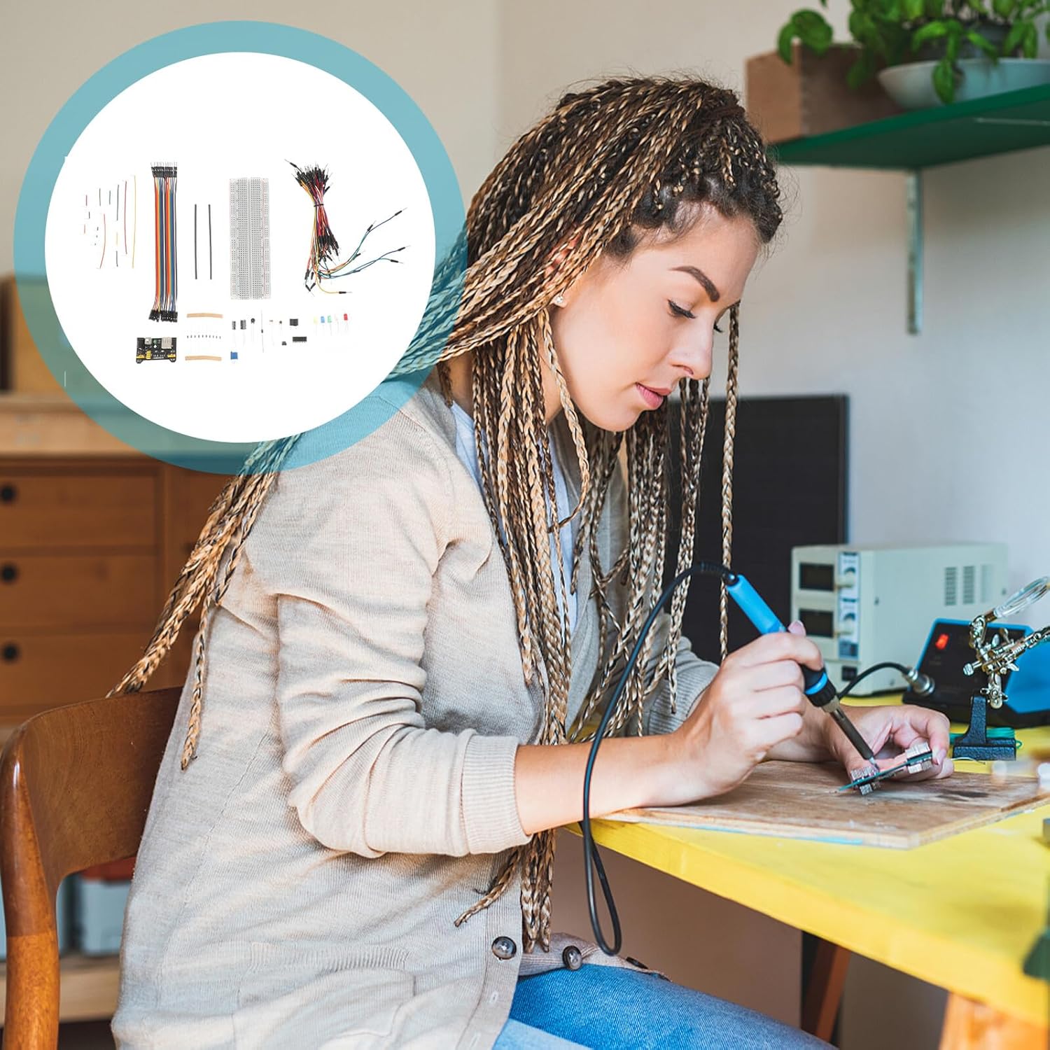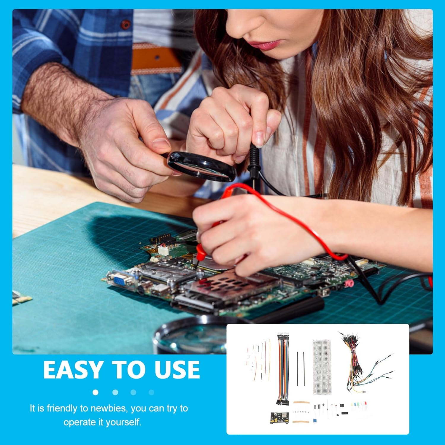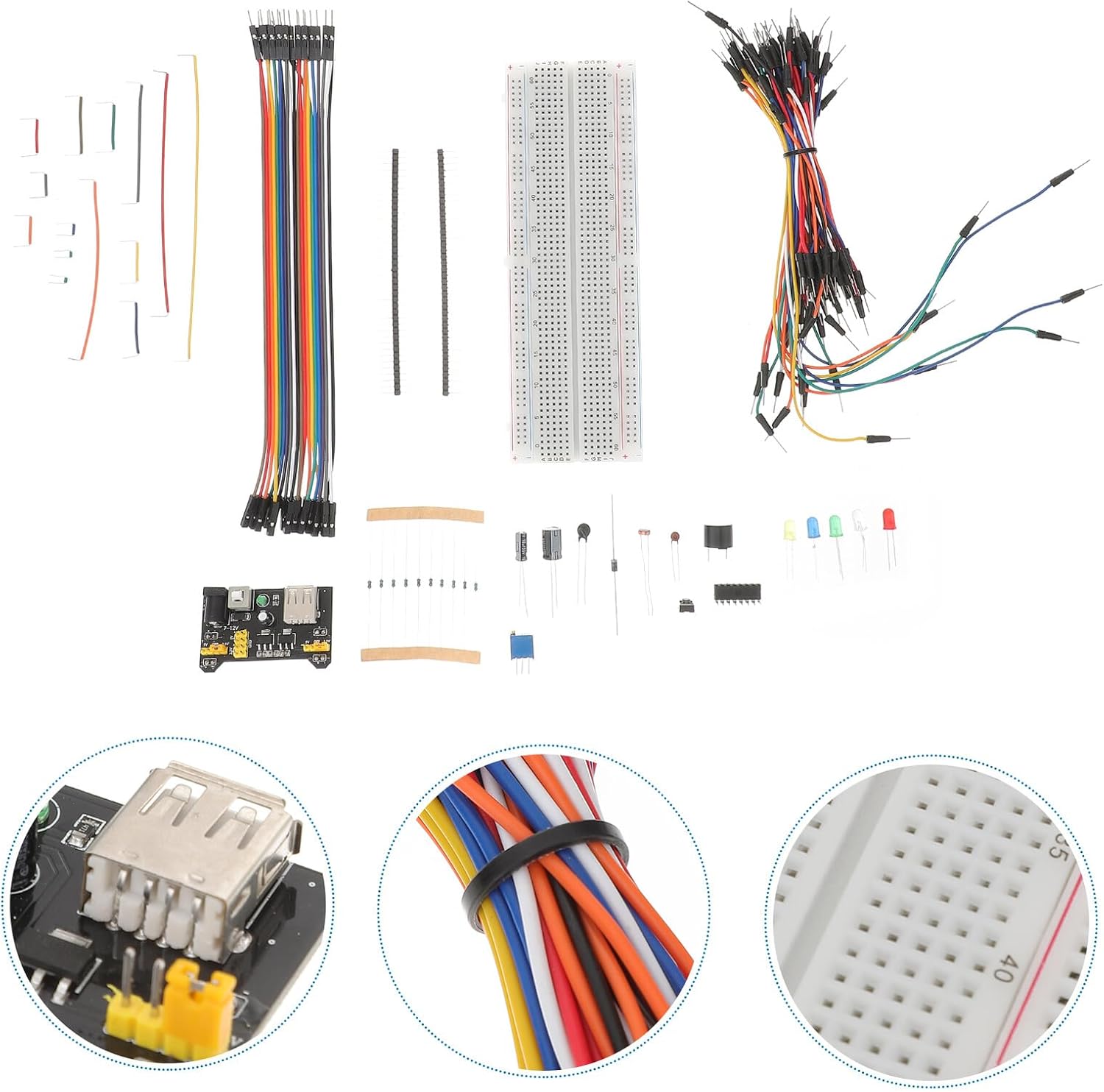 Nota: non utilizzare il modulo di alimentazione con una tensione superiore a 9 v, cavi jumper breadboard, kit di componenti elettronici Kit di cavi elettronici: è facile da usare, puoi provare a usarlo tu stesso, filo Cavo jumper: adatto per progetti elettronici di base e test, kit di circuiti elettrici Kit di cavi jumper: questo set include un modulo di alimentazione, una breadboard con punti di collegamento, cavi jumper, connettori pin, un potenziometro di precisione, fotoresistori, termistori, raddrizzatori a diodi, transistor, circuiti integrati, cicalini, pulsanti, condensatori ceramici, condensatori elettrolitici, LED e resistori, cavi jumper per breadboard Kit cavi jumper: design speciale e lavorazione di alta qualità, è la migliore sostituzione per il tuo vecchio kit di cavi jumper a nastro per breadboard